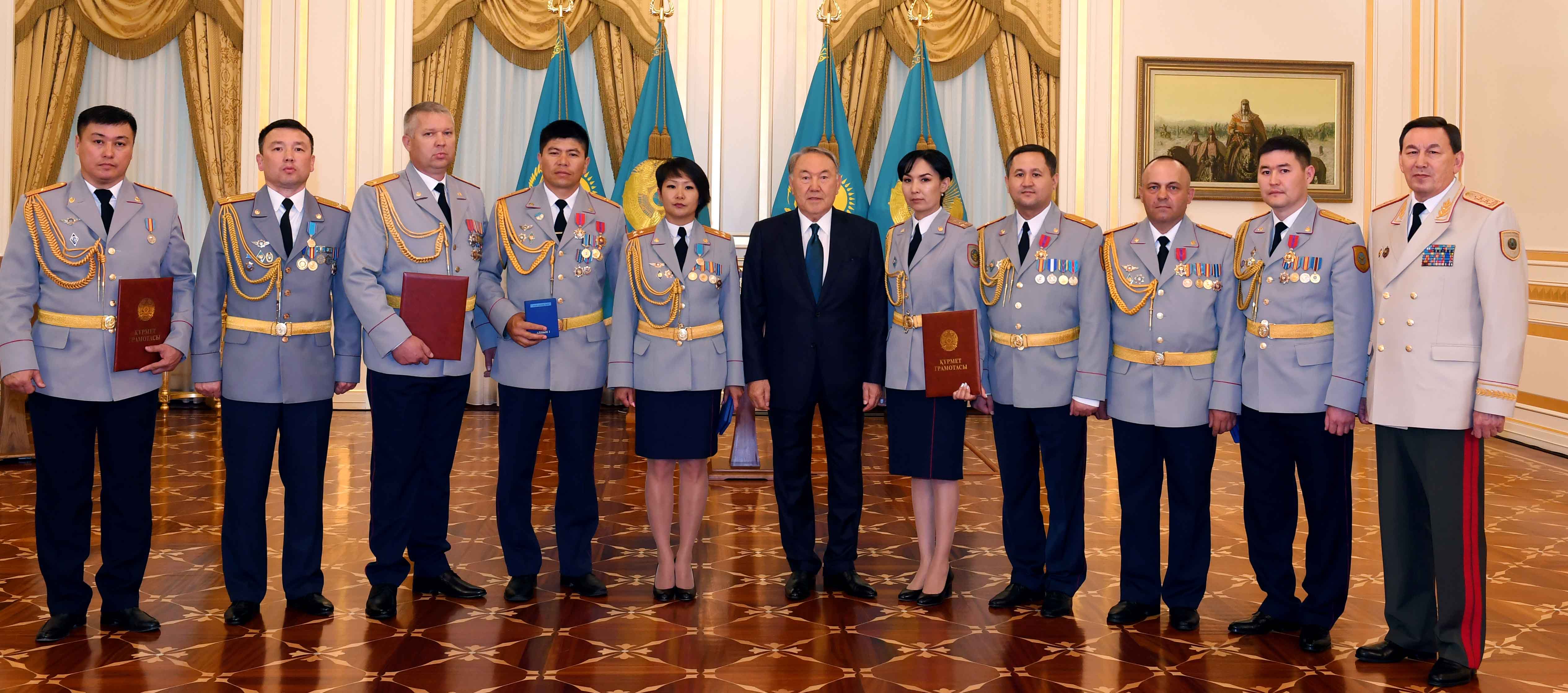During the meeting the Head of the State has awarded B. Duisenov, the Special Forces Command inspector, with "Aibyn” Order of Degree I, Zh.Muhatov, Head of Internal Affairs Department, Shcherbakty area of Pavlodar region, with “Aibyn” Order, Degree II, K.Sahov, Head of Internal Affairs Department, Ordabasy District of South Kazakhstan, with “Aibyn” Order, Degree II, V.Shutko, a senior investigator for particularly important cases, Criminal iinvestigation Department of Astana, with “Aibyn” Order, Degree II, A.Galiev, a senior officer-in-charge for particularly important cases, with “Yerligi Ushyn” medal, and L.Kim, Head of Operative Forensic Department of Internal Affairs in Almaty region, with “Yerligi Ushyn” medal.