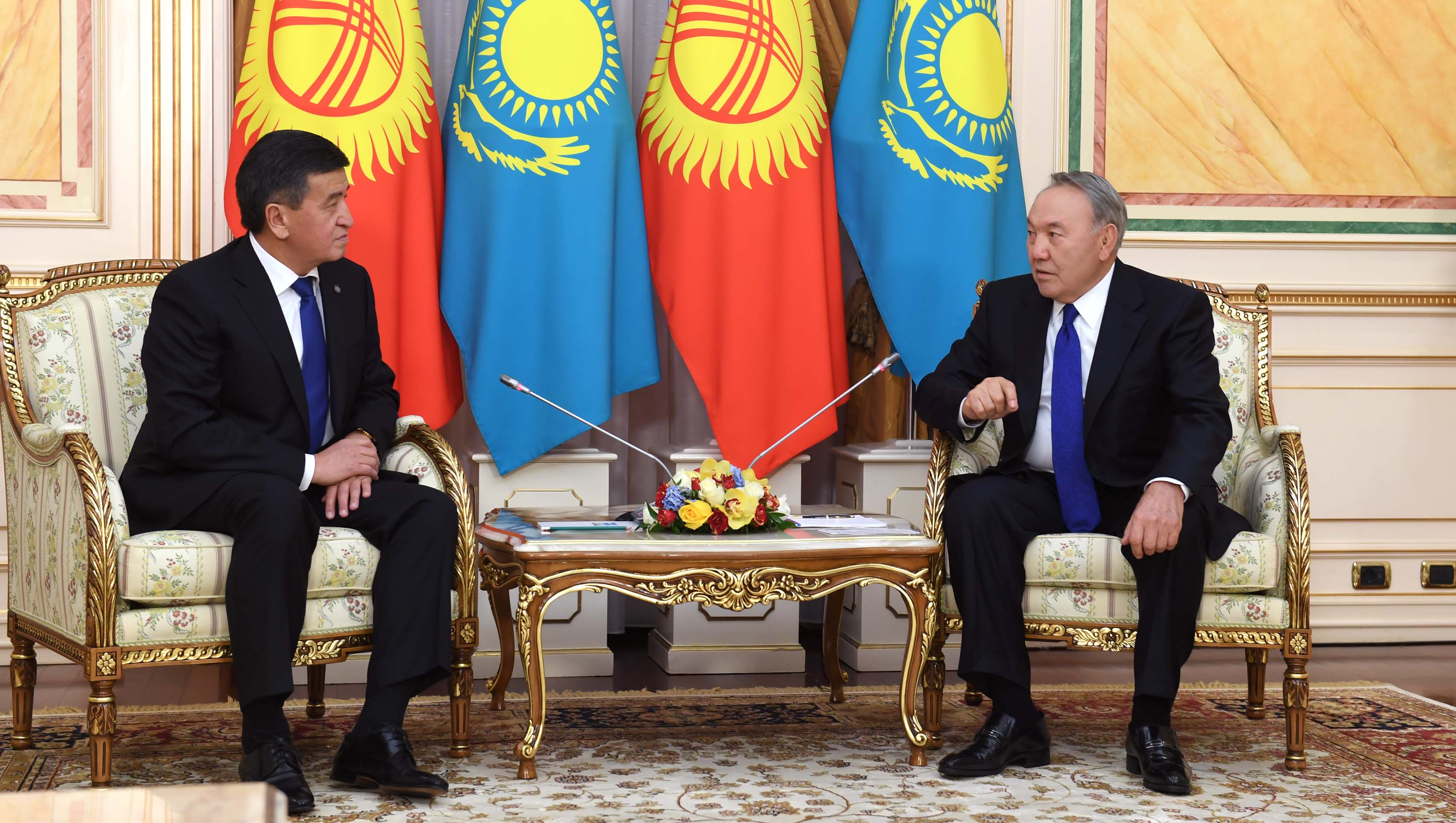 Nursultan Nazarbayev expressed gratitude to Sooronbay Jeenbekov for accepting the invitation to visit Kazakhstan on an official visit and noted that the first visit of the President of the Kyrgyz Republic was taking place on the 25th anniversary to establish diplomatic relations between the two countries.