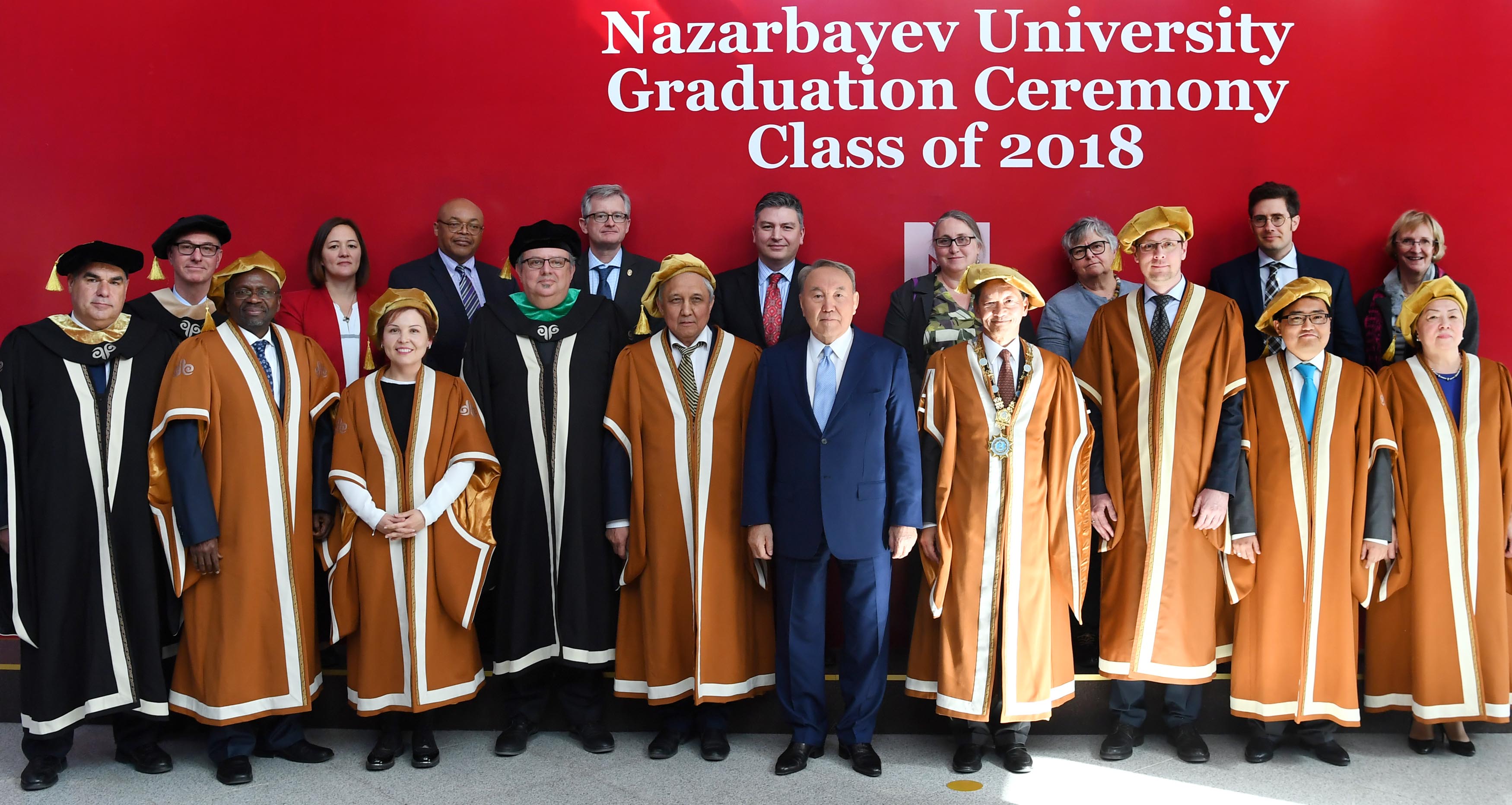 During the presentation of diplomas with honours, the Head of State congratulated the faculty and graduates of Nazarbayev University and wished them fruitful implementation of the ideas.