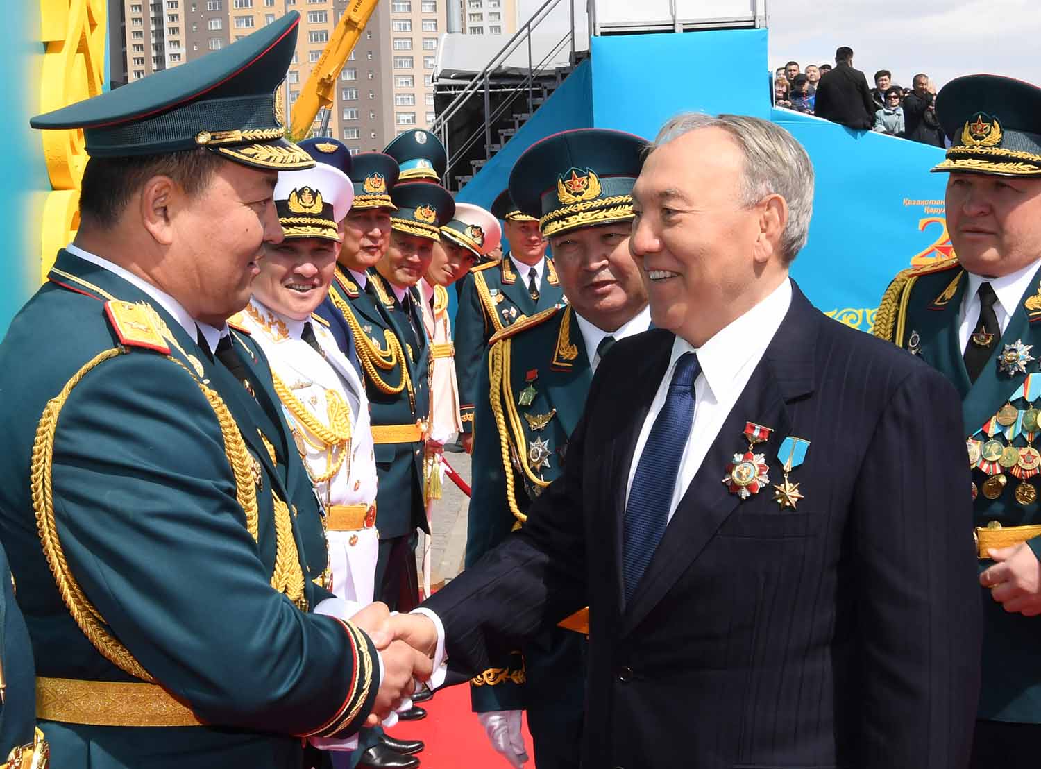 - At present the Armed Forces, together with the country, are undergoing a historical stage of modernization. The fundamentally new direction of the entire force block is the fight against terrorism. Kazakhstan’s Army must keep up with the times and be ready to fight back any threat. Another key task is the strengthening of personnel. We are educating a new generation of servicemen. People in military uniform should become the standard of honor and justice, an example for future generations. It is no coincidence that cadets of "Zhas Ulan" military schools take part in the festive parade for the first time; they are a reserve of the Armed Forces. This is a good sign of continuity of army traditions and values, Nursultan Nazarbayev said.