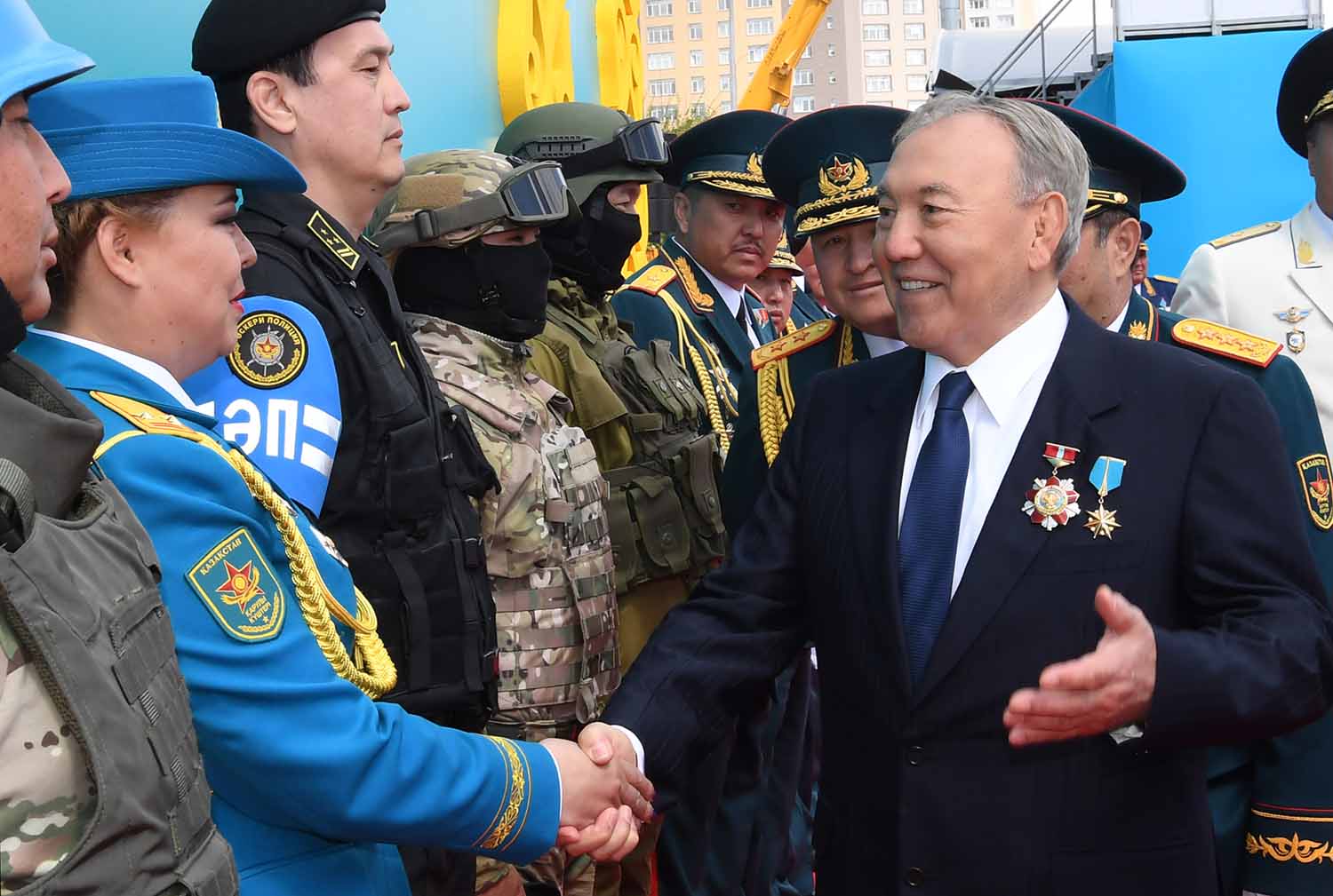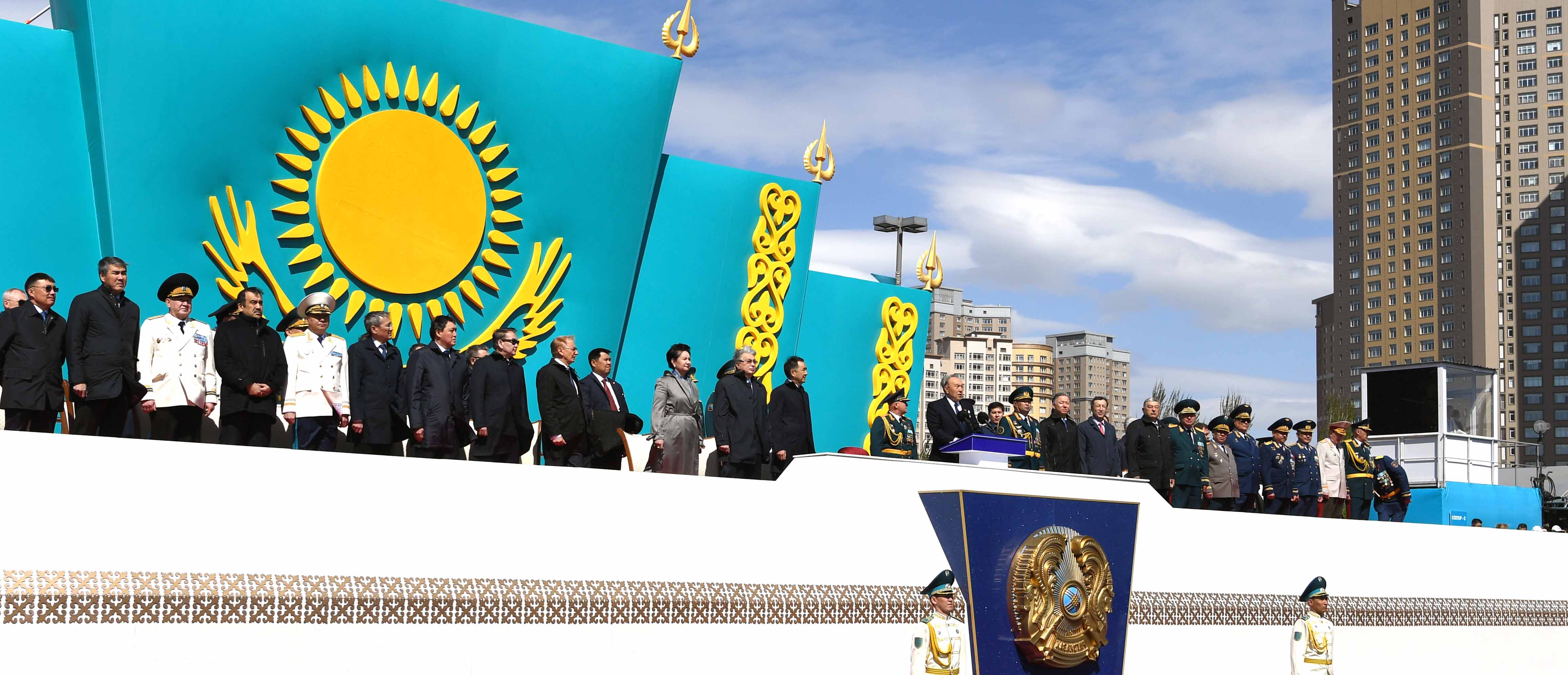 - More than five thousand people and 400 pieces of military equipment take part in the parade. This is the pride and glory of our valiant army. All these years the state has been providing the military with all-round support. A long way has passed from the first military formations to the creation of an effective security system. In the fateful period of the state’s formation, the Kazakh army has fulfilled its tasks with honor. Our Armed Forces have won high prestige in the country and abroad, the President of Kazakhstan said.