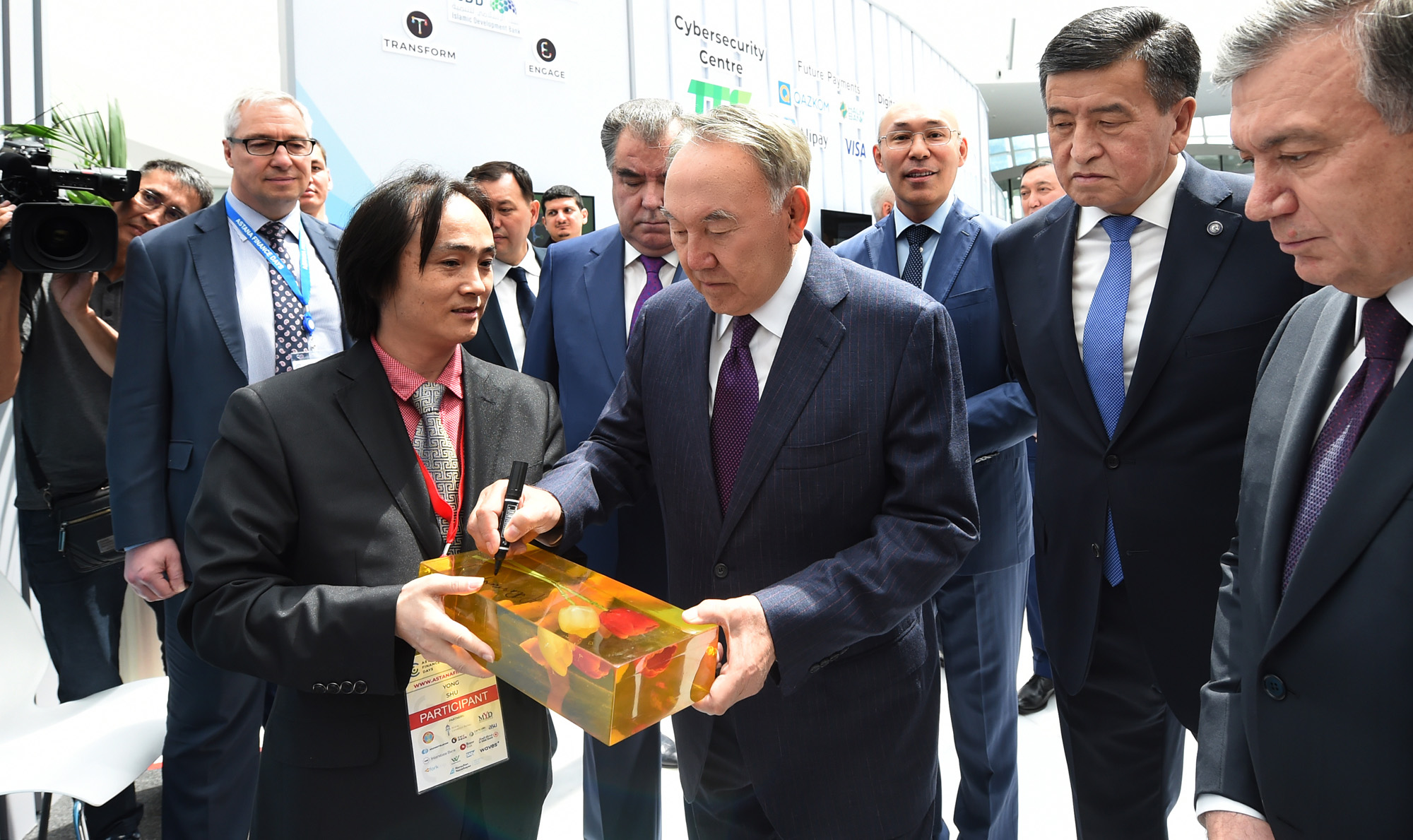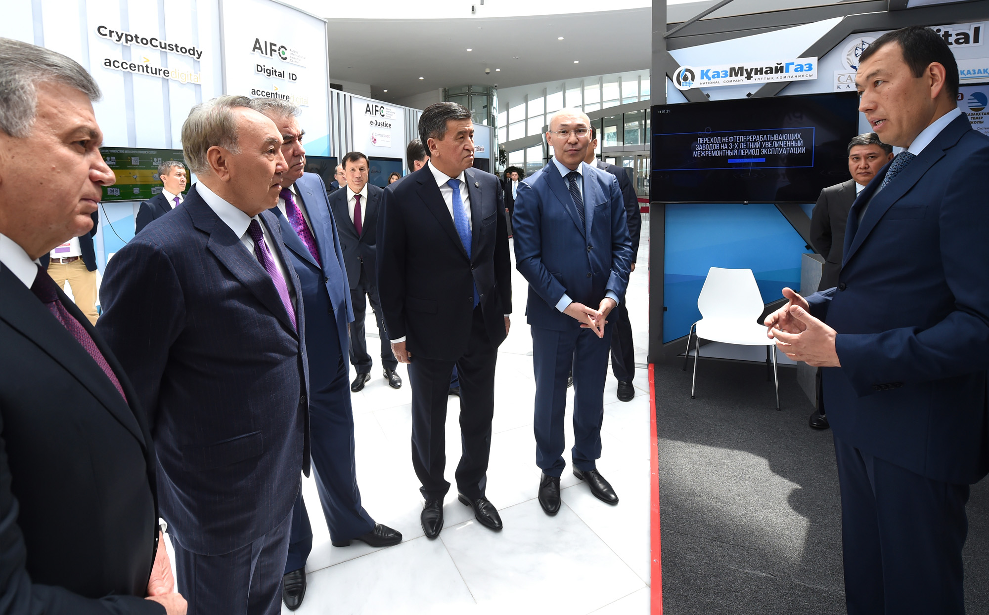 The President of Kazakhstan Nursultan Nazarbayev together with Presidents of the Kyrgyz Republic Sooronbay Jeenbekov, the Republic of Tajikistan Emomali Rahmon, the Republic of Uzbekistan Shavkat Mirziyoyev examined the digitalization exhibition timed to the opening of Astana International Financial Centre.