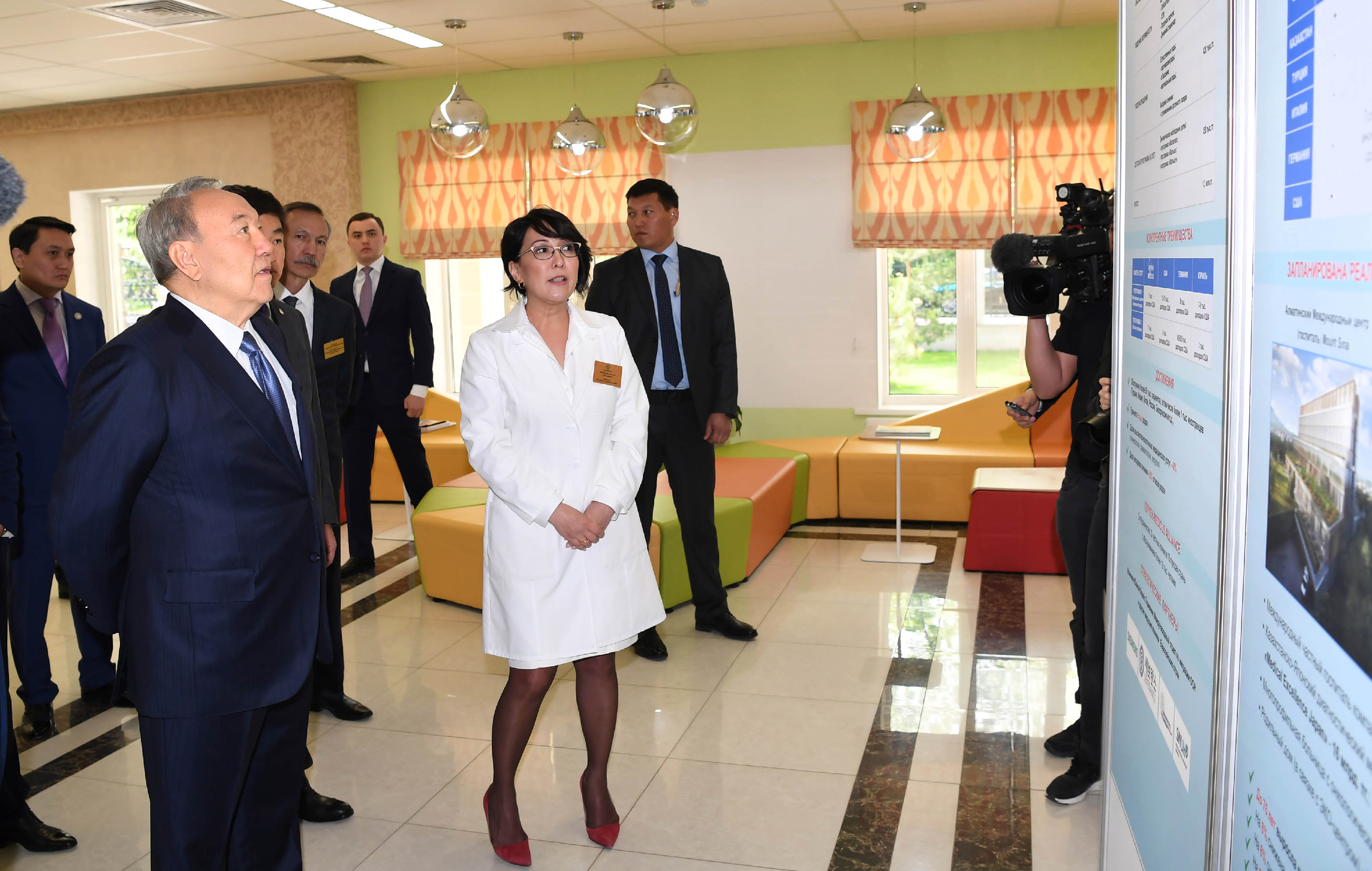 Nursultan Nazarbayev has also  had a look at the modern equipment of leading manufacturers of medical equipment, such as Siemens, Karl Storz, General Electric, Drager, Hamilton and other companies.