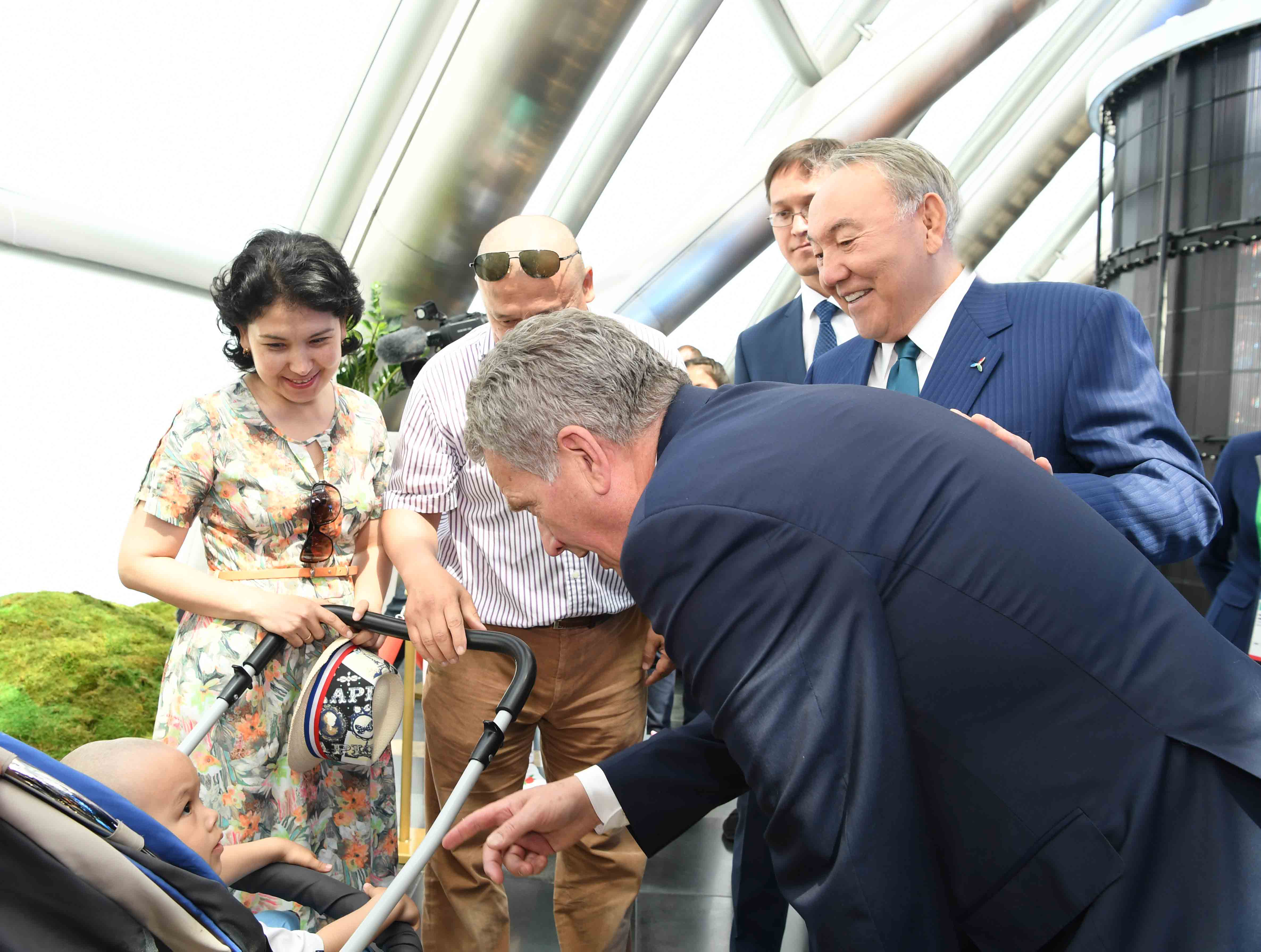 During the visit, the two leaders got acquainted with the expositions of Finland’s National Pavilion and inspected Kazakhstan’s Pavilion in "Nur Alem" Complex.
