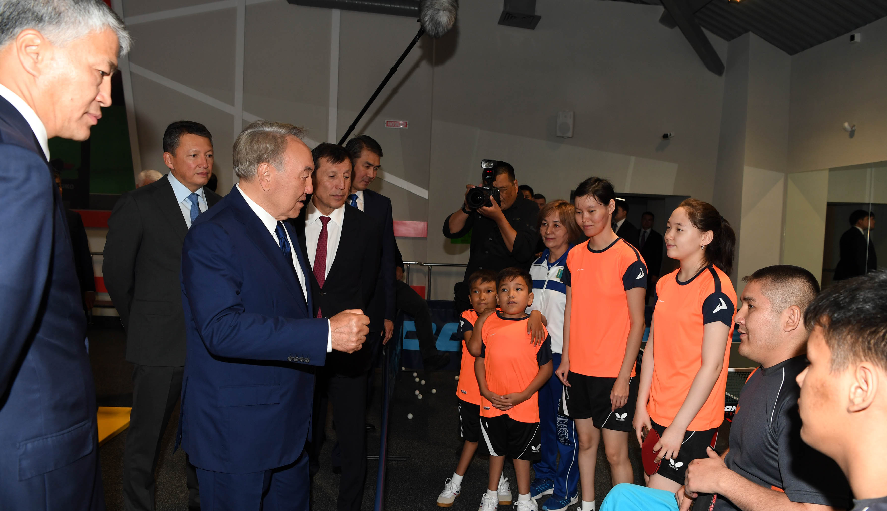 Nursultan Nazarbayev saw the game hall, martial arts hall and training facilities, and also talked with athletes and coaches.