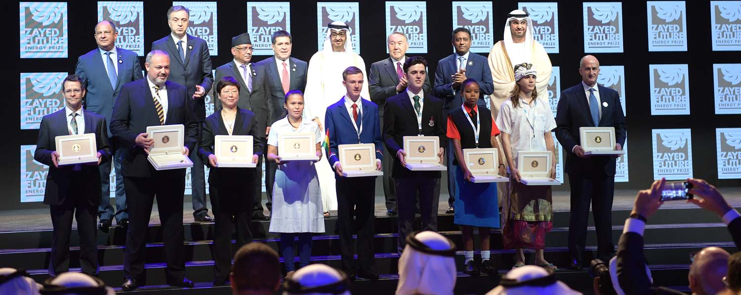 The award was established in 2008 and is presented annually at the World Future Energy Summit within the Abu Dhabi Sustainable Development Week on behalf of the Crown Prince of the Emirate Sheikh Mohammed Al Nahyan. The award, which is in 5 nominations, is given by one of the heads of foreign states in the presence of the UAE leadership. This year Nursultan Nazarbayev has had the honor to hand out the awards.