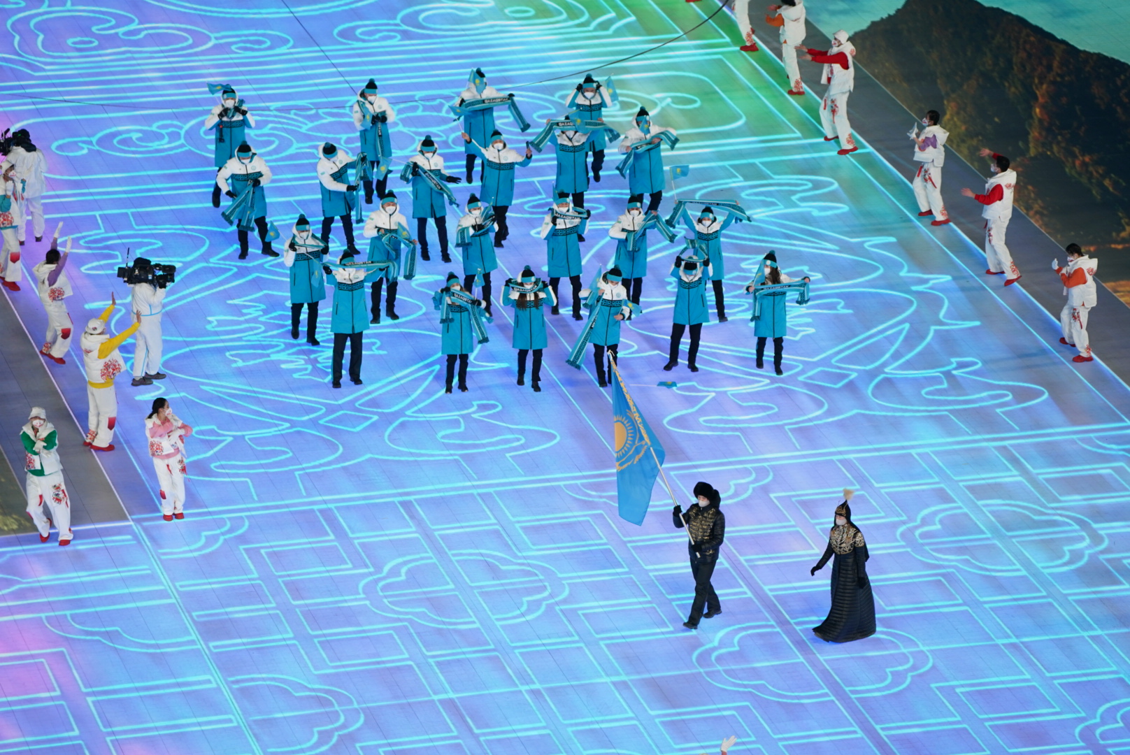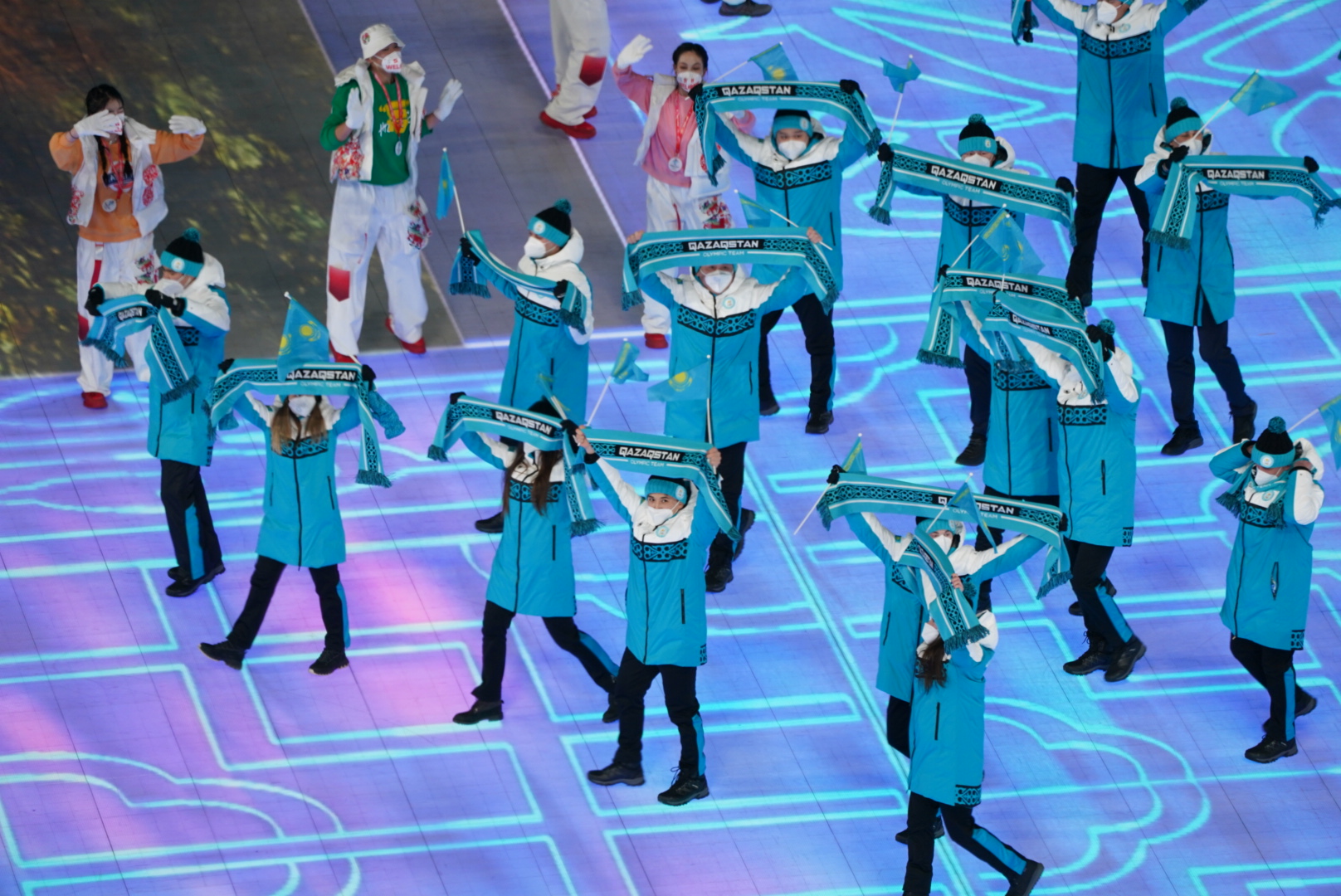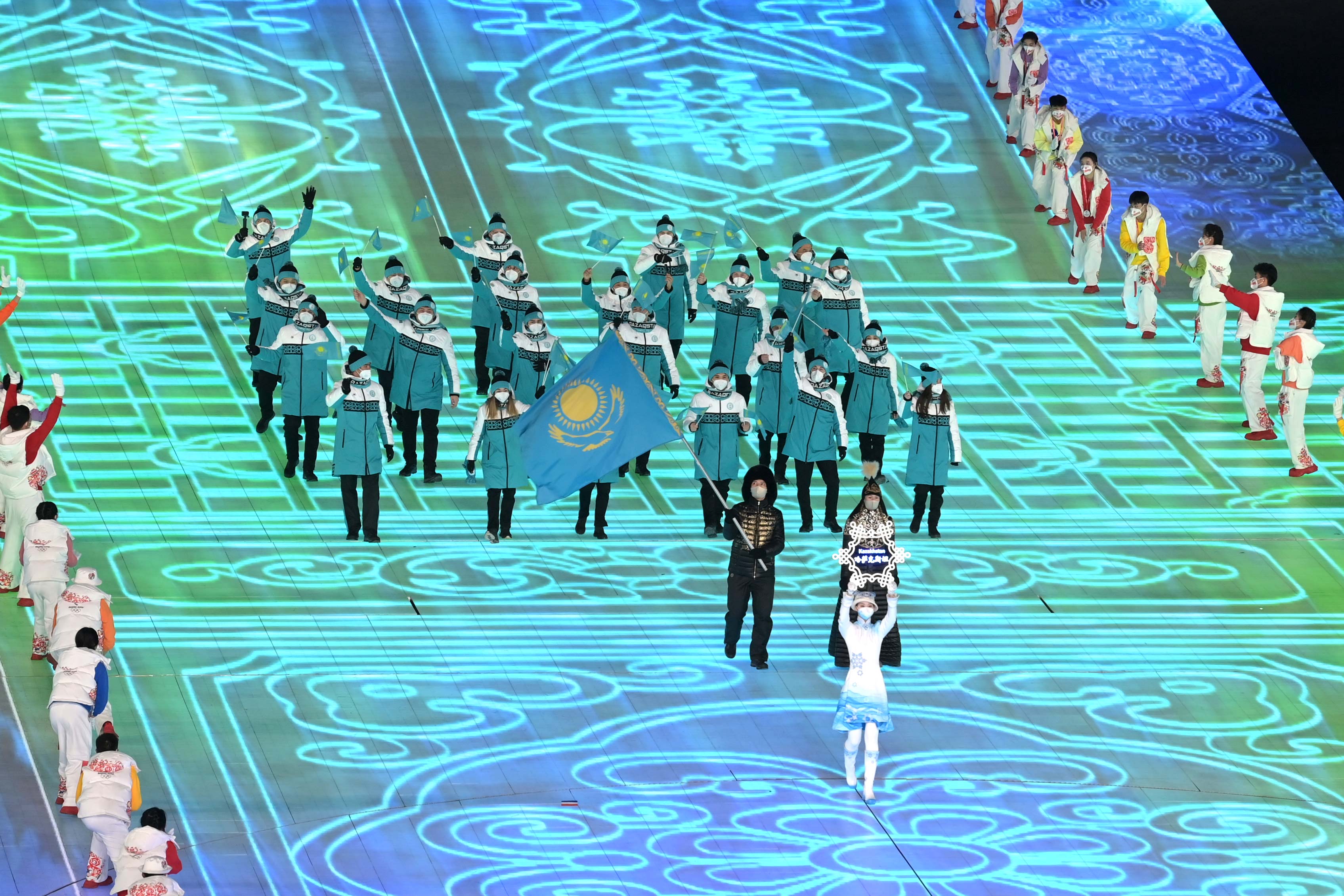 The flag-bearers of Kazakhstan became short-track athlete Abzal Azhgaliyev and speed skater Yekaterina Aidova. Kassym-Jomart Tokayev greeted Kazakhstan’s athletes.