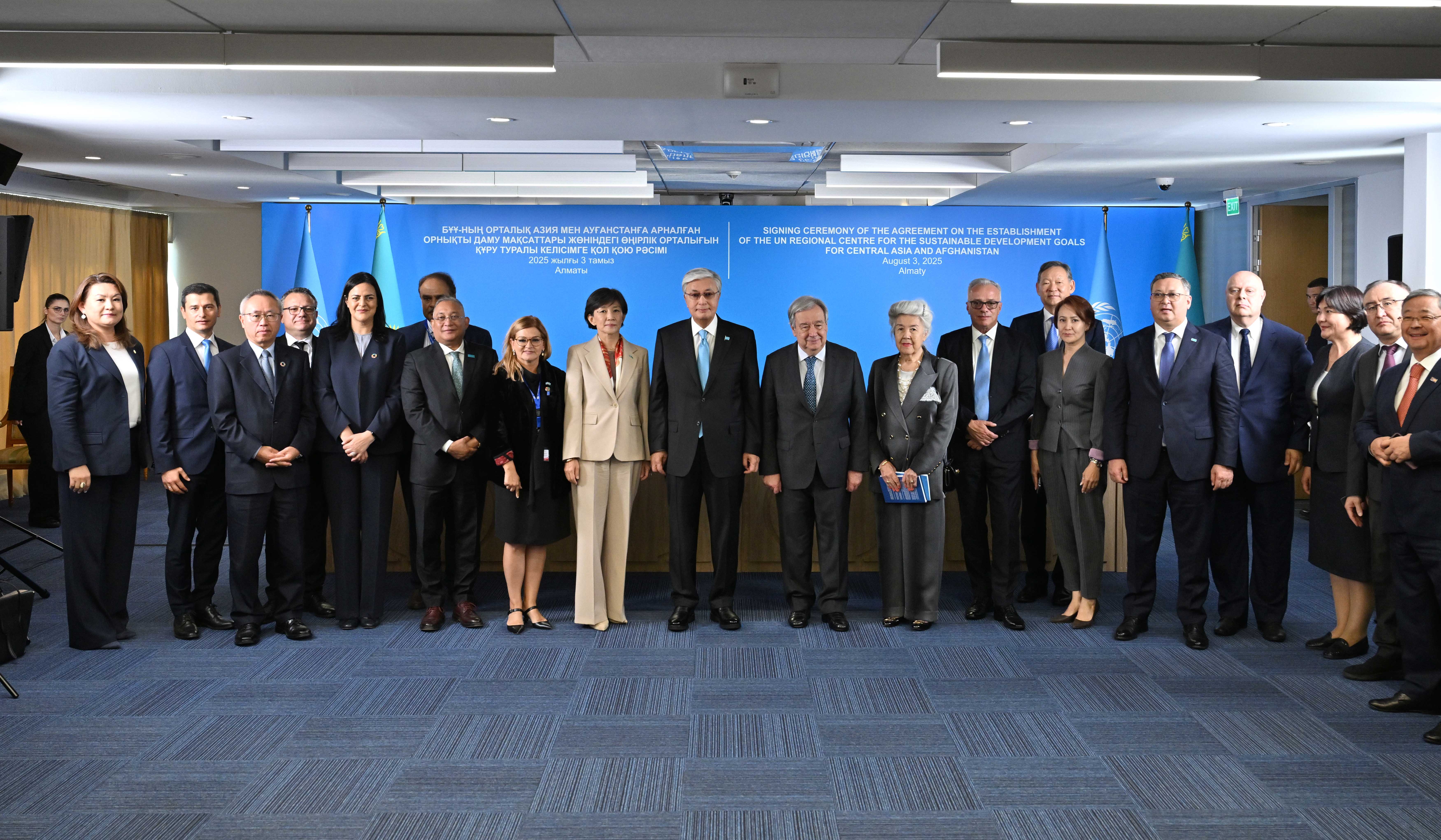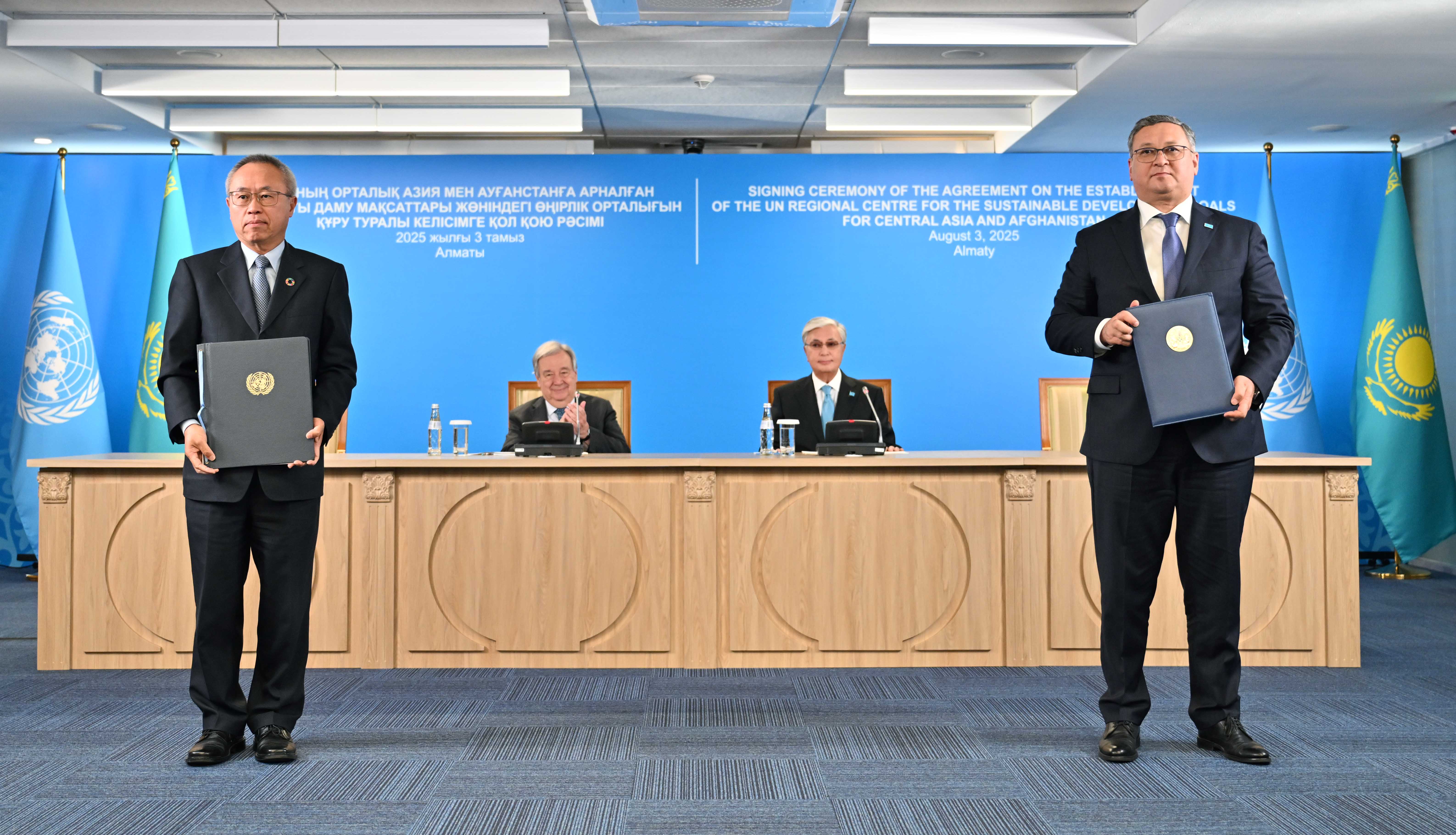 President Kassym-Jomart Tokayev and United Nations Secretary-General António Guterres took part in the signing ceremony of the Host Country Agreement between the Government of Kazakhstan and the United Nations concerning the establishment of the UN Regional Centre for the Sustainable Development Goals for Central Asia and Afghanistan in the Republic of Kazakhstan.