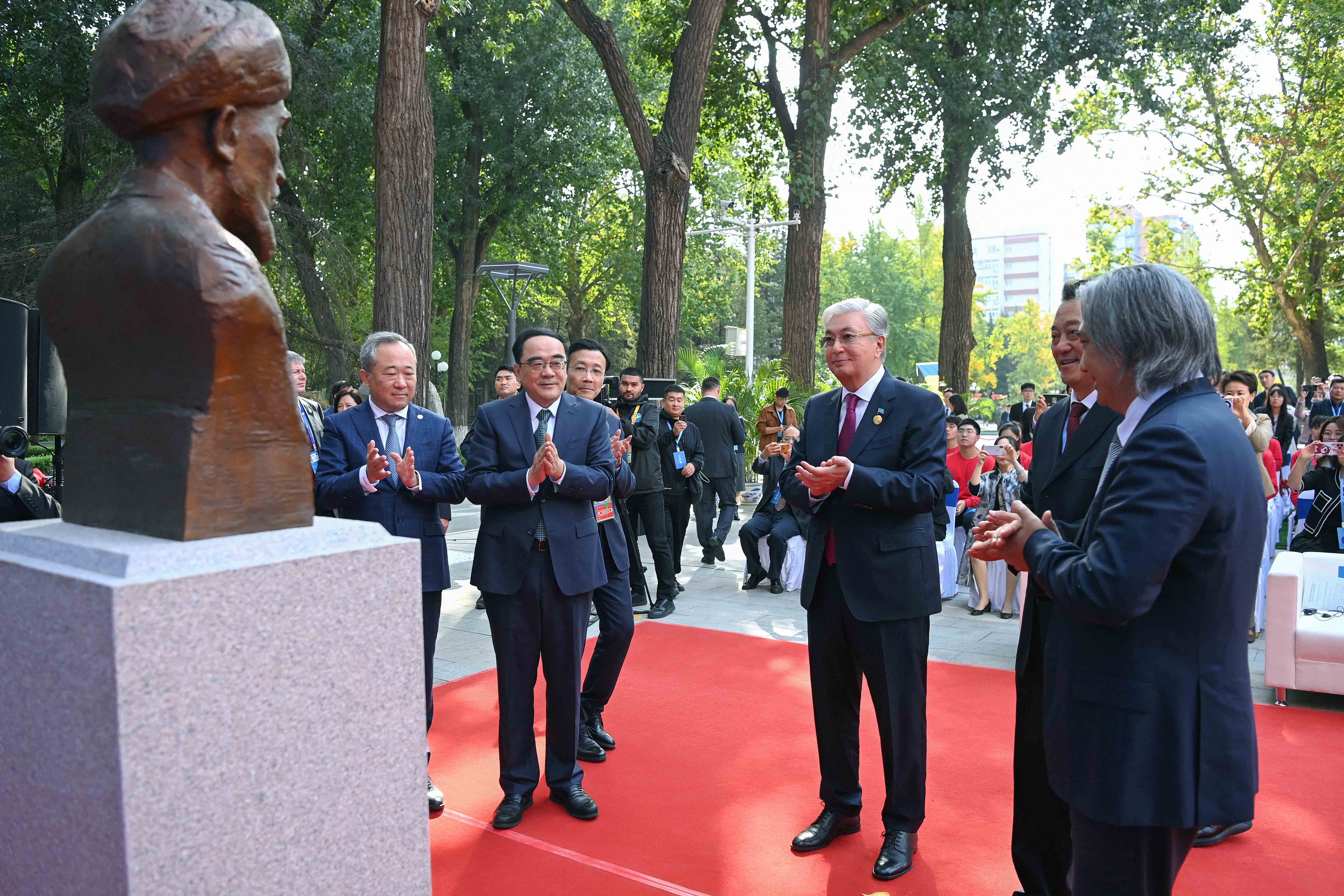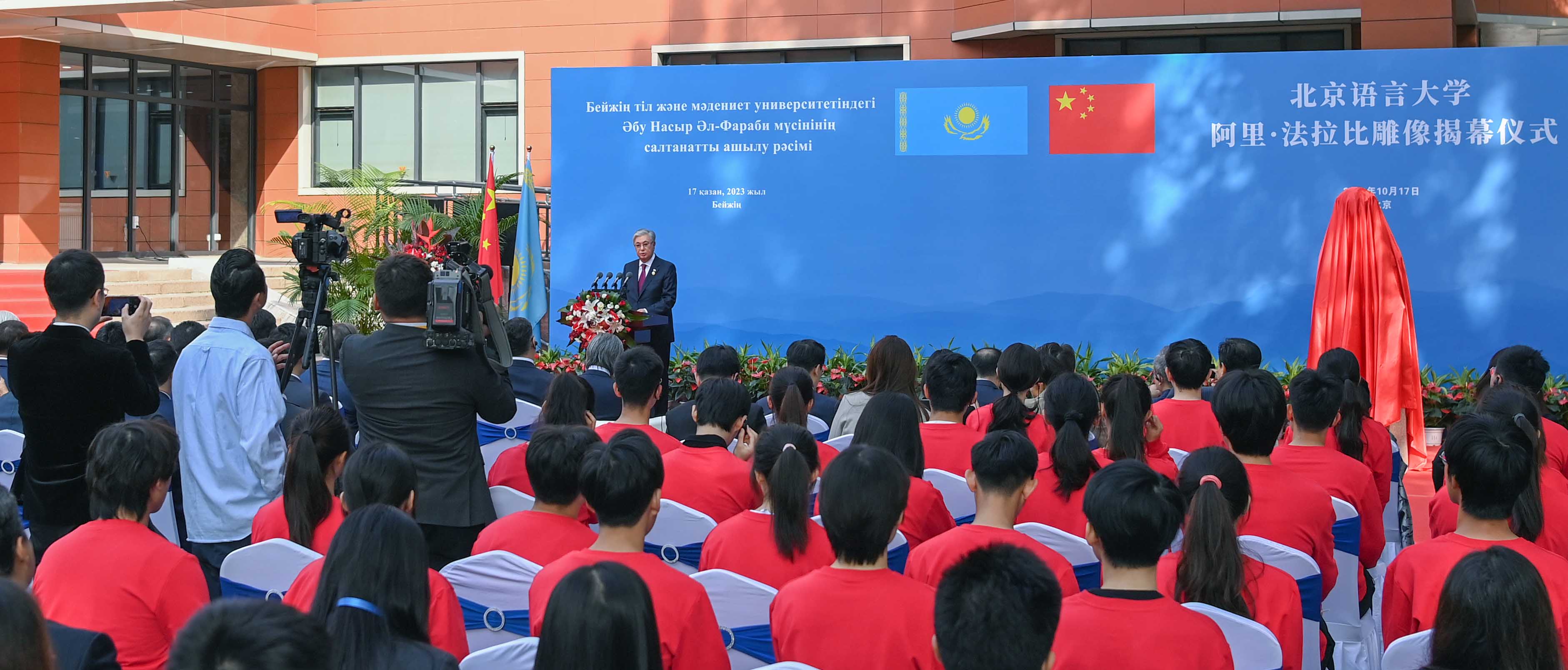 President Kassym-Jomart Tokayev attended the opening ceremony of the bust of medieval philosopher and scientist Abu Nasr Al-Farabi at the Beijing Language and Culture University.