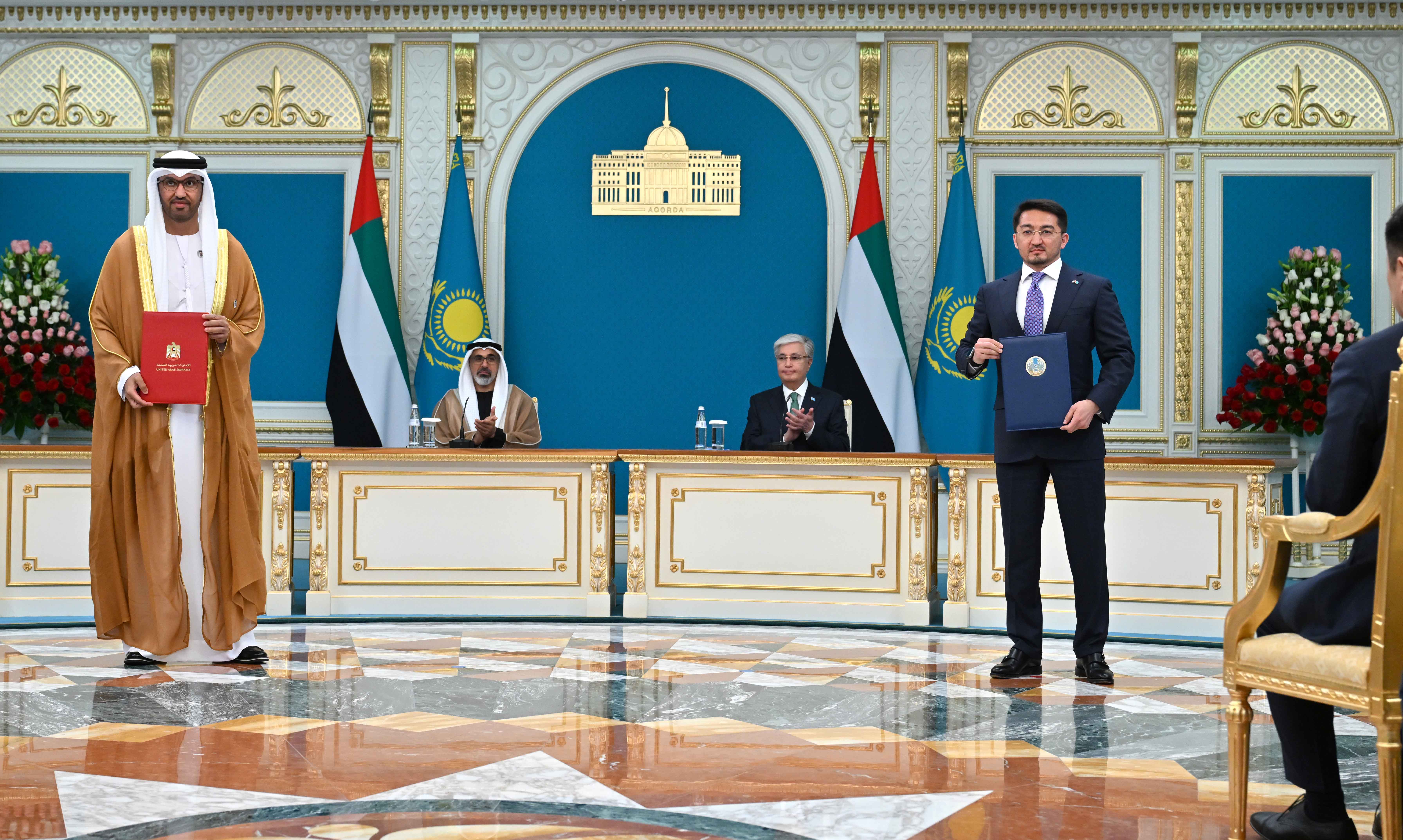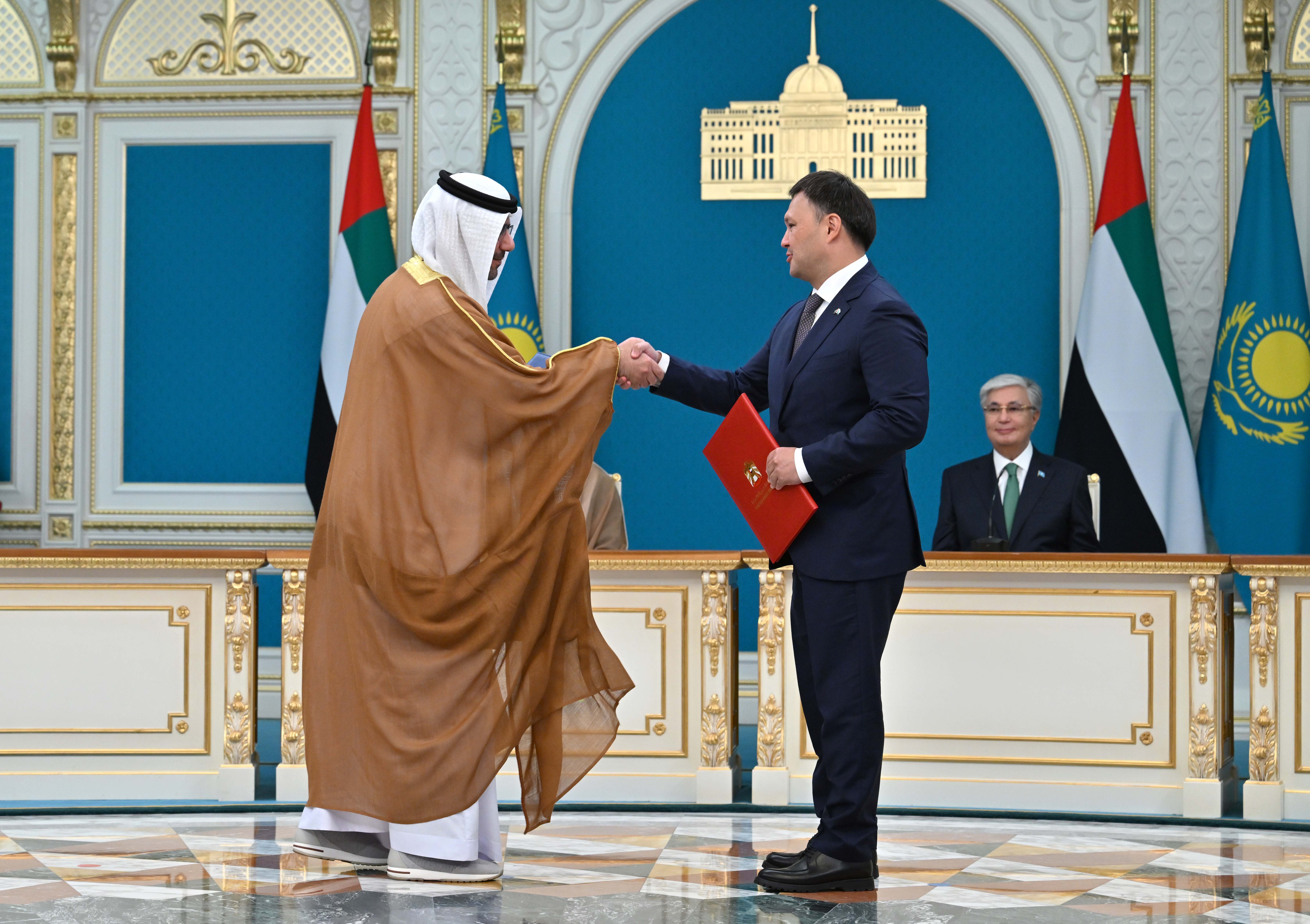 Following the conclusion of talks between President Kassym-Jomart Tokayev and the Crown Prince of Abu Dhabi, Sheikh Khaled bin Mohammed bin Zayed Al Nahyan, a ceremony was held to exchange signed bilateral documents:
