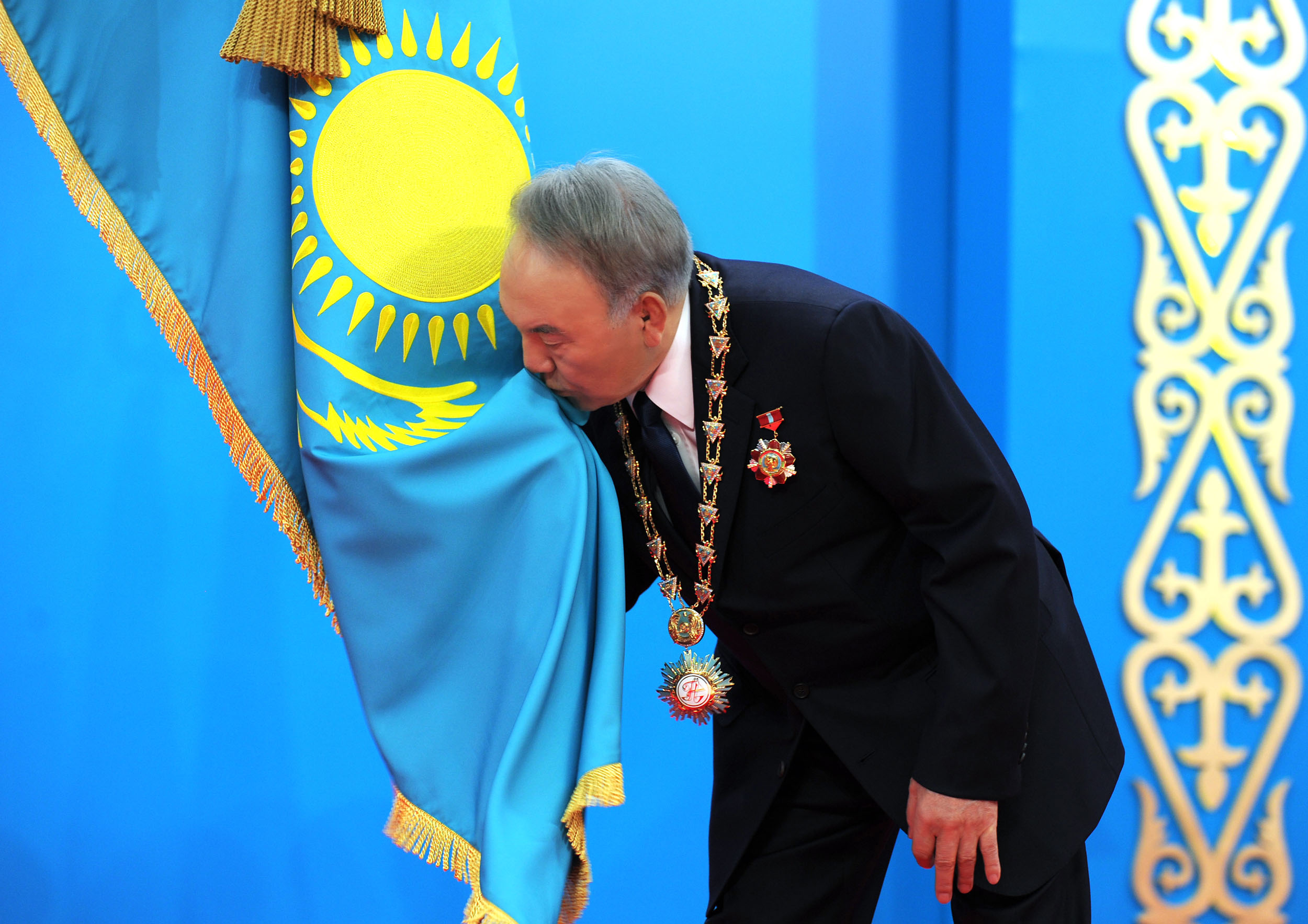 Нұрсұлтан Назарбаев оң қолын Конституцияға қойып: