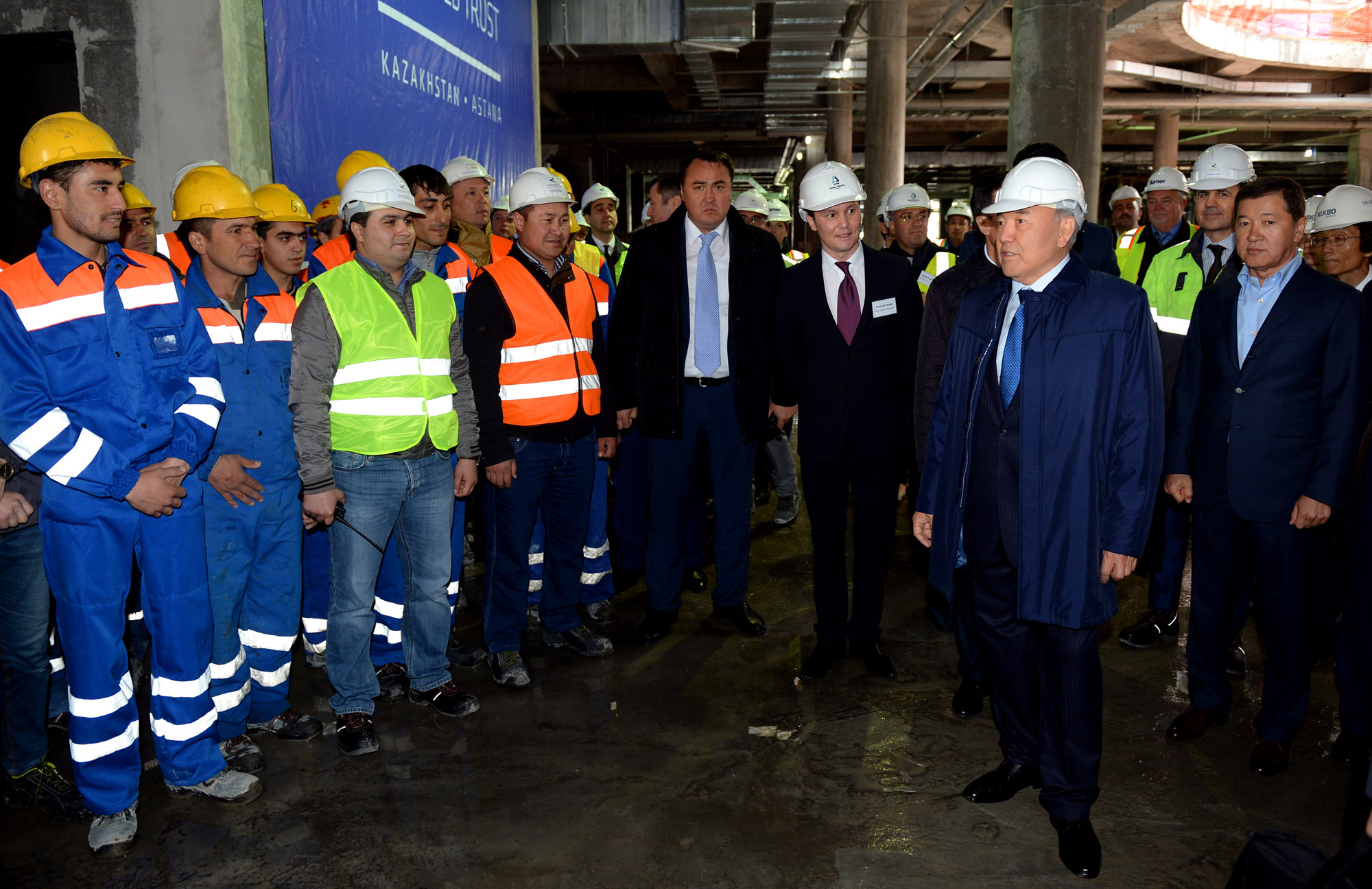 Елбасы жүргізіліп жатқан жұмыстардың барысымен танысып, нысан құрылысшыларымен әңгімелесті.