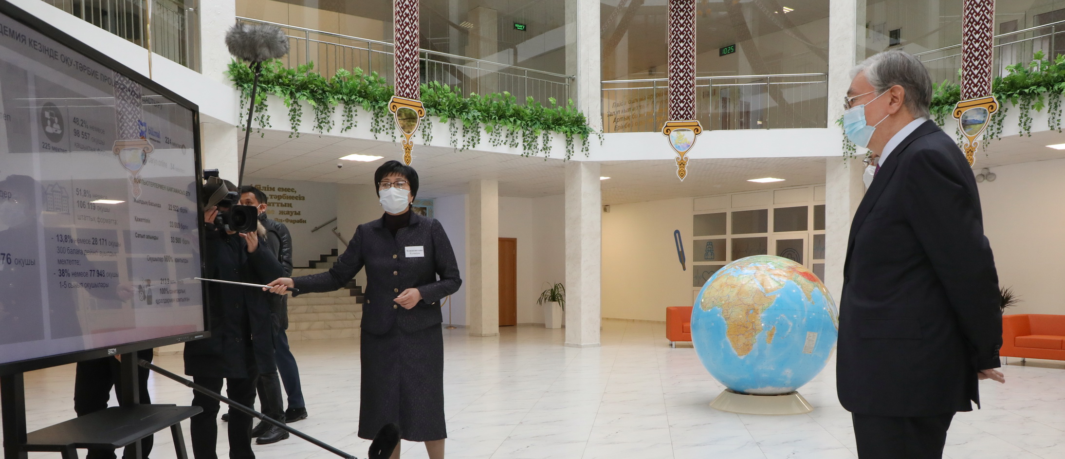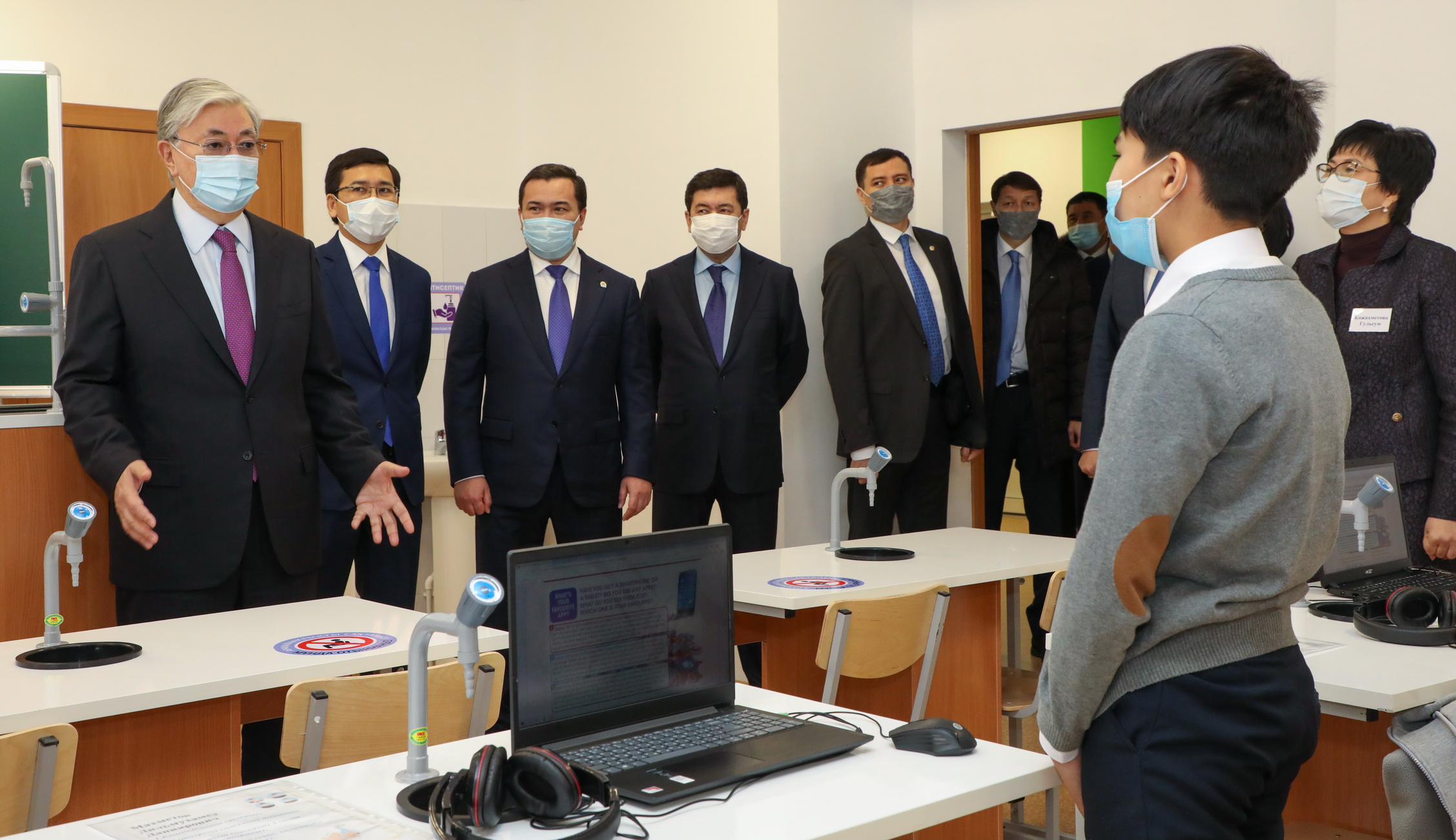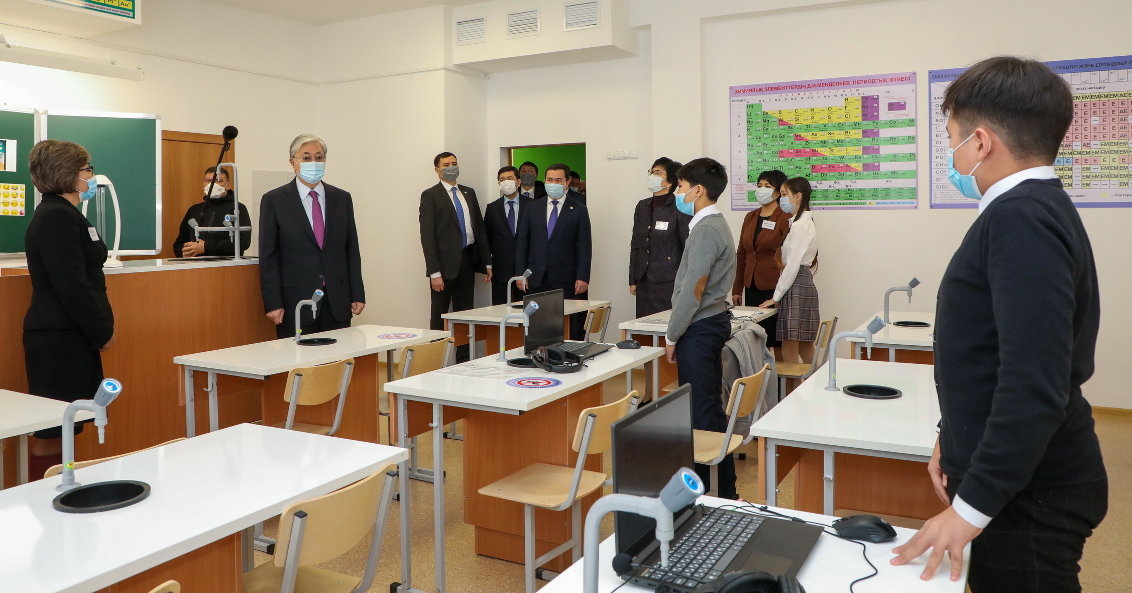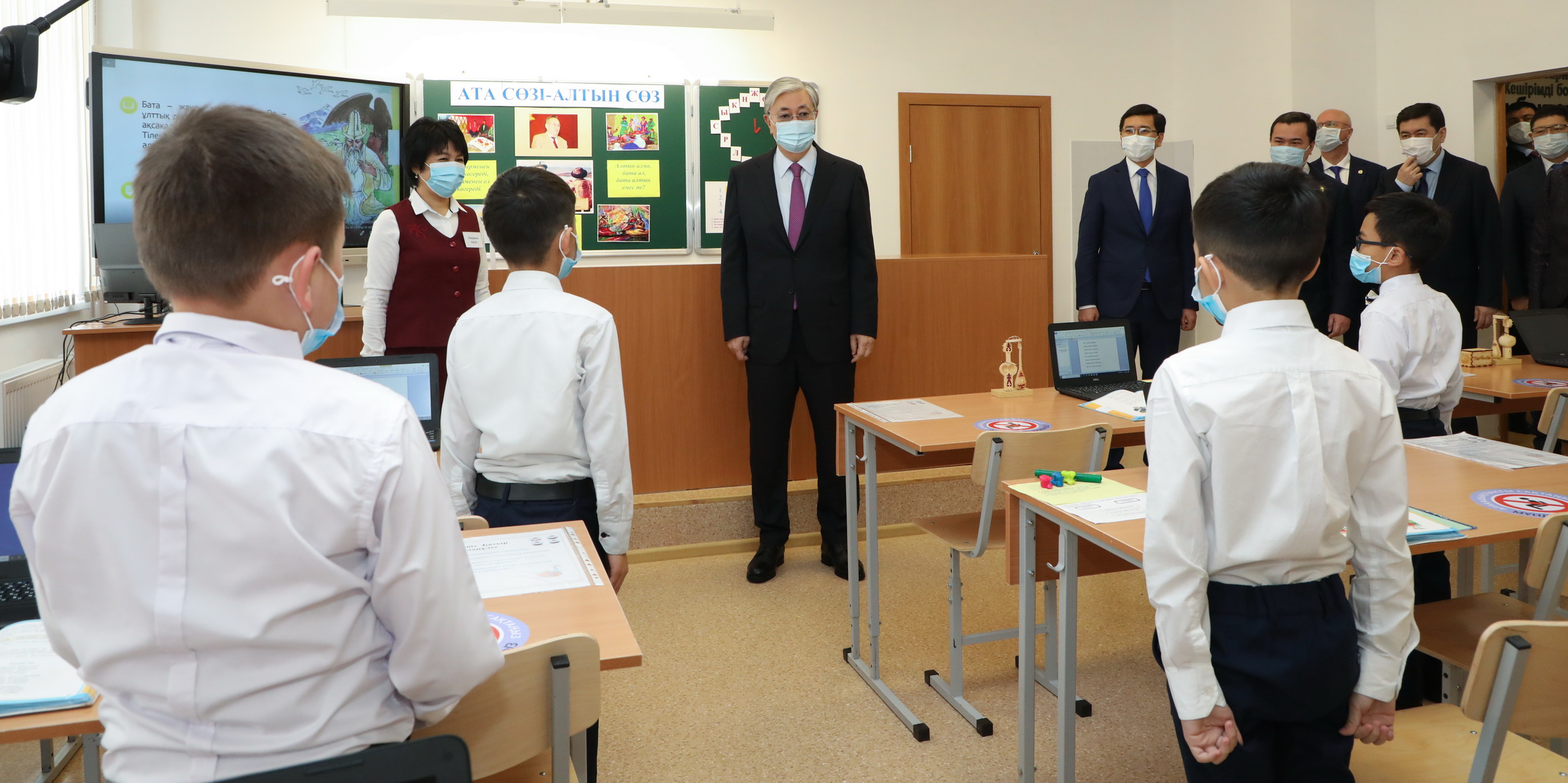 Қарағанды облысына жұмыс сапарымен келген Қазақстан Президенті Қасым-Жомарт Тоқаев жаңадан салынған 1200 орындық мектеп-гимназияны аралап көрді.
