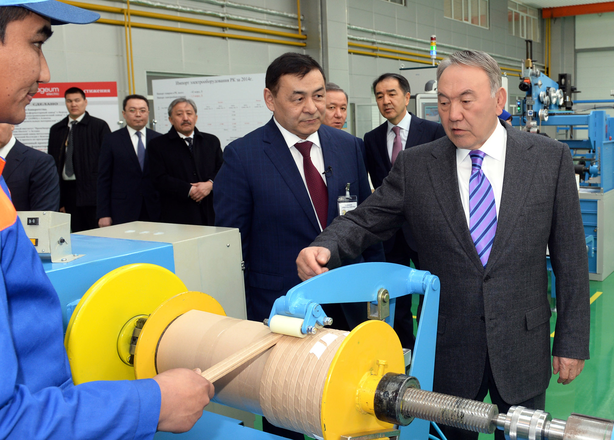 Мемлекет басшысы қуатты трансформаторлар жасау үдерісімен танысты және зауыттың дайын өнімдерін көрді. Нұрсұлтан Назарбаев сондай-ақ еңбек ұжымымен әңгімелесті. Қазақстан Президенті мемлекет көрсеткен қолдаудың арқасында кәсіпорын қалпына келтірілгенін және бүгінде одан әрі дамуға дайын екенін айтты. Кәсіпорынның қазір өз өнімдерін Еуразиялық экономикалық одақ елдеріне экспорттауға барлық мүмкіндігі бар. Зауыт жұмысшылары индустриялық саясаттың іс жүзіне асып жатқаны туралы айтып, мемлекет халықтың әл-ауқатын арттыруға, елдегі тұрақтылықты қамтамасыз етуге күш-жігер жұмсап отырғаны үшін алғыс айтты. *** Италияның, Швейцарияның және немістің заманауи жабдықтармен жабдықталған зауыттың жобалық қуаты жылына 10 мың трансформатор шығаруға есептелген. Мұнай-газ саласының компаниялары, энергетикалық кешен мен теміржол көлігі кәсіпорындары осы өнімнің негізгі тұтынушылары болып саналады.