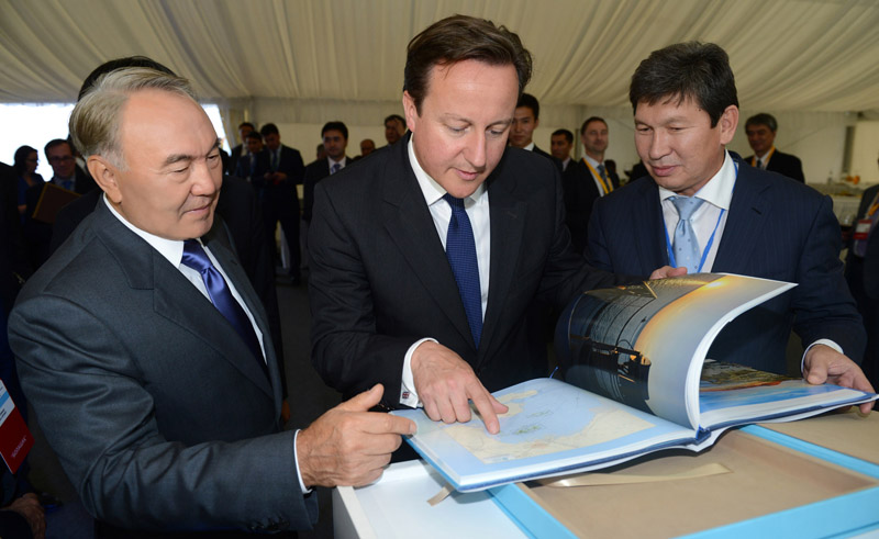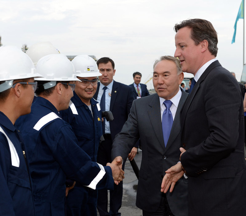 Қазақстан Президенті Нұрсұлтан Назарбаев пен Ұлыбритания Премьер-Министрі Дэвид Кэмерон мұнай мен газды кешенді дайындайтын «Болашақ» зауытының ашылу рәсіміне қатысты