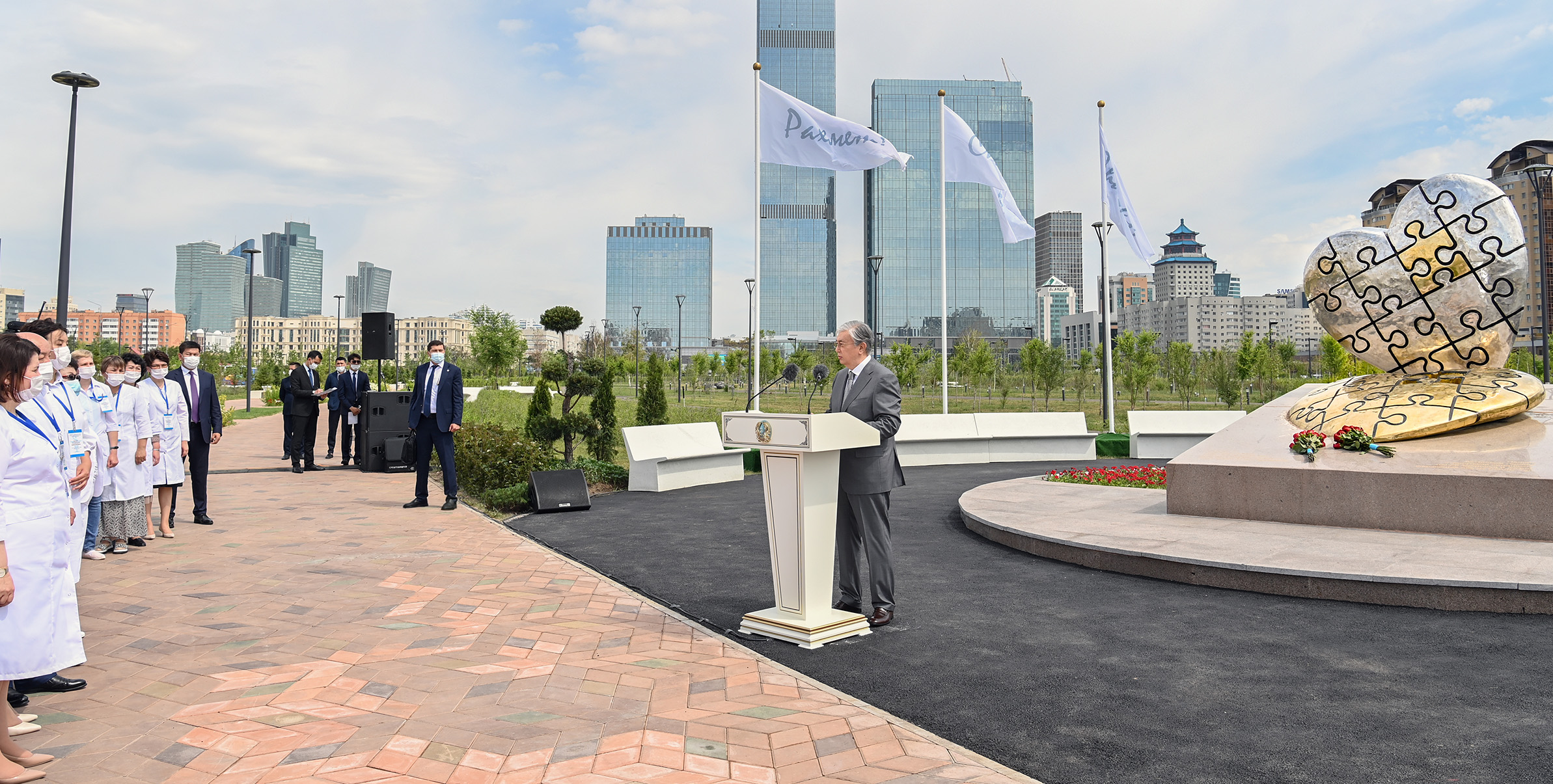 – Бұл – жаһандық дертке қарсы күрескен отандастарымызға деген ел құрметінің белгісі. Сондай-ақ халықтың адал перзенттеріне ыстық ықыласының көрінісі. Ескерткіш ел басына қиындық туған сәтте қаһармандық көрсеткен жандардың рухына тағзым ету орнына айналады, – деді Президент.