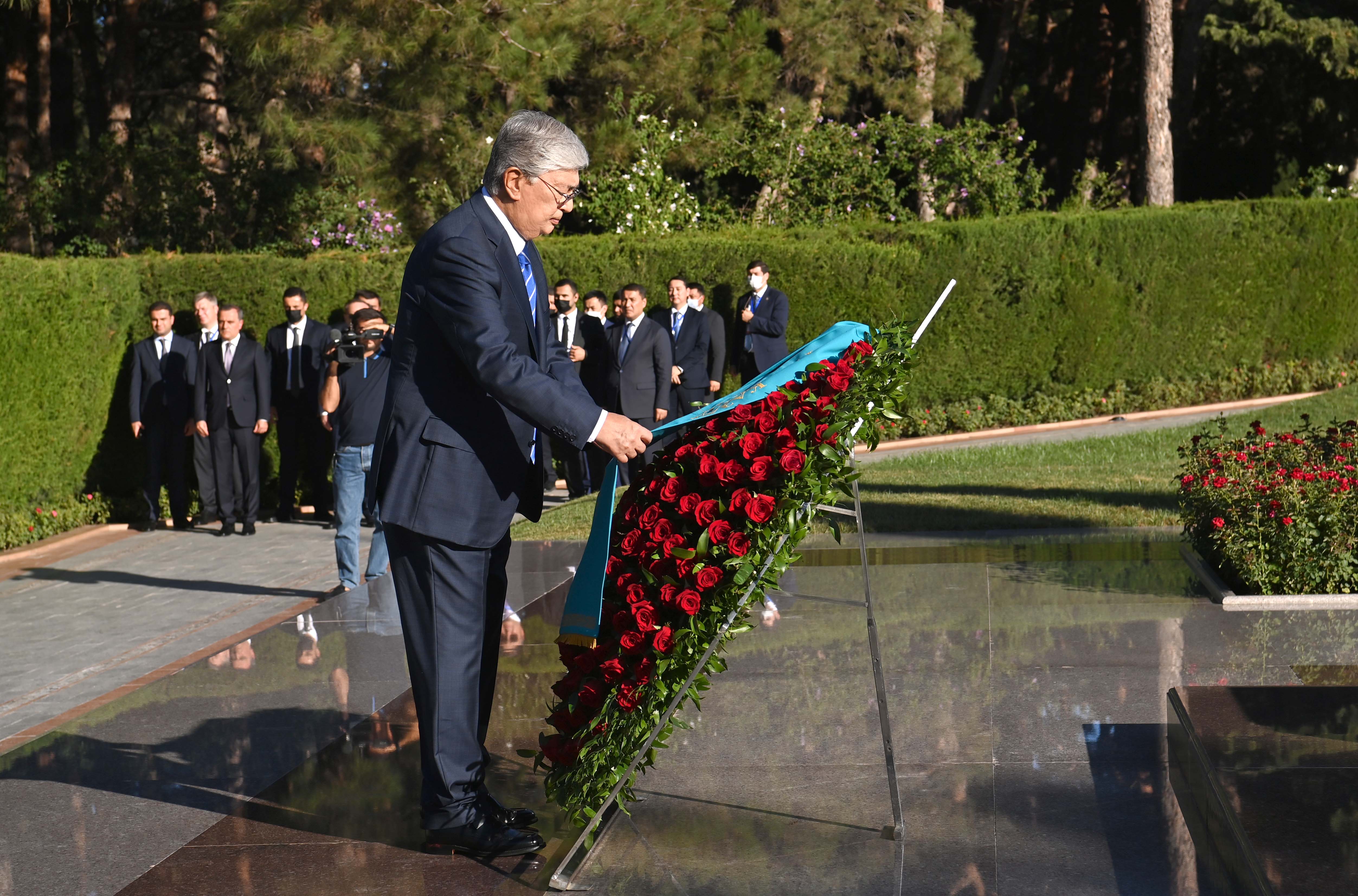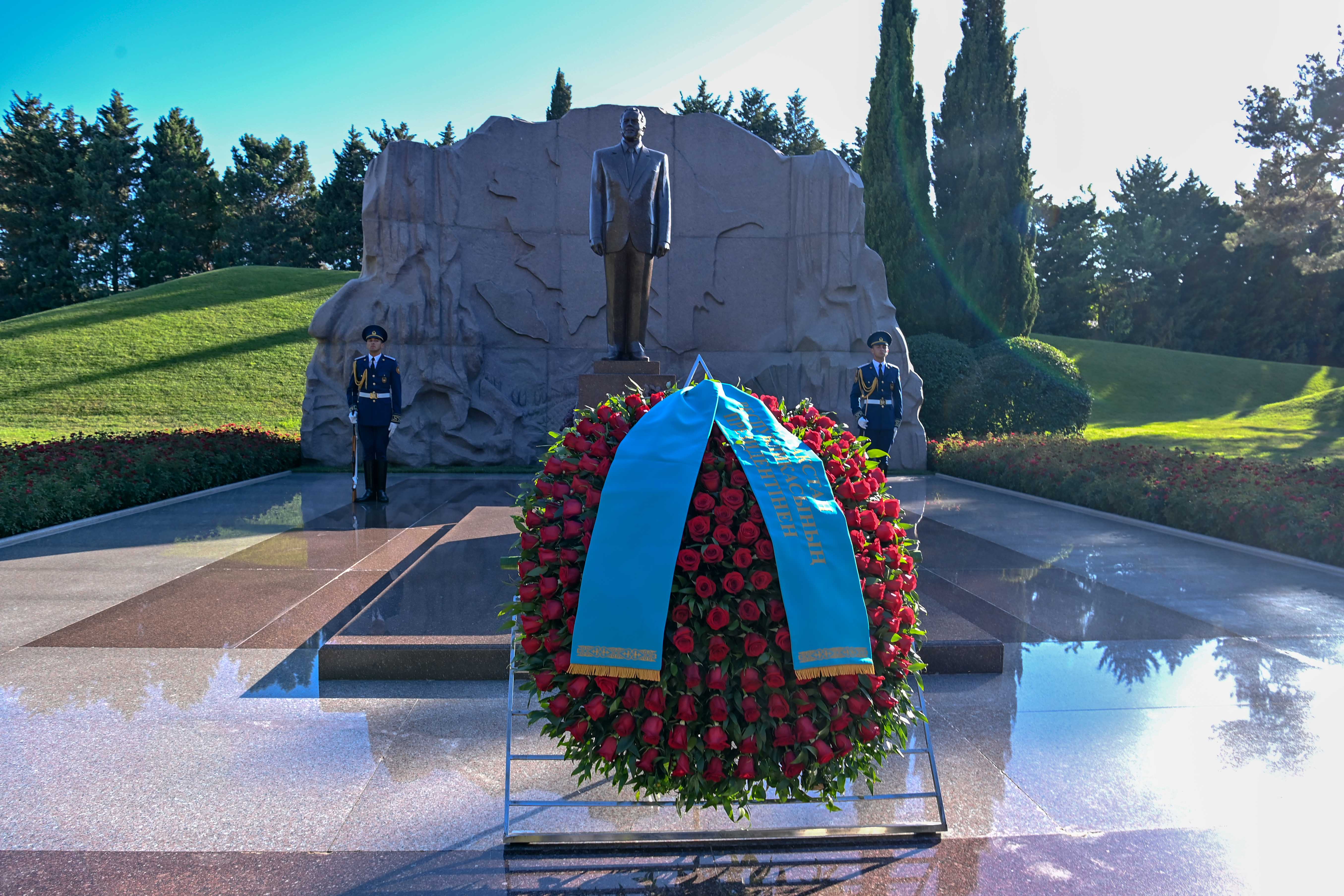 Мемлекет басшысы Әзербайжанға ресми сапары кезінде осы елдің жалпыұлттық көшбасшысы Гейдар Әлиев пен оның зайыбы Зарифа Әлиеваның бейітіне гүл шоғын қою рәсіміне қатысты. Қазақстан Президенті бұдан кейін Әзербайжанның азаттығы мен территория тұтастығы үшін қаза тапқан жауынгерлер жерленген Шаһиттер аллеясындағы мәңгілік алауға да гүл шоғын қойды.