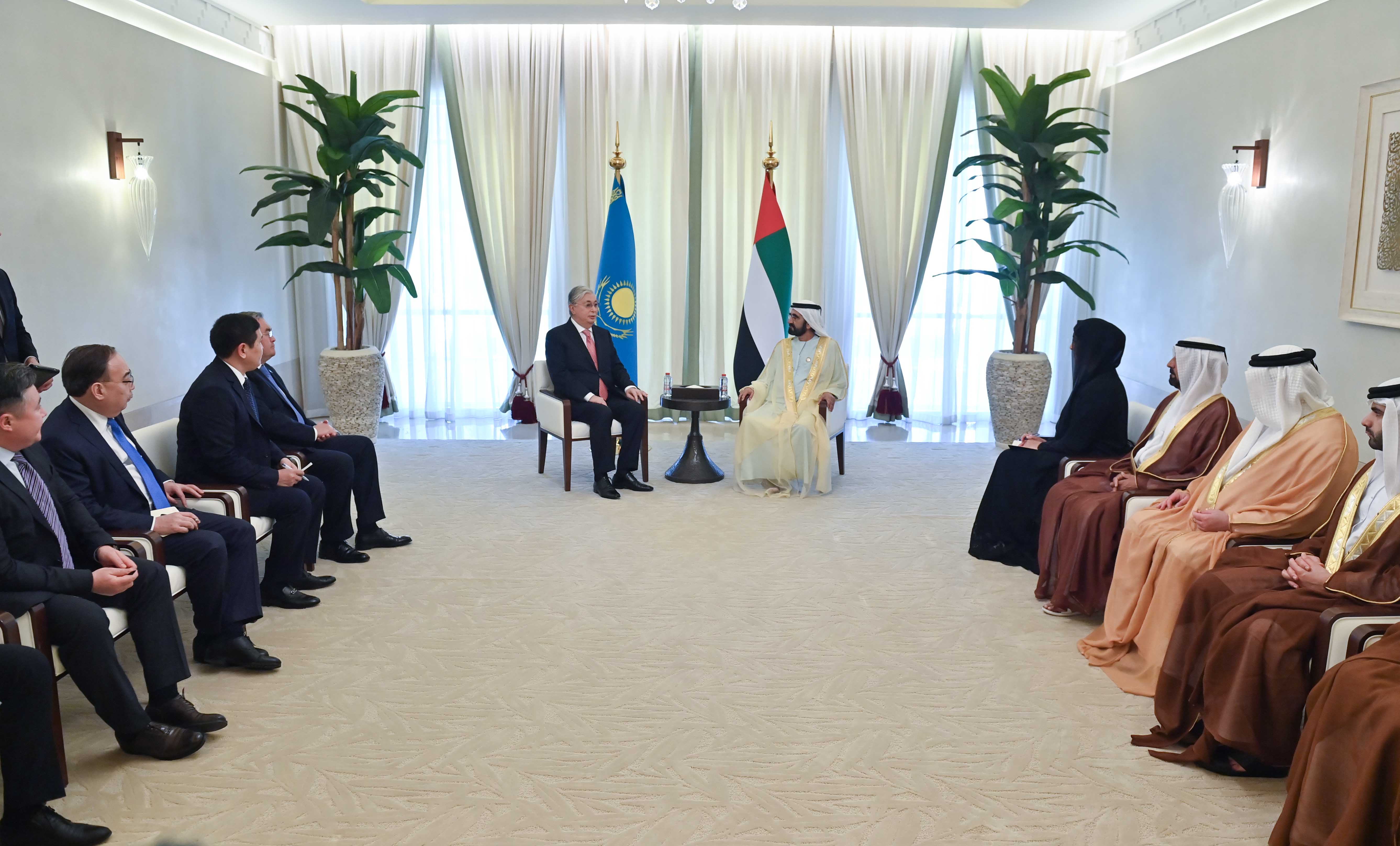 БАӘ, Дубай Мемлекет басшысы қонақжайлық көрсеткені үшін шейх Мұхаммед бен Рашид Әл Мактумға алғыс айтып, Біріккен Араб Әмірліктеріне жасаған ресми сапары аясында нәтижелі келіссөздер жүргізілгенін және екі ел арасында маңызды екіжақты келісімдерге қол жеткізілгенін атап өтті. Әңгімелесу барысында Президент Қасым-Жомарт Тоқаев «Астана» халықаралық қаржы орталығы Әмірліктердің басты қаржы институттарымен қарым-қатынас орнатқанына тоқталып, екі елдің іскер топтары арасындағы байланысты жандандыру мәселесіне назар аударды. Өз кезегінде шейх Мұхаммед бен Рашид Әл Мактум Қазақстан мен Әмірліктер арасындағы экономикалық ынтымақтастықты одан әрі нығайтуға ниетті екенін жеткізді. Кездесу соңында Мемлекет басшысы Қасым-Жомарт Тоқаев БАӘ Вице-президенті, Премьер-министрі, Дубай әмірлігінің билеушісін Қазақстанға ресми сапармен келуге шақырды. Шейх Мұхаммед бен Рашид Әл Мактум Президенттің шақыруын қабыл алып, Қазақстанға сапар шегу зор мәртебе екенін айтты.