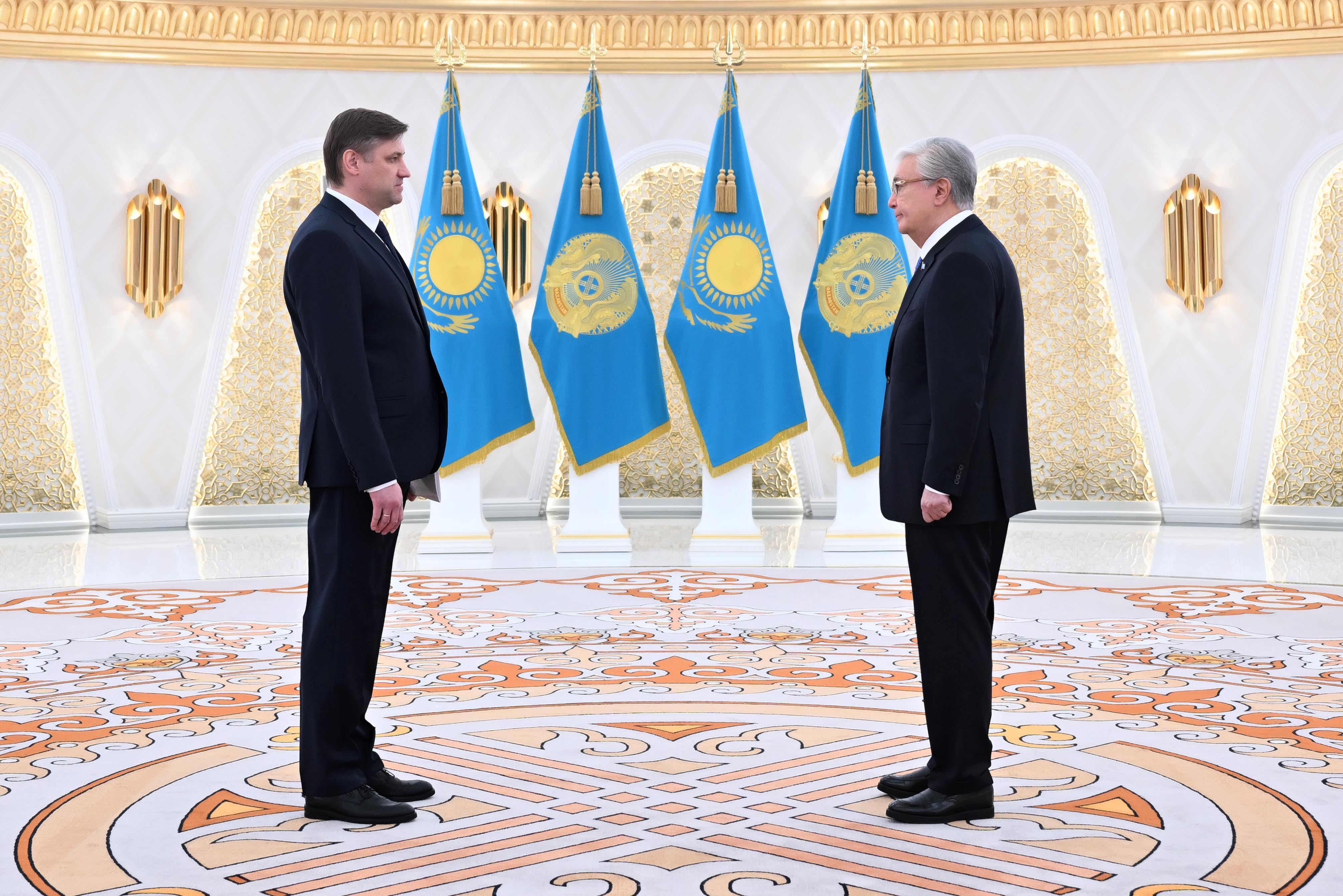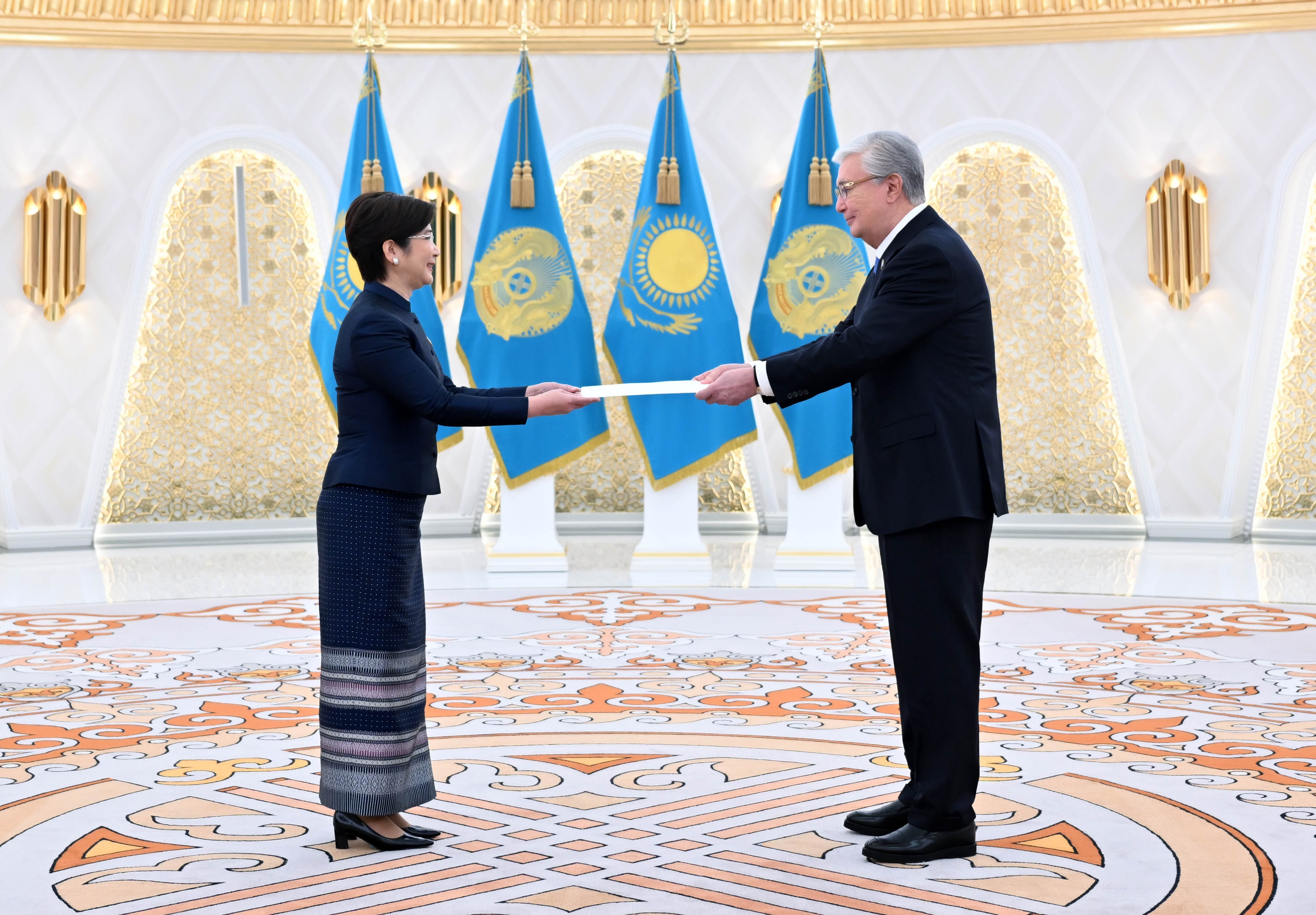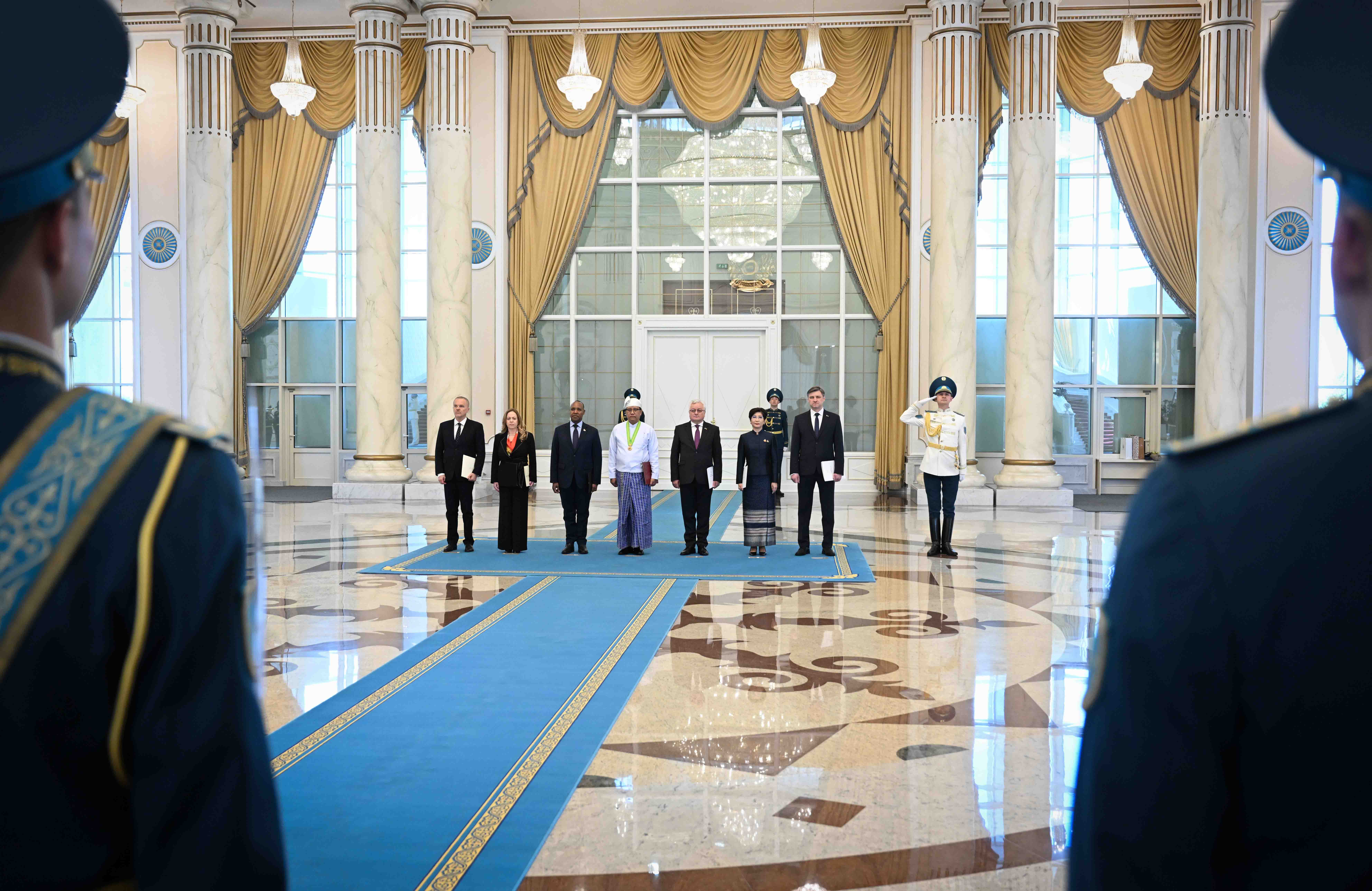 «Ақорда» резиденциясында жеті мемлекеттің төтенше және өкілетті елшілерінің Қазақстан Президентіне сенім грамоталарын табыстау рәсімі өтті. Сенім грамоталарын Беларусь Республикасының елшісі Алексей Богданов, Таиланд Корольдігінің елшісі Пияпин Нийомреркс, Молдова Республикасының елшісі Штефан Горда, Мьянма Одағы Республикасының елшісі Тит Линн Оун, Кения Республикасының елшісі Питер Мутуку Матуки, Албания Республикасының елшісі Блерта Кадзадеш, Италия Республикасының елшісі Антонелло де Риу тапсырды. Мемлекет басшысы дипломаттарды Қазақстандағы миссияларының басталуымен құттықтап, еліміз олардың қызметіне жан-жақты қолдау көрсететінін жеткізді. Қасым-Жомарт Тоқаев Қазақстанның бейбіт әрі көпвекторлы сыртқы саясат ұстанатынын айтты. Президенттің айтуынша, халықаралық қатынастарда диалог пен ықпалдастық қағидаттары басшылыққа алынуға тиіс және БҰҰ Жарғысын қатаң сақтау айрықша маңызды. '