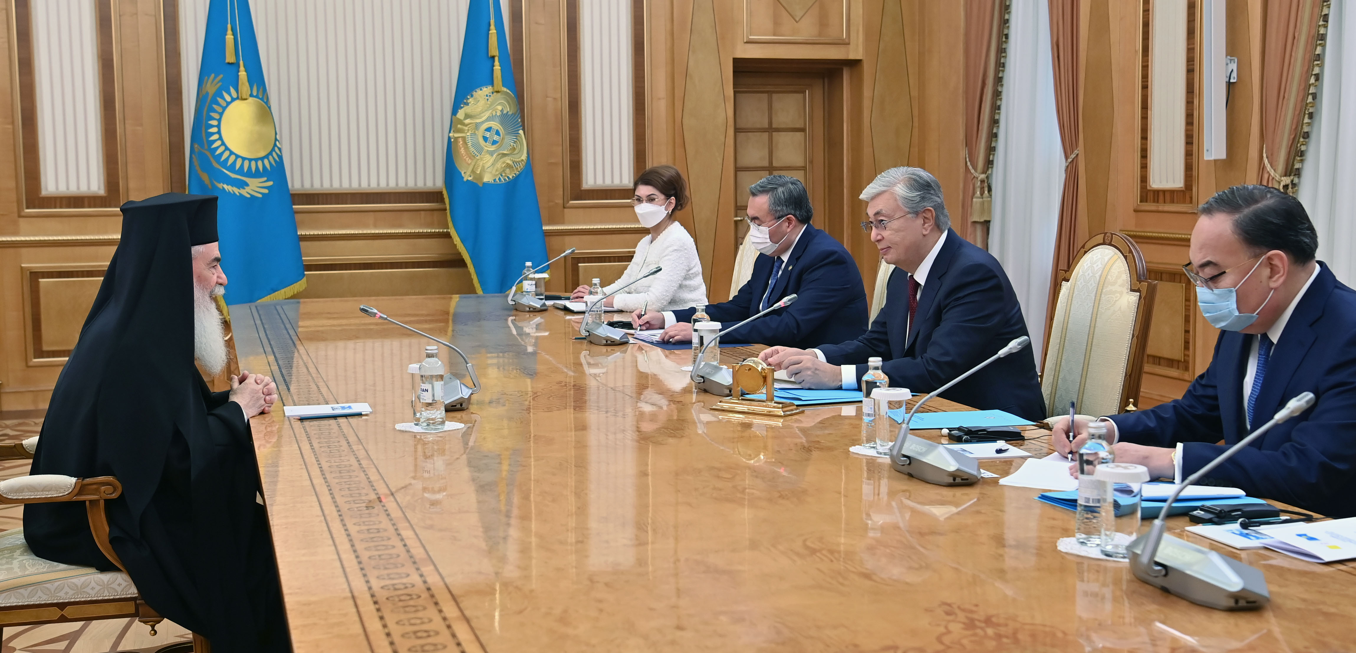 Кездесуде дінаралық және конфессияаралық диалогты ілгерілету мәселелері талқыланды. Мемлекет басшысы Патриархқа Әлемдік және дәстүрлі діндер көшбасшыларының VII съезінің жұмысына қатысқанына және осы маңызды форумның мақсат-міндеттерін ілгерілетуде көрсеткен қолдауына ризашылығын білдірді. Бұл Патриархтың Съезге үшінші рет қатысуы. Патриарх бейбітшілік, келісім және өзара құрмет сынды құндылықтарды ілгерілету үшін әлем көшбасшылары батыл шешімдер қабылдауының маңыздылығына тоқталды. Құрметті қонақ Съезд қорытындысы әлемде бейбітшілікті одан әрі нығайтудың нақты бағдарларын әзірлеуге ықпал ететініне сенім білдірді.