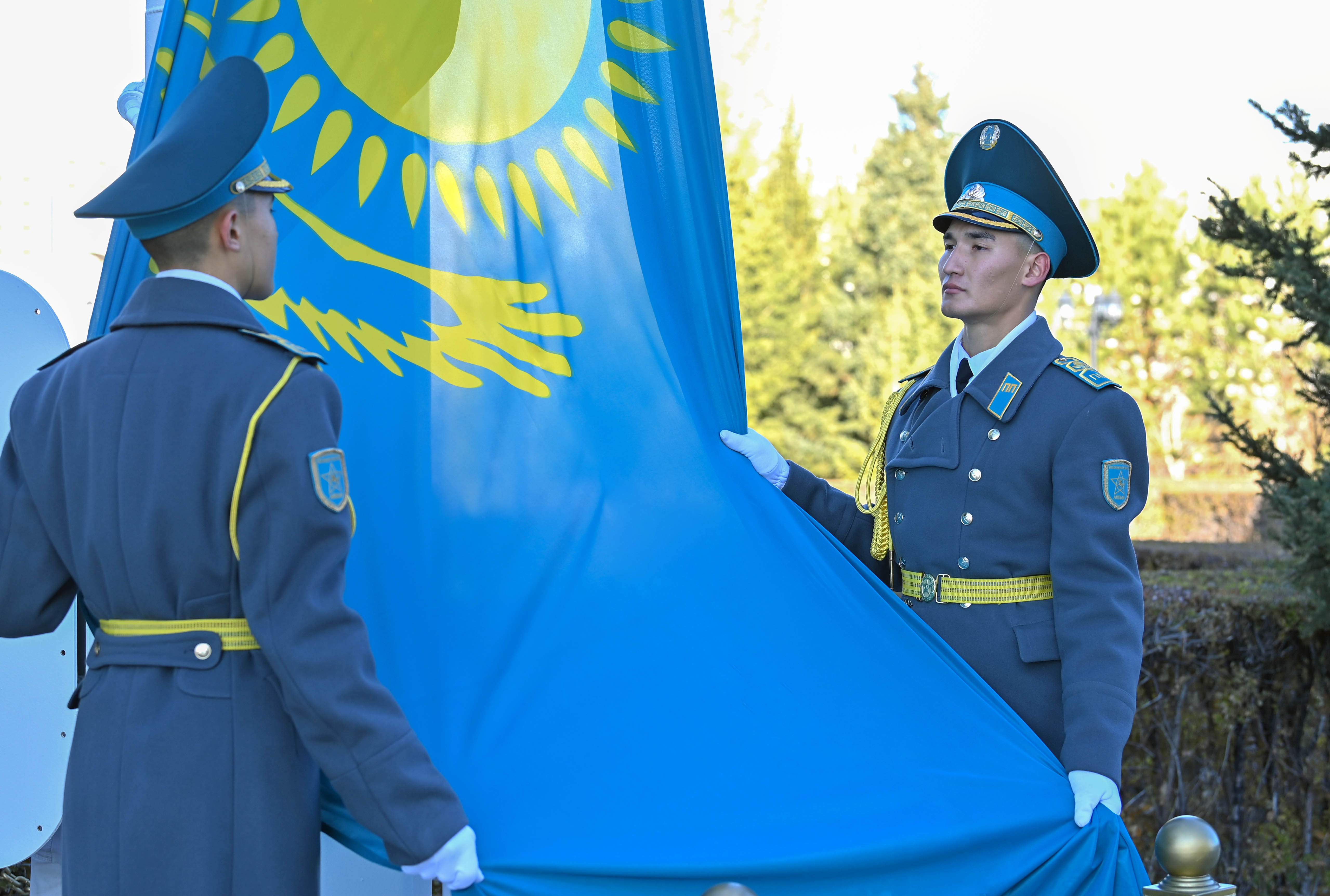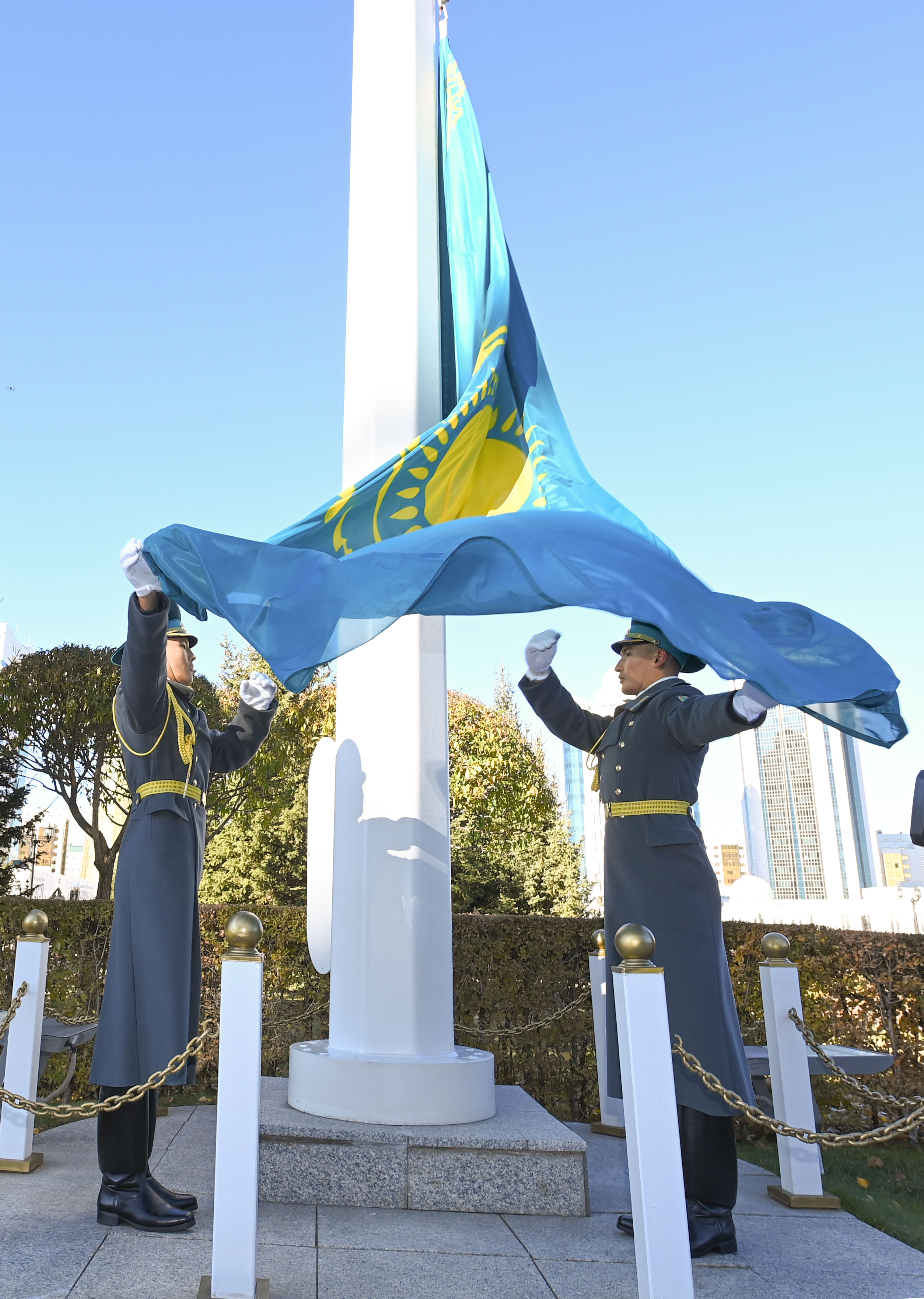 Мемлекет басшысы Қасым-Жомарт Тоқаевтың қатысуымен «Ақорда» резиденциясының алдында Республика күніне арналған Мемлекеттік ту көтеру рәсімі өтті. Рәсімде Құрмет қарауылының бастығы Мемлекет басшысына рапорт берді. Кейін Президенттің бұйрығымен еліміздің Мемлекеттік туы көтеріліп, әнұран орындалды. Биыл ұлттық мереке ретінде қайта жаңғырған Республика күнін ел көлемінде атап өту осындай салтанатты шарамен басталды. Мемлекеттік ту көтеру рәсімі өңірлерде де жалғасады.