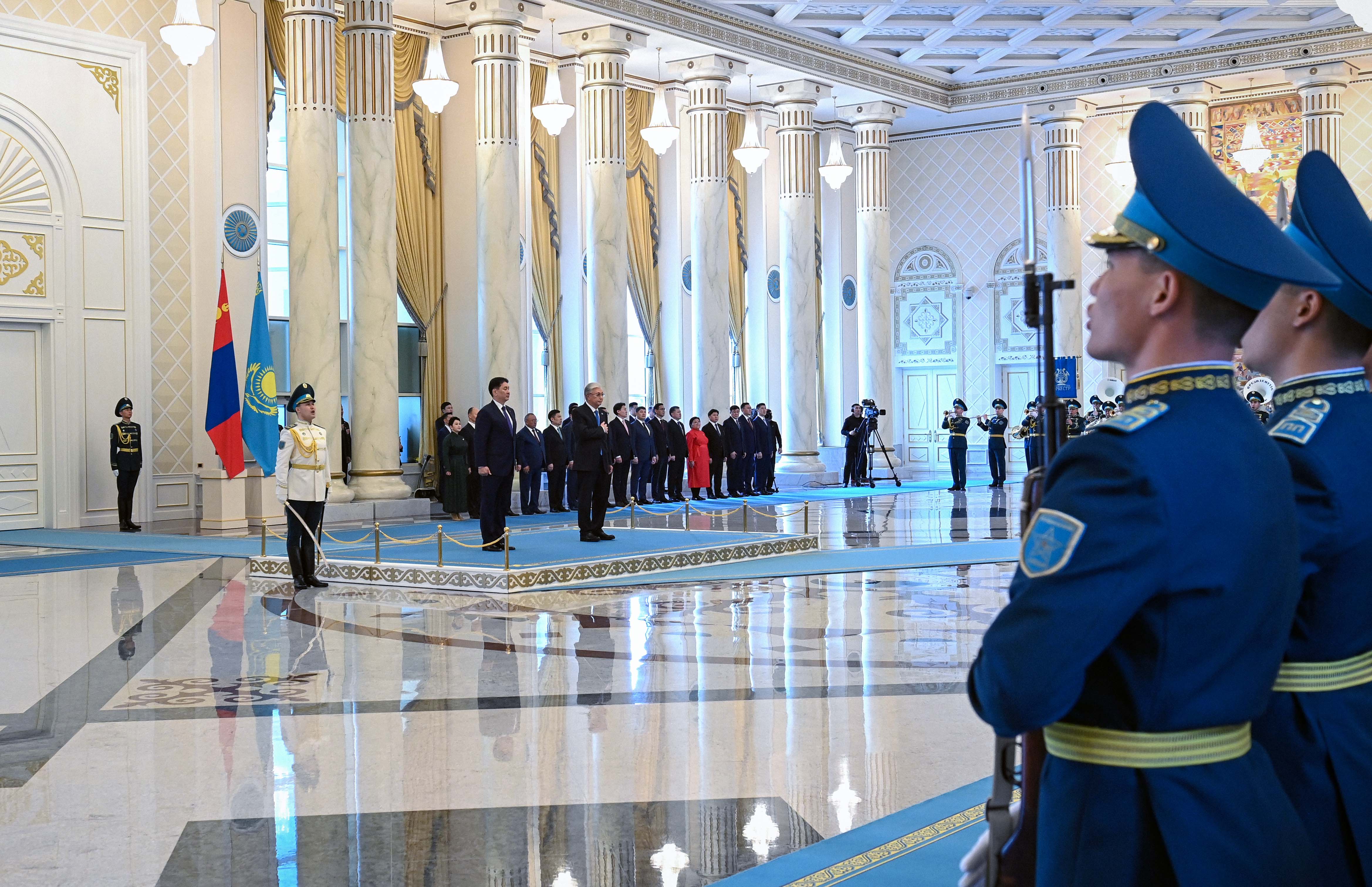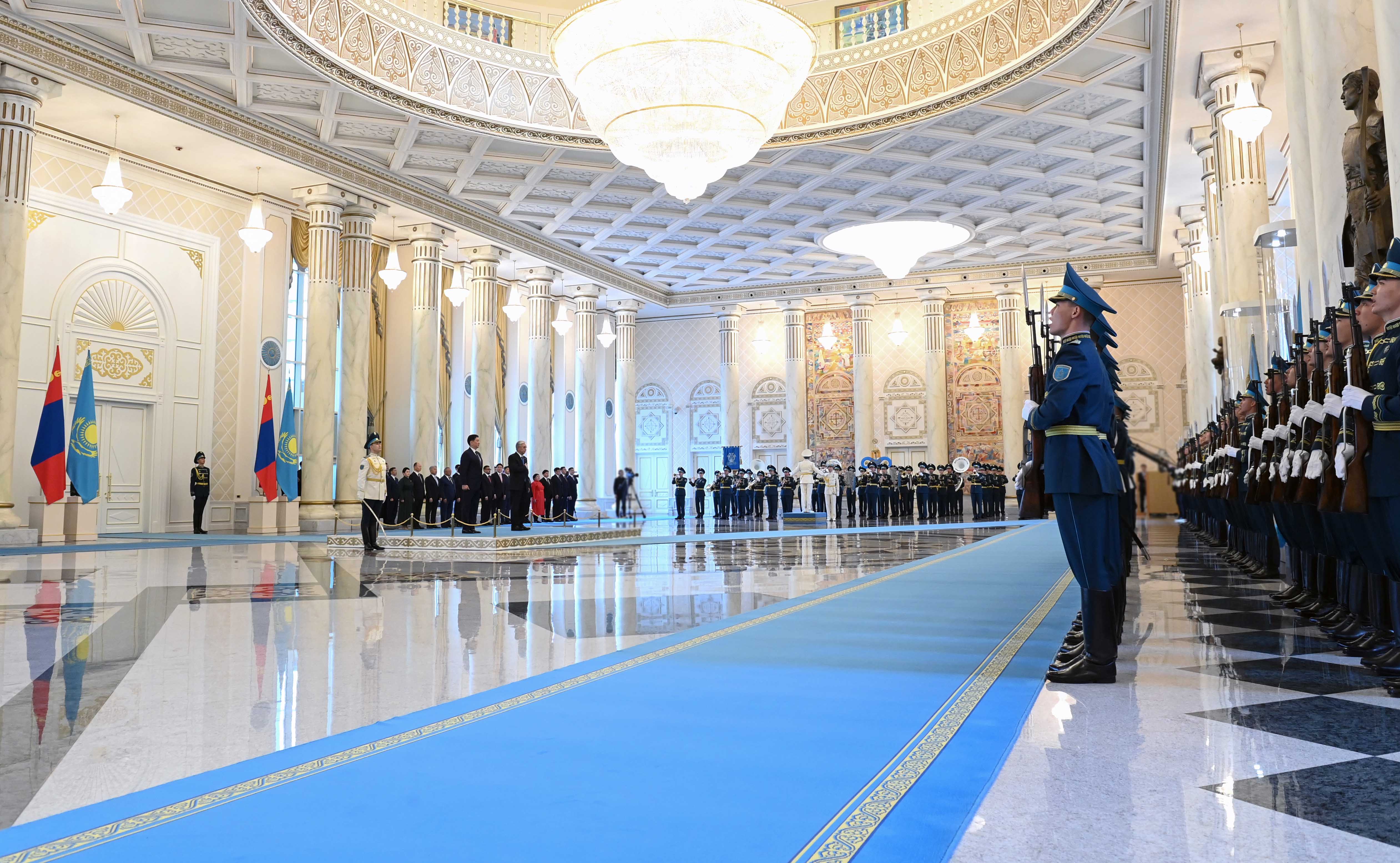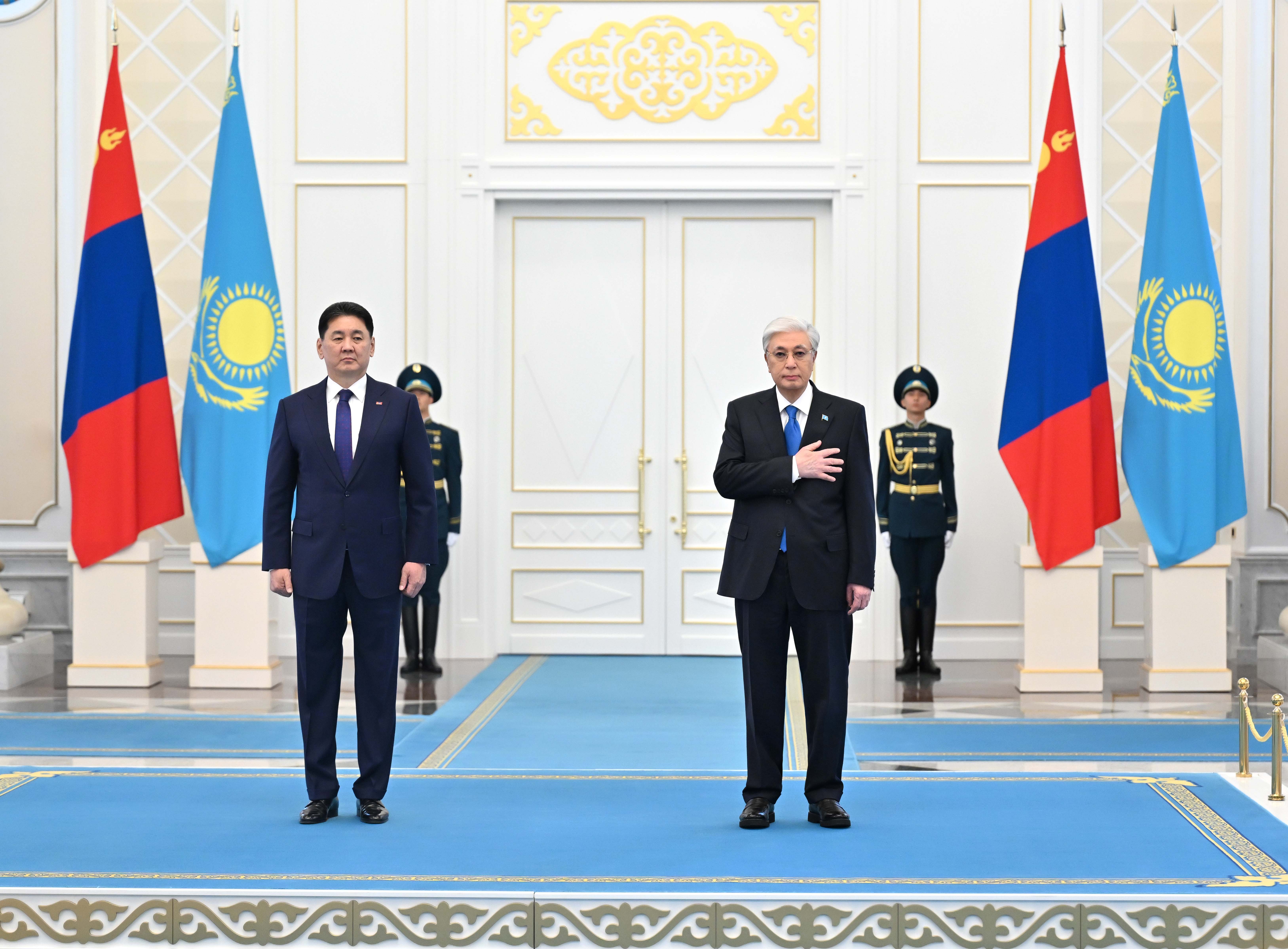 Ақордада Қазақстанға мемлекеттік сапармен келген Моңғолия Президенті Ухнаагийн Хурэлсухты салтанатты қарсы алу рәсімі өтті.