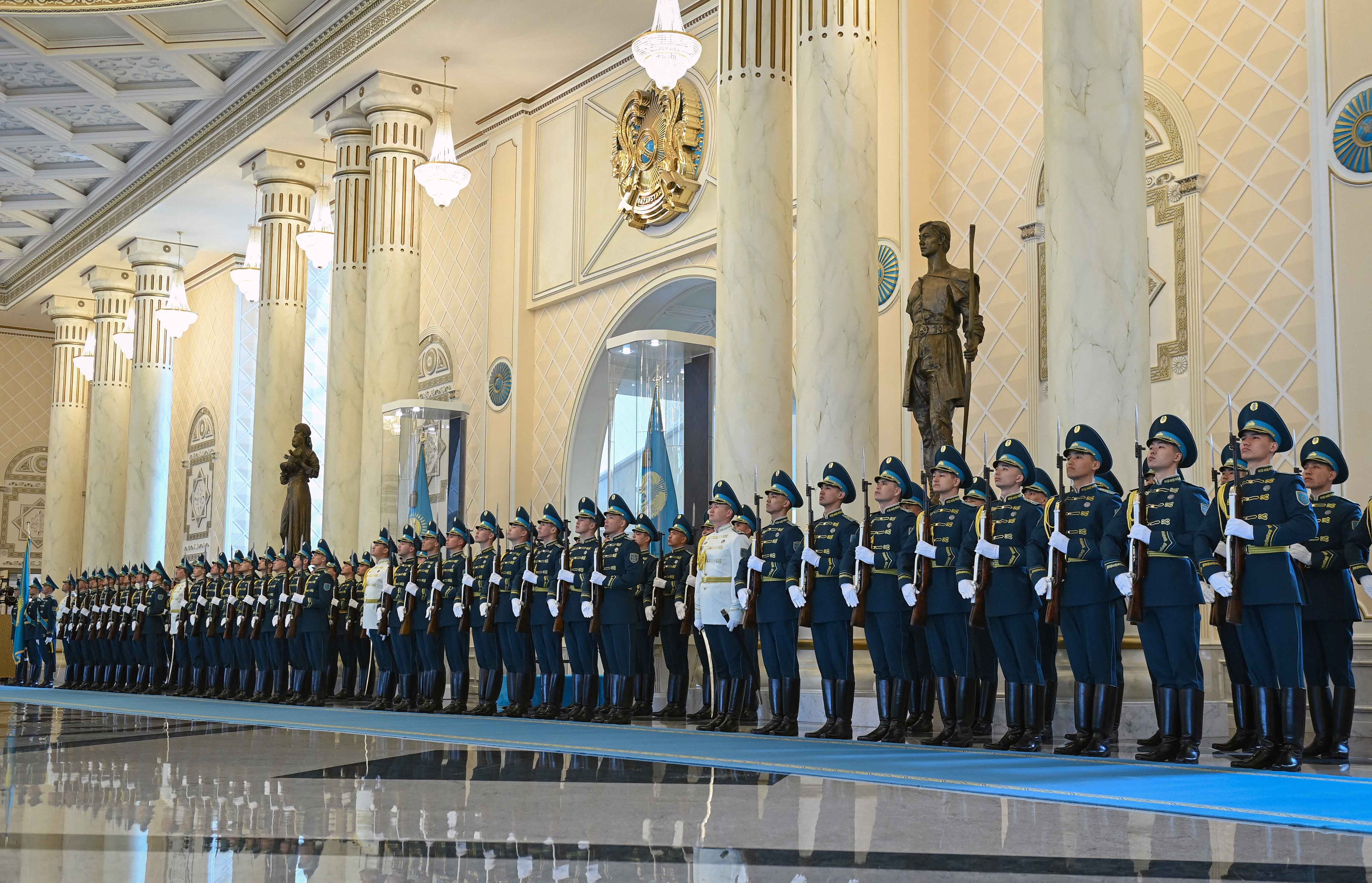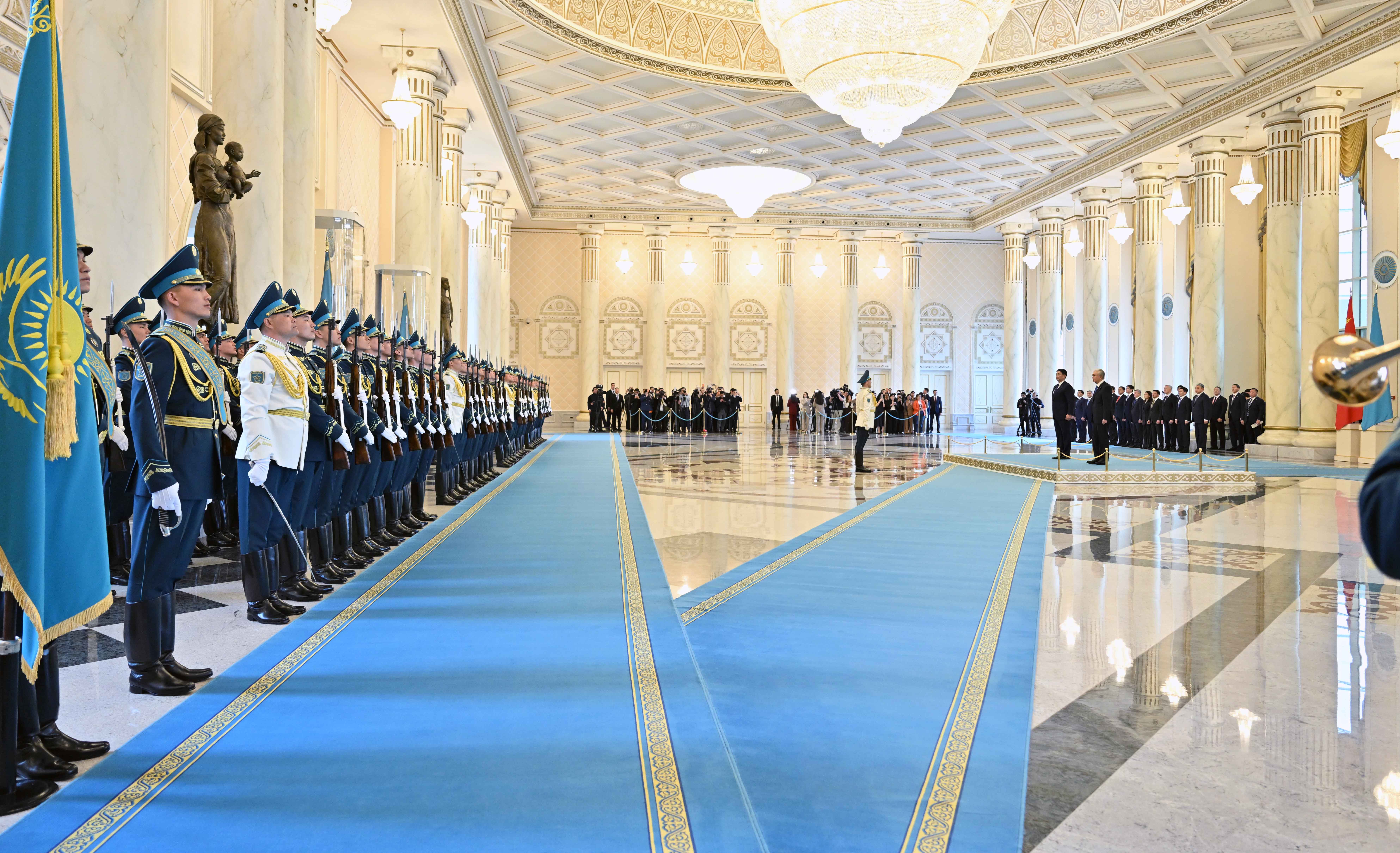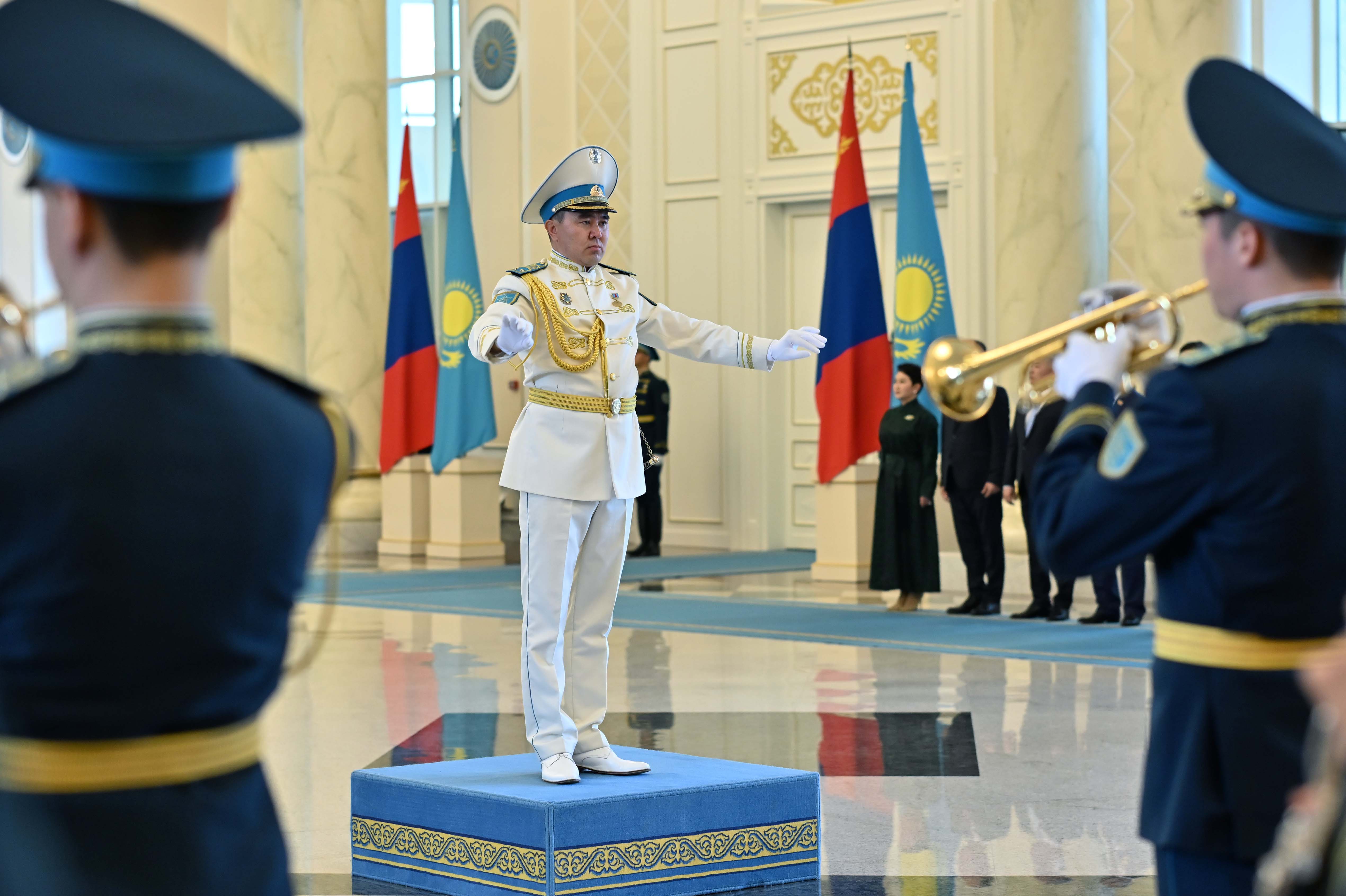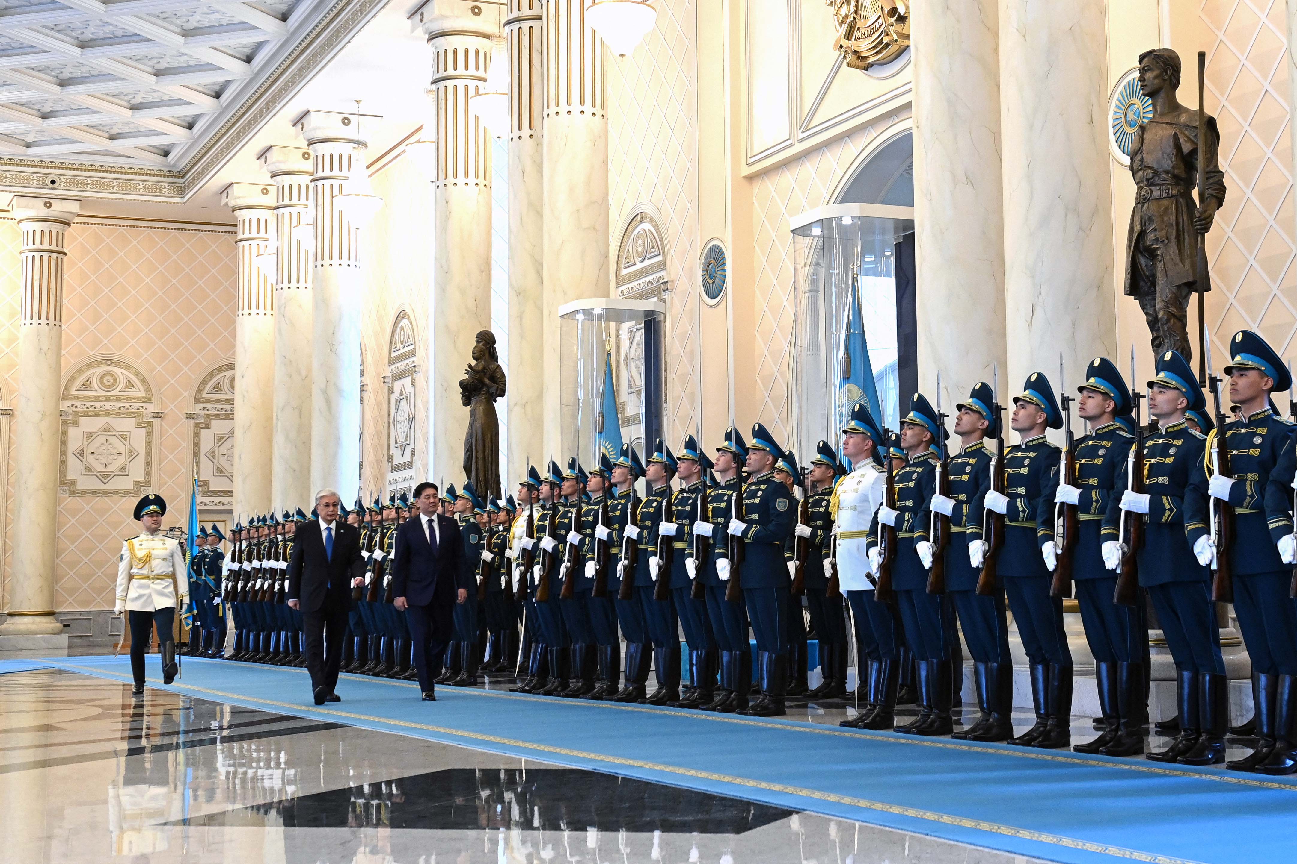 Ақордада Қазақстанға мемлекеттік сапармен келген Моңғолия Президенті Ухнаагийн Хурэлсухты салтанатты қарсы алу рәсімі өтті.