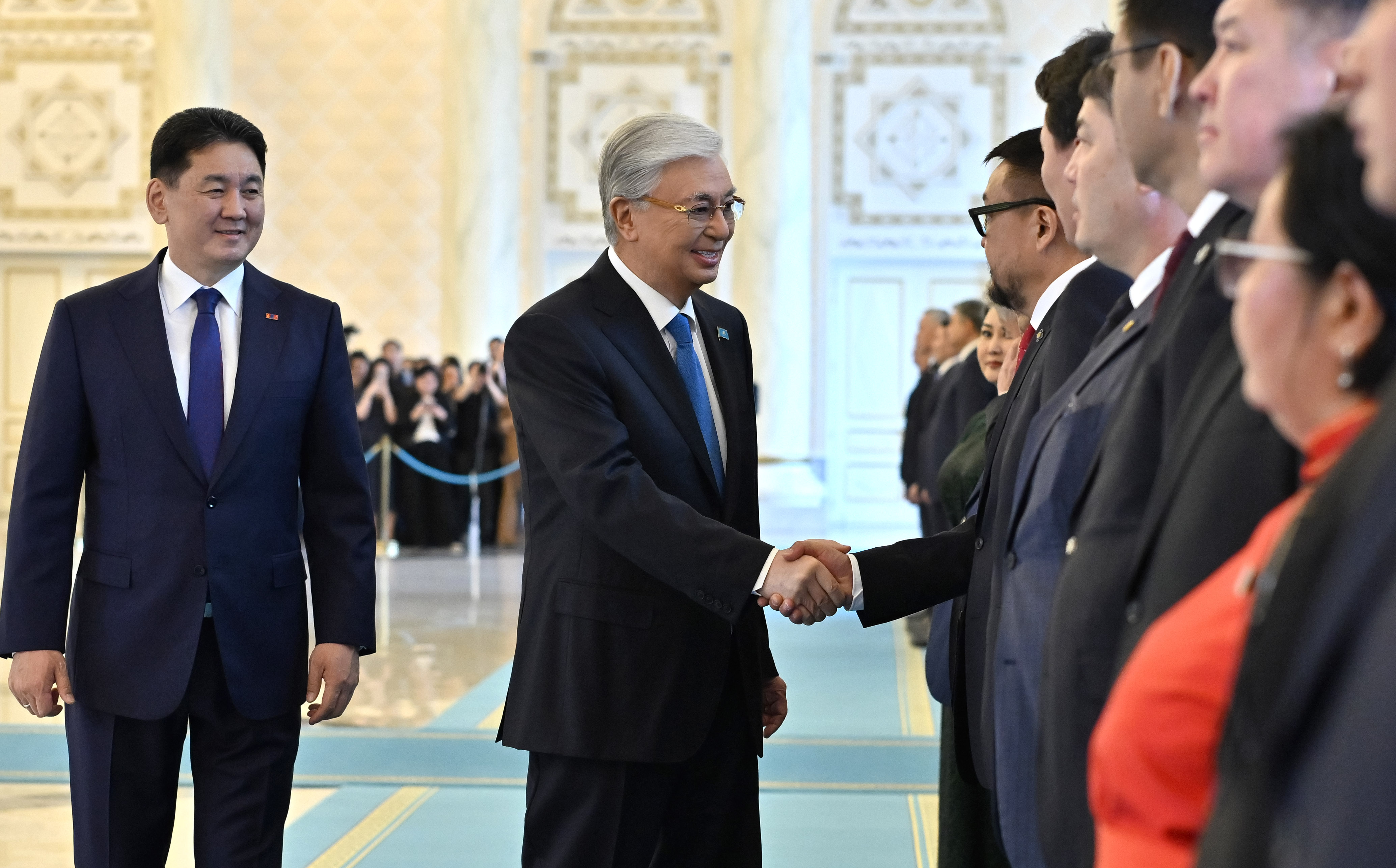 – Араға жиырма жыл салып Қазақстанға мемлекеттік сапармен келгеніме қуаныштымын. Сіздің осыдан екі жыл бұрын біздің елімізге жасаған мемлекеттік сапарыңыз моңғол-қазақ қарым-қатынастарын стратегиялық серіктестіктің жаңа деңгейіне көтерді. Бұл уақиға екіжақты байланыстар тарихына алтын әріппен жазылатыны сөзсіз. Құрметті Президент мырза, Сіздің көреген, парасатты және жоғары кәсіби басшылығыңыздың арқасында Қазақстан экономикалық және әлеуметтік салаларды дамытуда айтарлықтай табысқа жетті. Моңғол халқы еліңіздің жетістіктерін жіті бақылап отыр. 2024 жылғы Моңғолияға сапарыңыз барысында оннан астам құжатқа қол қойылды. Бүгін де бірқатар маңызды құжаттар қабылданады, – деді Ухнаагийн Хурэлсух.