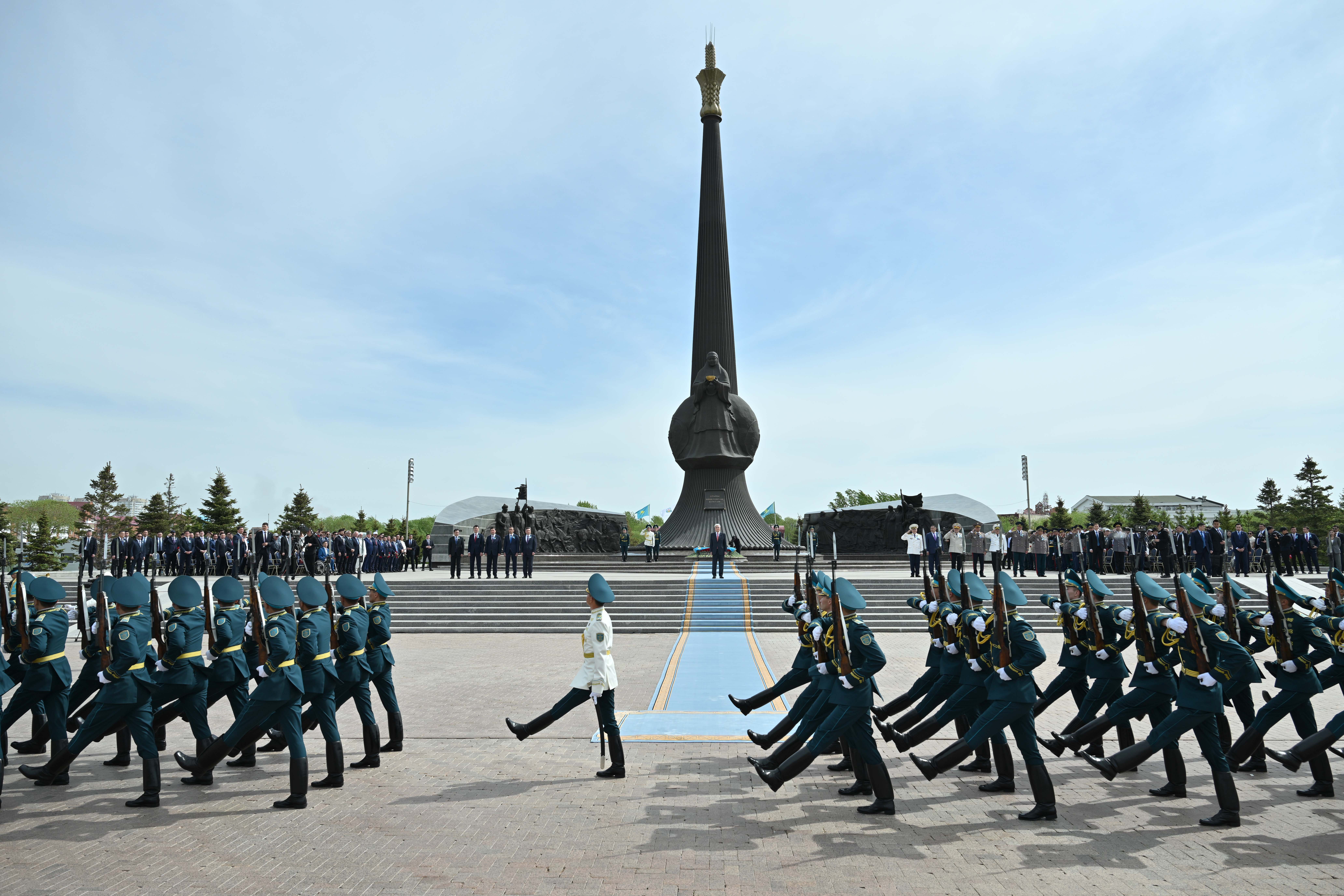 Мемлекет басшысы Ұлы Жеңістің 80 жылдығына орай елордадағы «Отан Ана» монументіне гүл шоғын қойып, қазақстандық майдангерлердің рухына тағзым етті.