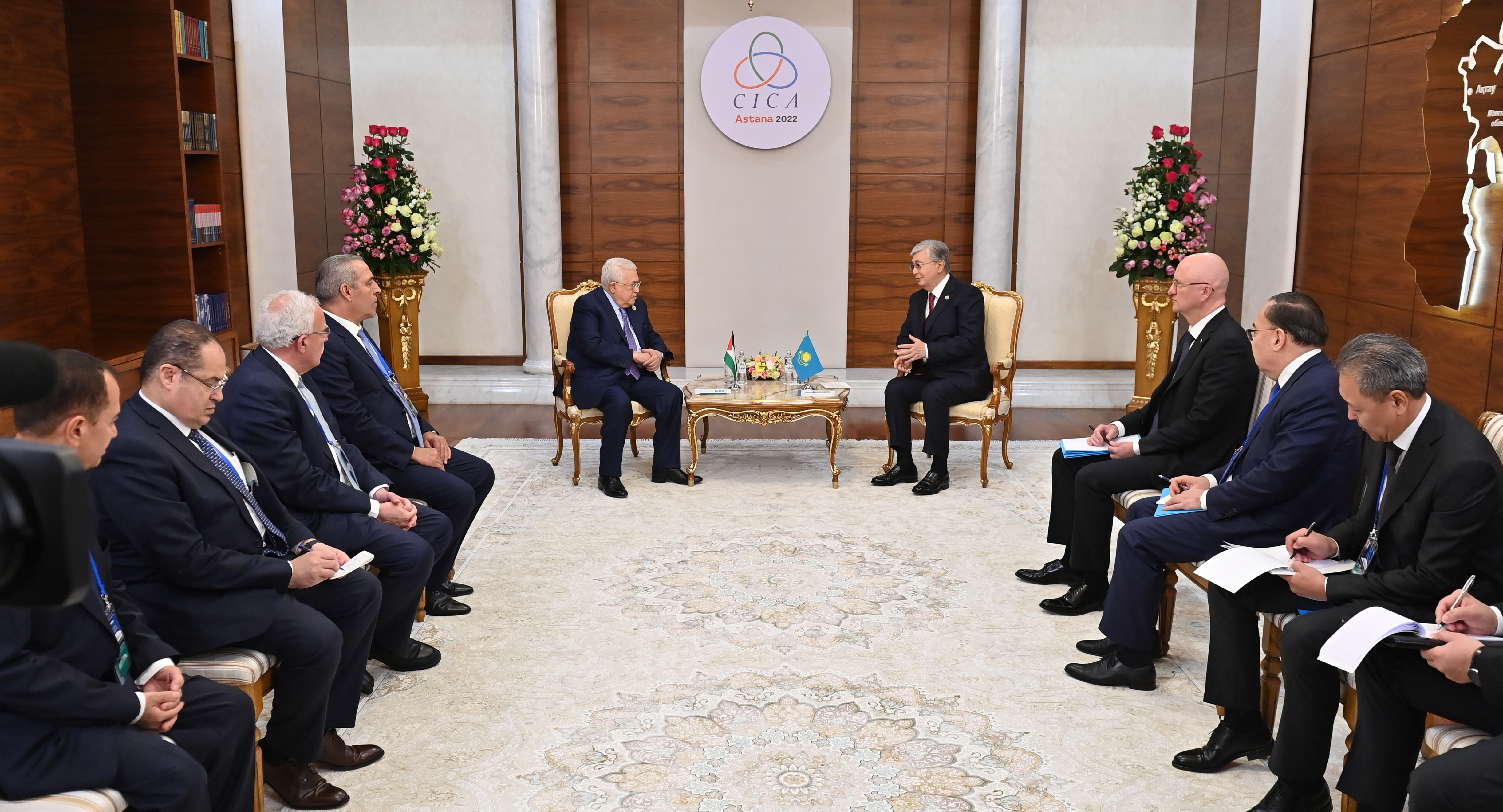 Мемлекет басшысы АӨСШК-тің VI саммиті аясында Палестина Президенті Махмуд Аббаспен кездесу өткізді. Президенттер Қазақстан мен Палестина арасындағы өзара іс-әрекетті дамыту перспективаларын қарастырып, қазіргі заманның өзекті сын-қатерлері мен үрдістері туралы пікір алмасты. Мемлекет басшысы екіжақты байланыстарды одан әрі дамытуға ниетті екенін айтты. Өз кезегінде Махмуд Аббас Қасым-Жомарт Тоқаевқа жылы қабылдағаны және саммитті жоғары деңгейде ұйымдастырғаны үшін алғыс айтты. Палестина Президенті саммитте қабылданатын шешімдер мен қол қойылатын құжаттар өзара ынтымақтастықты тереңдетуге ықпал ететініне сенім білдірді.