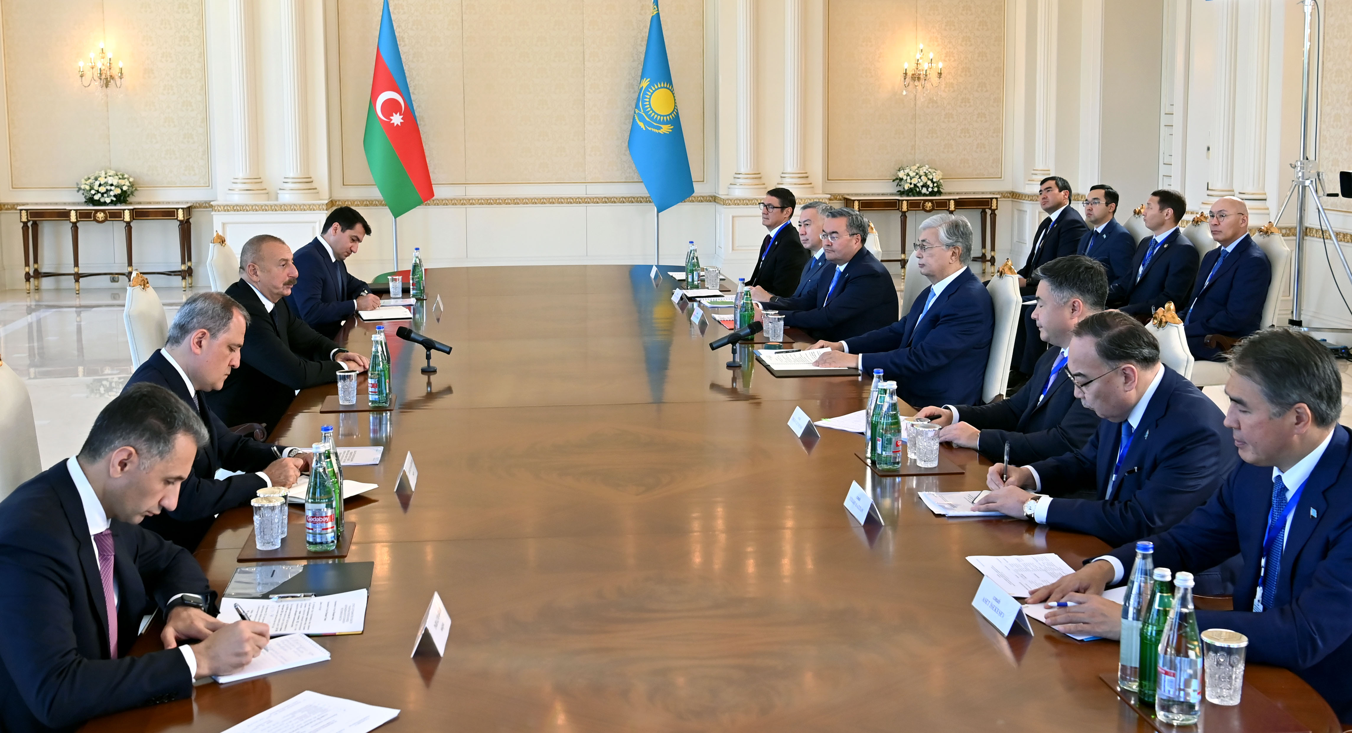 Қасым-Жомарт Тоқаев пен Ильхам Әлиев қазақ-әзербайжан стратегиялық серіктестігінің негізгі мәселелерін талқылап, саяси, сауда-экономикалық, көлік-транзиттік және мәдени-гуманитарлық ынтымақтастықты нығайтуға ерекше назар аударды.
