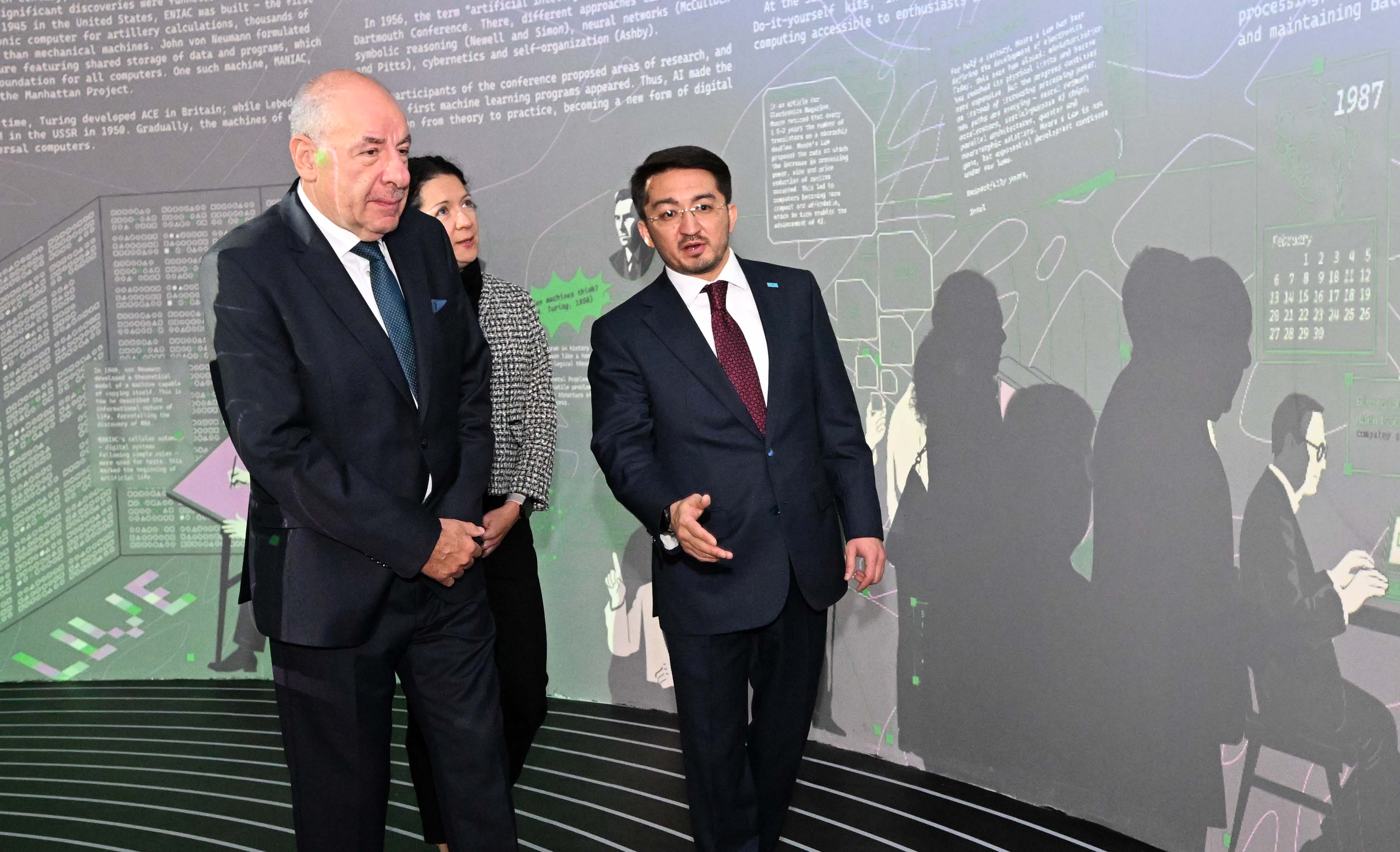 Қасым-Жомарт Тоқаев пен Тамаш Шуйок Alem.AI халықаралық жасанды интеллект орталығына барды. Инновациялық кеңістік еліміздегі заманауи технологияларды дамытуға, дарынды жастарды қолдауға, AI және ІТ сектордағы перспективті жобаларды ілгерілетуге арналған. Бұл экономикадағы цифрлық саланы жаңа деңгейге көтереді. Alem.AI Қазақстанның ғана емес, басқа да елдердің мамандарын шоғырландыратын орталық болмақ. Бірегей жоба ғылым, өнеркәсіп, креативті индустрия мен мемлекеттік қызмет көрсету секілді салалардағы технологияны дамытуды көздейді. Орталық ұлттық ЖИ экожүйесін құруға, инвестиция тартуға, стартаптар мен зерттеу қызметтерін ынталандыруға септігін тигізеді. Сондай-ақ отандық ЖИ шешімдердің экспортын 2029 жылға қарай 5 миллиард долларға дейін ұлғайтуға мүмкіндік береді. Жасанды интеллектіні дамыту жаңа технологияның пайда болуына және экономикалық өсімге ықпал етіп, Астананы Орталық Азиядағы ЖИ бойынша жетекші қалаға айналдырады. Жоба аясында жылына түрлі салада көзге түскен 10 мың дарынды жасты қолдау, 1 мыңға жуық маманды оқыту, 100-ге тарта стартапты іске қосу, 10 шақты ғылыми зерттеуді жүзеге асыру жоспарланған.