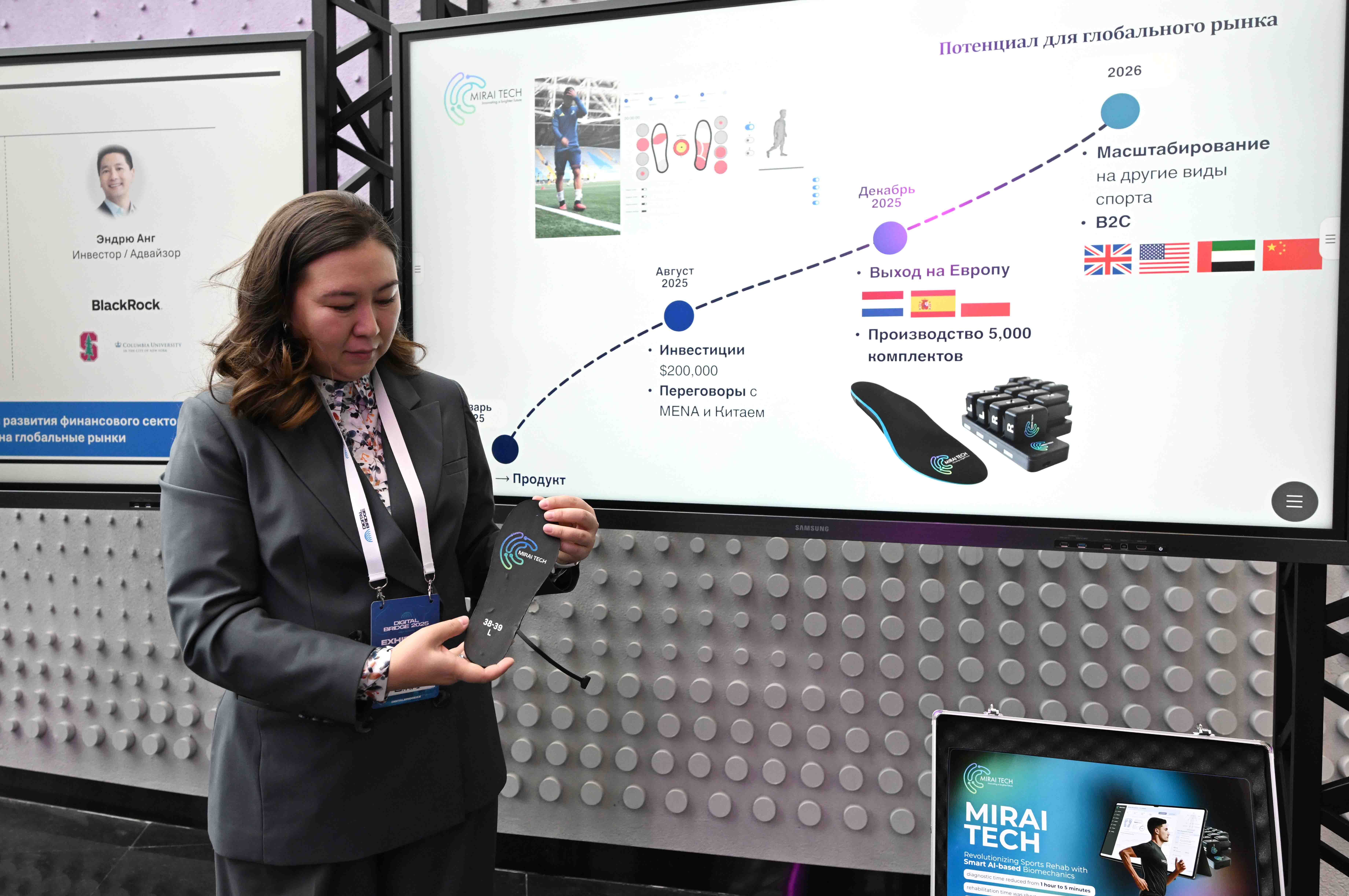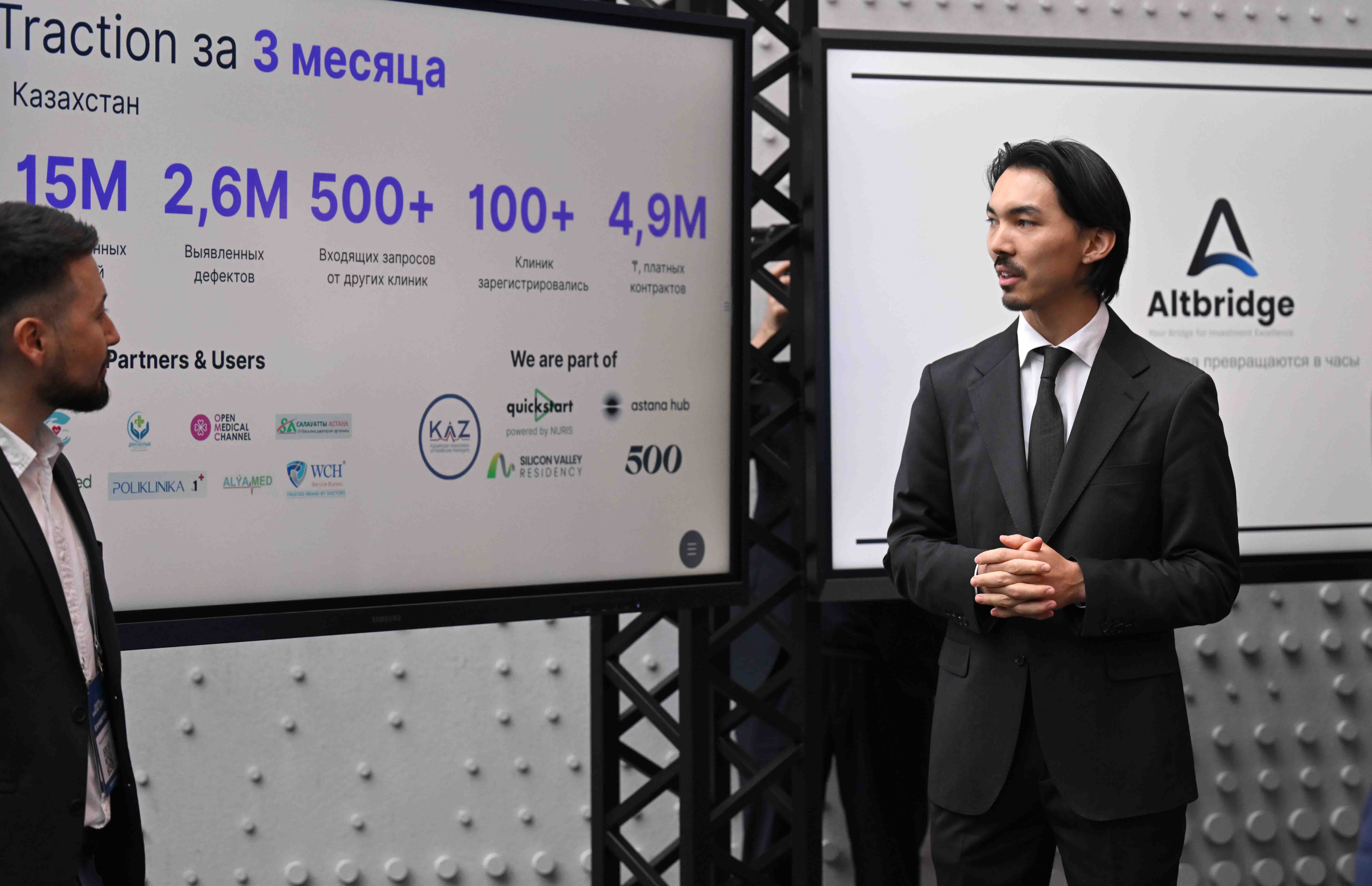 Президентке отандық AI жобалар таныстырылды. Mirai Tech мекемесі жасаған Deep-tech стартапында биомеханиканың портативті ЖИ зертханасы көрсетілді. Ақылды сенсорлы табандар мен киілетін есептеуіш құралдар спортшылар мен емделушілерді оңалтуды жеделдетеді әрі жарақаттың алдын алуға көмектеседі. AltBridge жария нарықтағы инвестициялық портфельге мониторинг жасайды және әр бағыт бойынша есеп береді. Defect AI дәрігерлерге күнделікті қағазбастылықтан арылып, науқасқа көңіл бөлуге жәрдемдеседі.