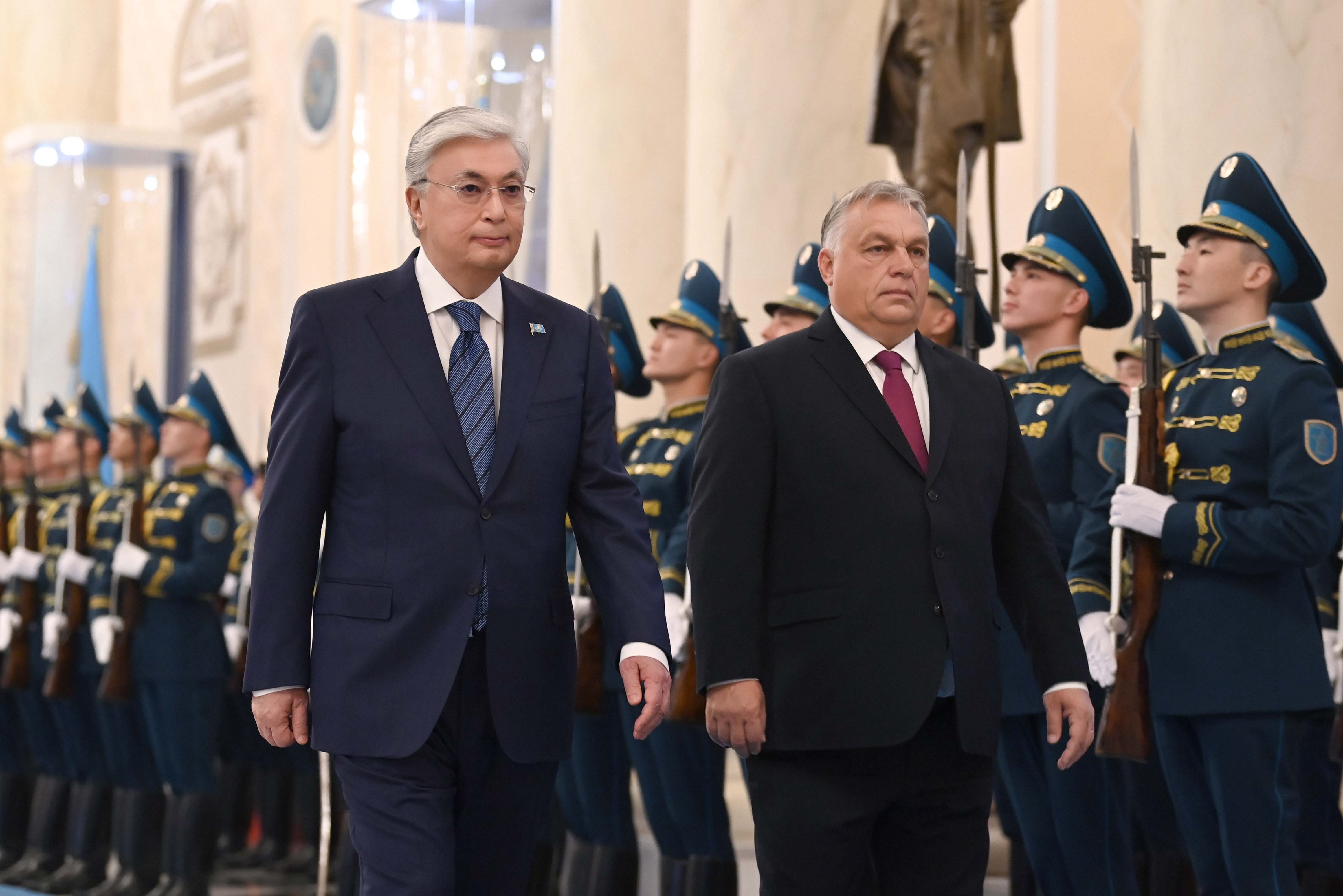 Келіссөз алдында «Ақорда» резиденциясында салтанатты түрде қарсы алу рәсімі өтті. Құрмет қарауылының бастығы Қазақстан Президенті мен Мажарстан Премьер-министріне рапорт берді. Екі елдің мемлекеттік әнұрандары орындалғаннан кейін Қасым-Жомарт Тоқаев пен Виктор Орбан шағын құрамда кездесу өтетін залға барды.