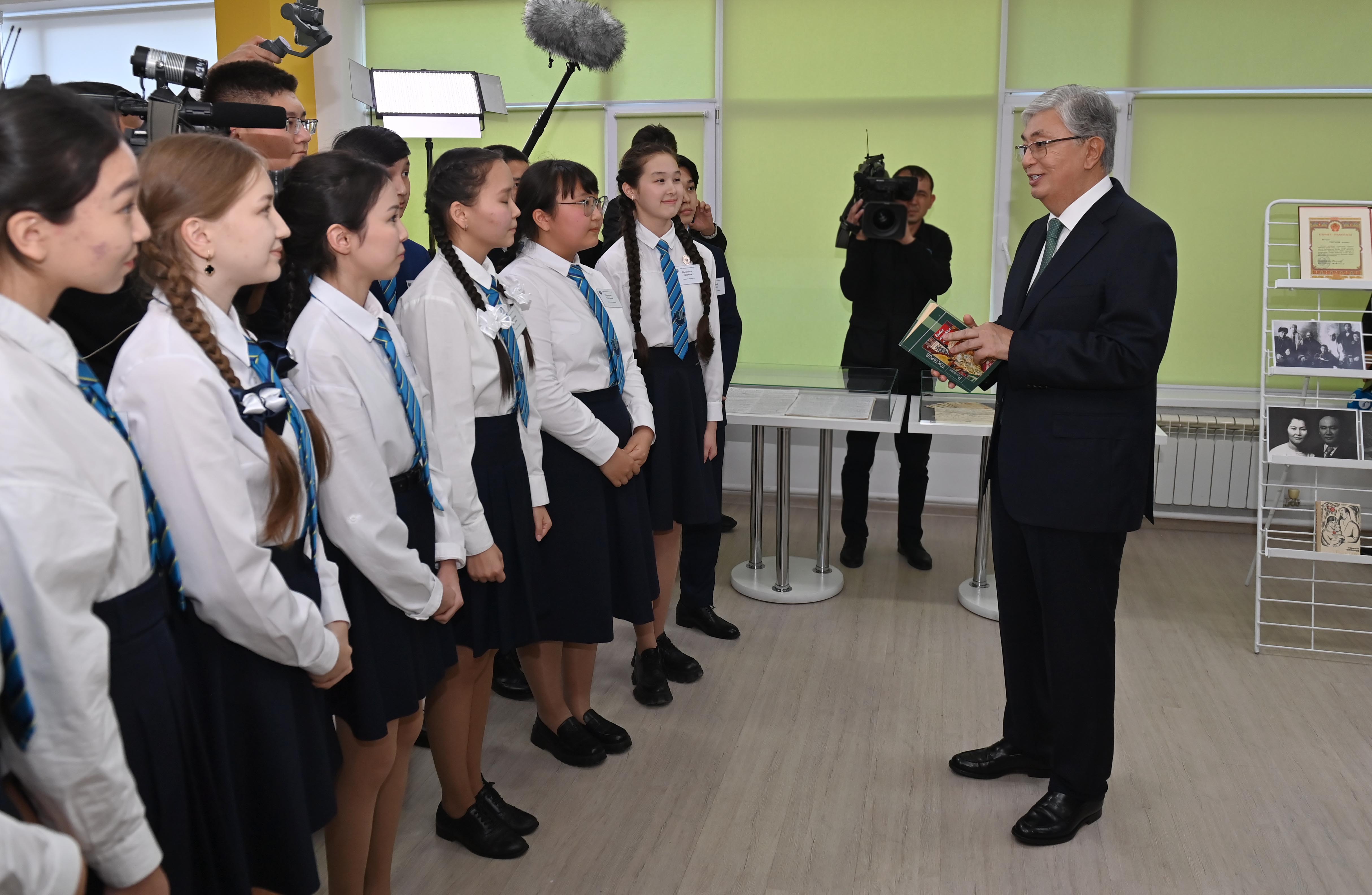 Президент Павлодар облысына жұмыс сапары аясында 85 жыл бұрын іргесі қаланған Абай атындағы дарынды балаларға арналған гимназияға барды.