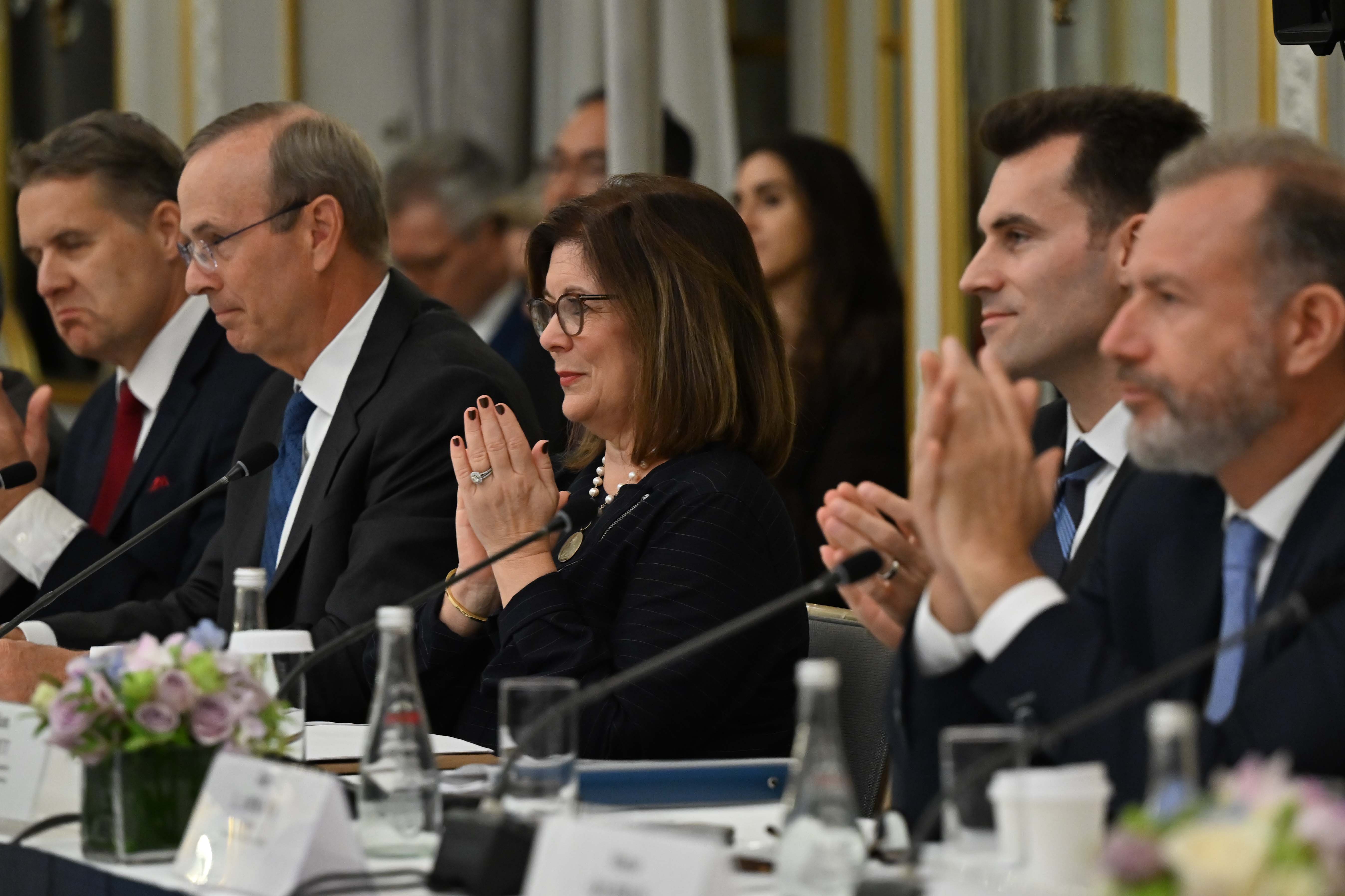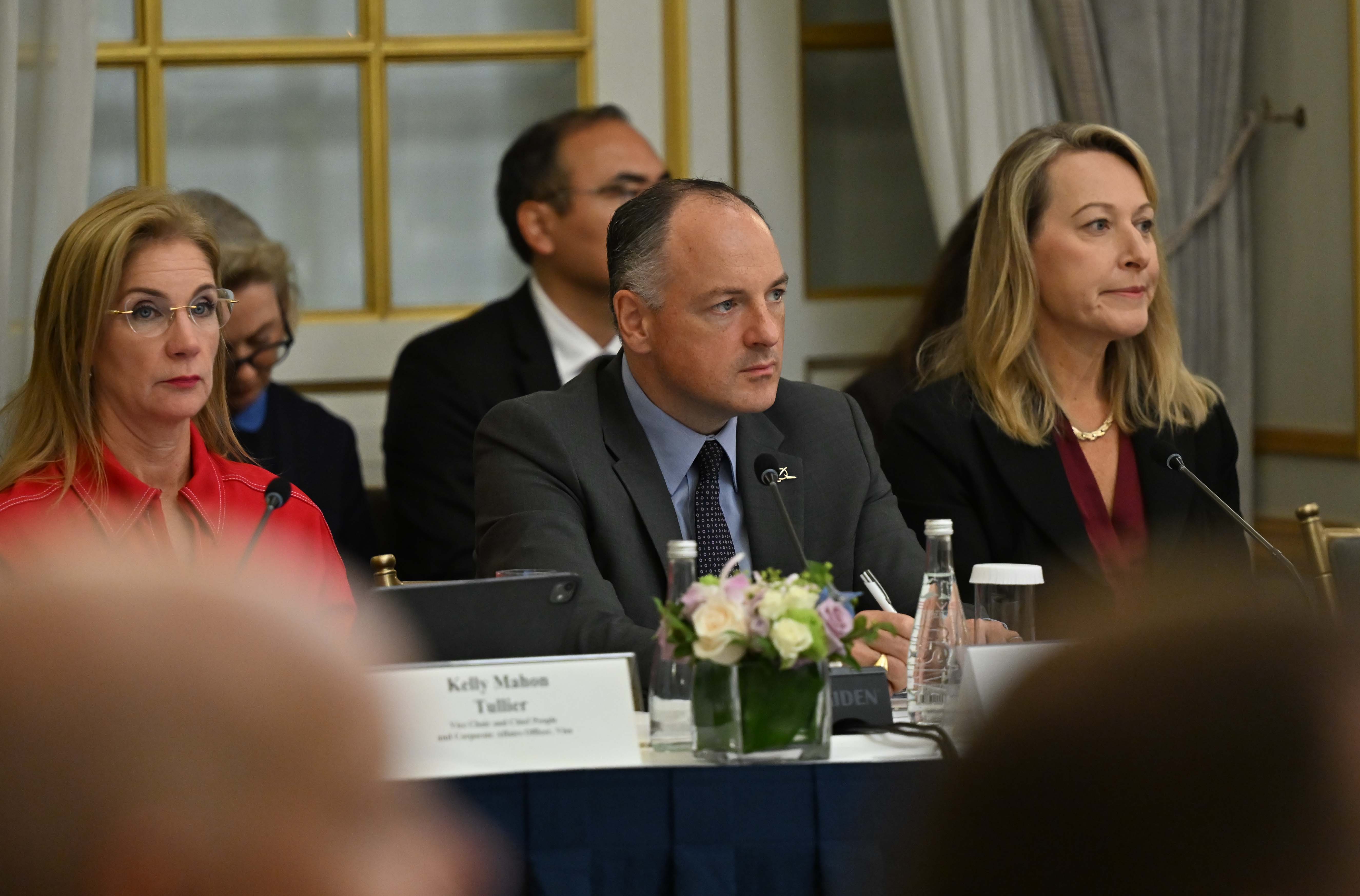Отырыста АҚШ Сауда палатасының президенті Сюзанн Кларк, Chevron компаниясы директорлар кеңесінің төрағасы Майкл Уирт, АҚШ Сауда министрінің орынбасары Уильям Киммит, АҚШ Мемлекеттік хатшысының экономикалық өсім, энергетика және қоршаған орта мәселелері жөніндегі орынбасарының міндетін атқарушы Томас Лерстен, NVIDIA компаниясының жасанды интеллект саласындағы жаһандық бастамалар бойынша вице-президенті Калиста Рэдмонд, Boston Consulting Group компаниясының директорлар кеңесінің жаһандық төрағасы Ричард Лессер, S&P Global компаниясының тәуелсіз рейтингтер және көпжақты қаржы институттары рейтингтері жөніндегі жаһандық бағытының басшысы, басқарушы директоры Роберто Сифон-Аревало, ExxonMobil Upstream Company президенті Дэн Амман, LanzaJet компаниясының бас атқарушы директоры Джимми Самарцис, The Boeing компаниясының вице-президенті Лэндон Лумис, Ashmore Group компаниясының бас атқарушы директоры Марк Кумбс, Visa компаниясы төрағасының орынбасары әрі персонал және корпоративтік мәселелер жөніндегі бас директоры Келли Тулье, Ivanhoe Mines Ltd. негізін қалаушы әрі директорлар кеңесінің атқарушы теңтөрағасы Роберт Фридланд, Колорад тау-кен ісі мектебінің президенті Пол Джонсон, GTM, OpenAI білім беру және мемлекеттік бағдарламалар бағыты бойынша жетекшісі Кевин Миллс, Mastercard компаниясының бас әкімшілік директоры Ричард Верма, Shell USA компаниясының президенті Колетт Хёрстиус, Honeywell Process Automation компаниясының президенті және атқарушы директоры Джеймс Массо, Amazon Kuiper компаниясының жаһандық тұтыну бағытының жетекшісі Лиза Скалпоне сөз сөйледі.