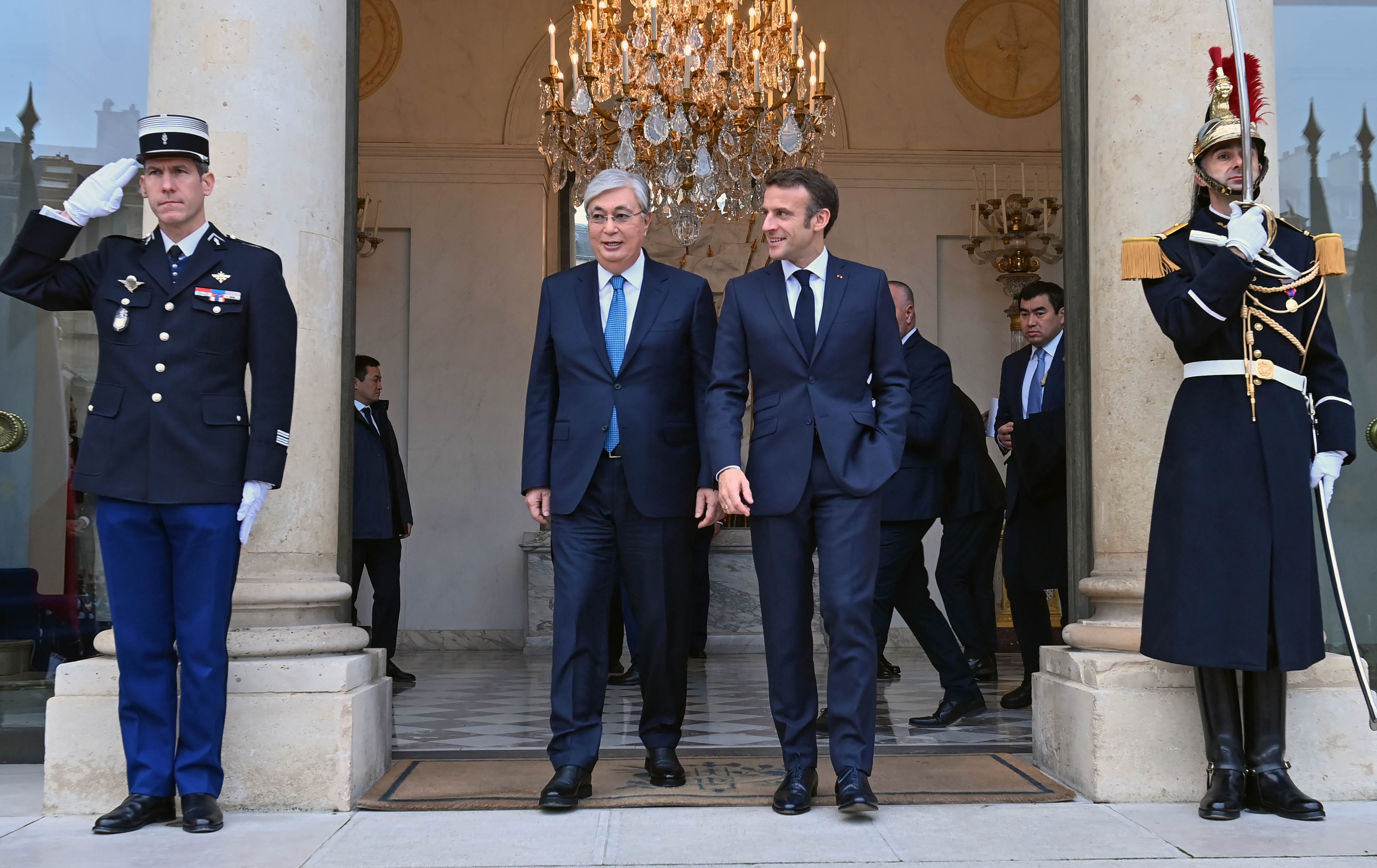 Парижге ресми сапармен келген Мемлекет басшысы Қасым-Жомарт Тоқаев Франция Президенті Эмманюэль Макронмен кеңейтілген құрамда келіссөз жүргізді.