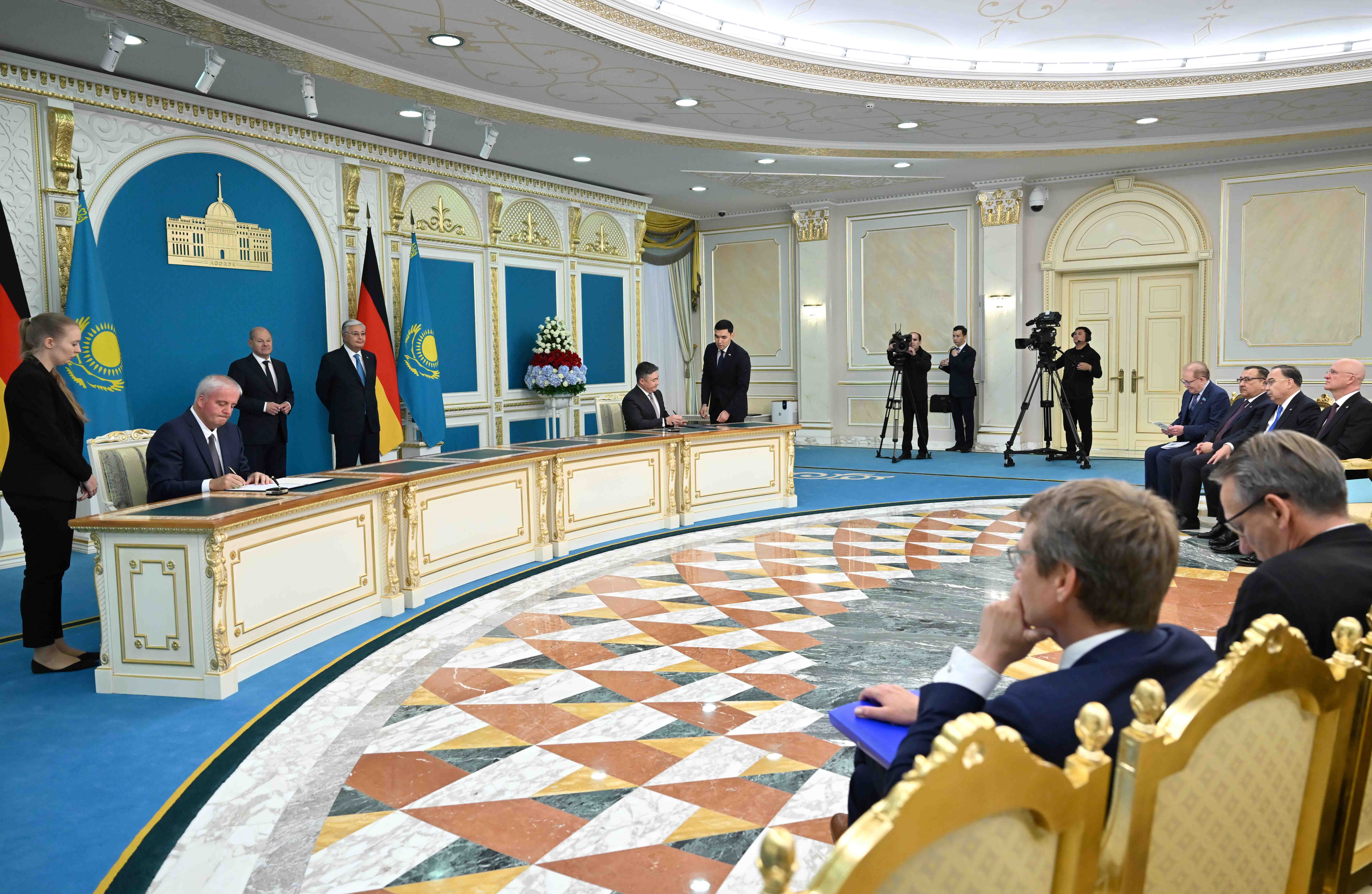Келіссөздер қорытындысы бойынша Президент Қасым-Жомарт Тоқаев пен Федералдық канцлер Олаф Шольц Қазақстан Республикасы мен Германия Федеративтік Республикасы арасындағы ынтымақтастық туралы Бірлескен декларация қабылдады.