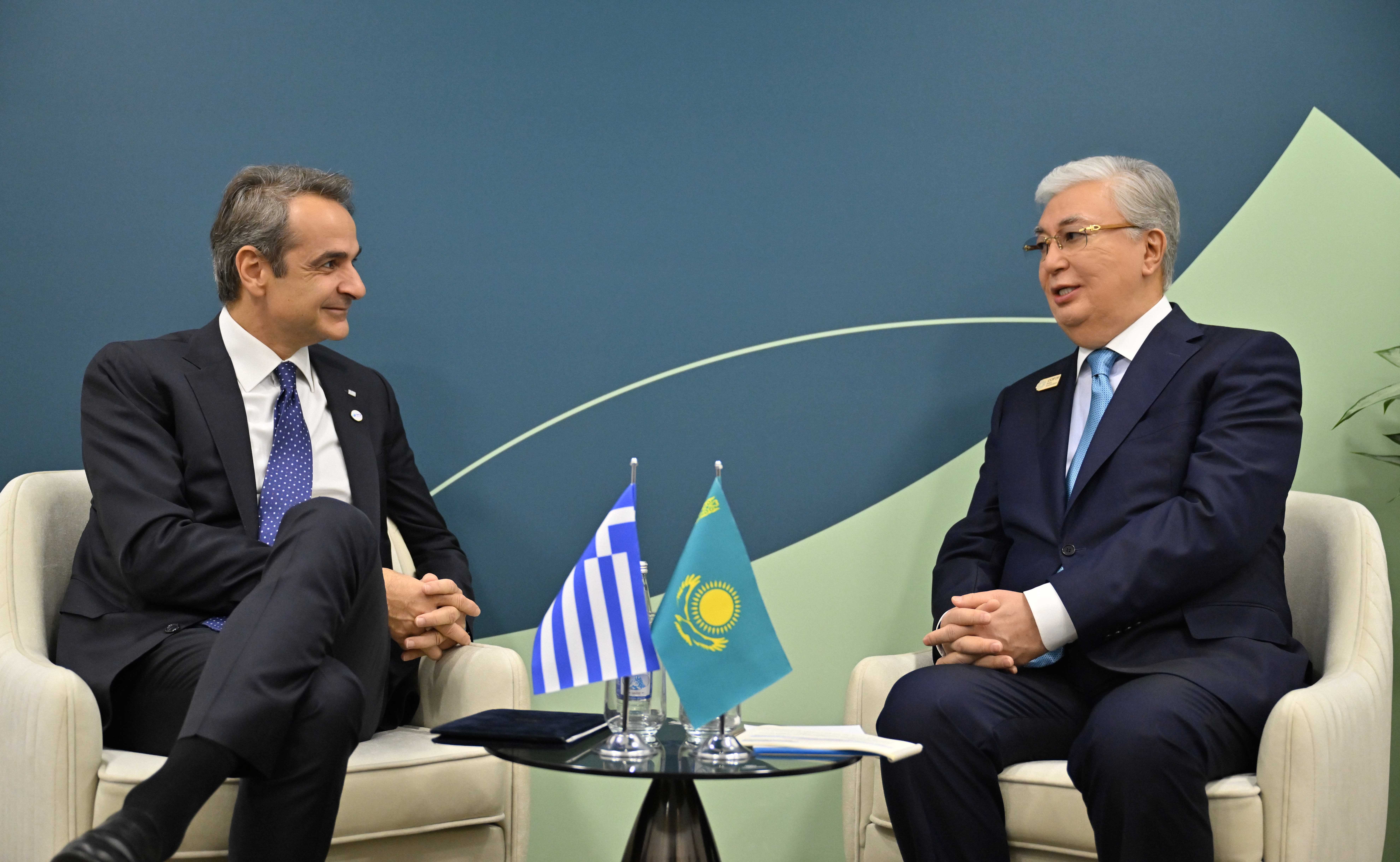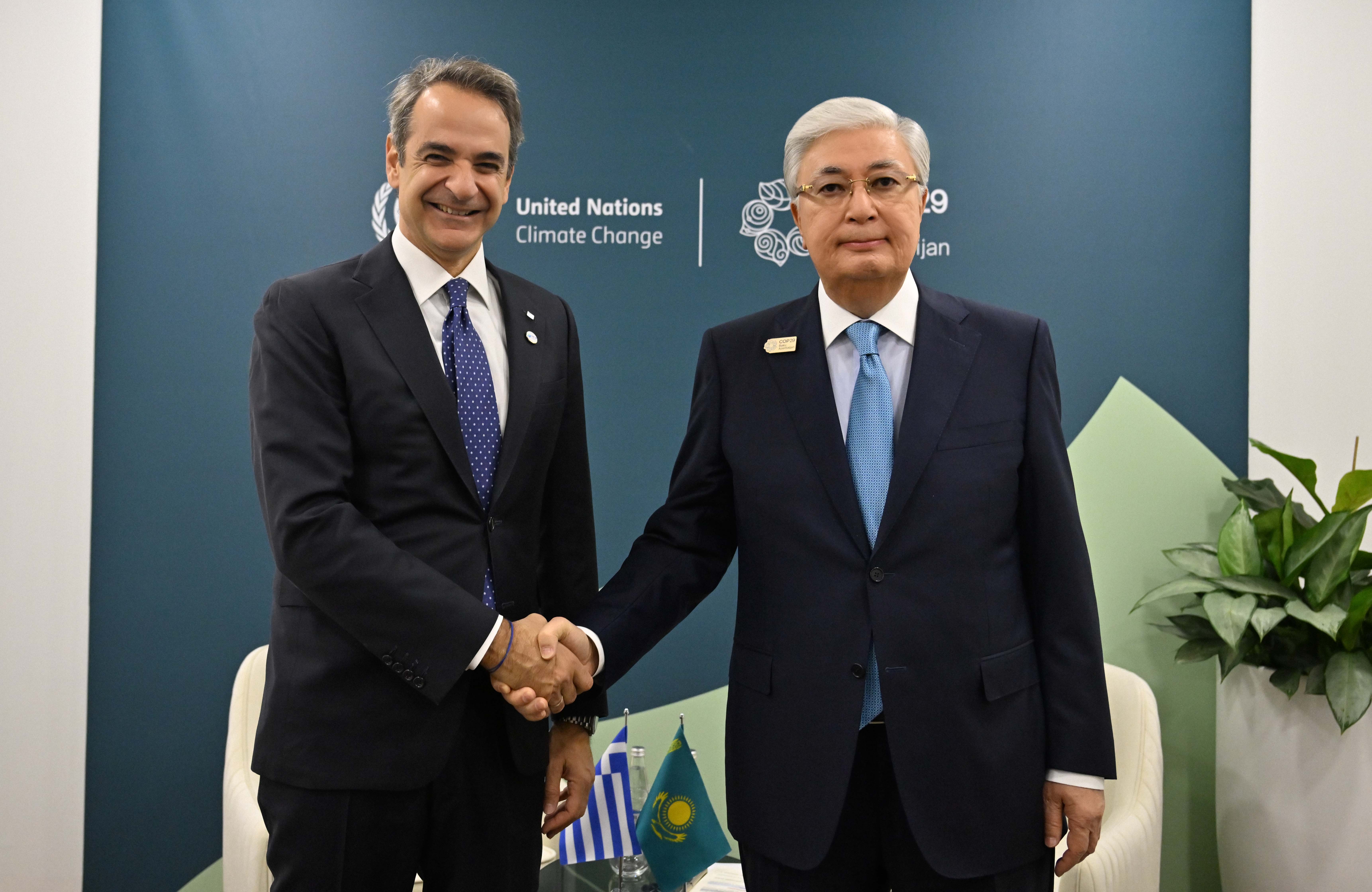 Әзербайжан, Баку қаласы Президент Қасым-Жомарт Тоқаев БҰҰ Климаттың өзгеруі туралы негіздемелік конвенциясына қосылушы тараптардың 29-шы конференциясы (СOP29) аясында Грекия Премьер-министрі Кириакос Мицотакиспен кездесу өткізді. Мемлекет басшысы Грекияны Қазақстанның Жерорта теңізі аймағы және Еуропа Одағындағы сенімді серіктесі ретінде атап өтіп, Афины еліміздің Еуропа Одағына мүше мемлекеттер арасындағы бес ірі сауда әріптесінің бірі екеніне назар аударды. Өз кезегінде Кириакос Мицотакис қазақ-грек ынтымақтастығының әлеуетін жоғары бағалап, барлық бағыттағы өзара байланыстарды тереңдетуге дайындығын жеткізді. Қасым-Жомарт Тоқаев пен Кириакос Мицотакис сауда-экономикалық, инвестициялық және мәдени-гуманитарлық қарым-қатынасты нығайтуға бейіл екенін растап, өзара сауда-саттықты әртараптандырудың маңыздылығына тоқталды. Кездесуде белсенді саяси диалог жүргізу жөнінде уағдаластық жасалды. Грекия Үкіметінің басшысы Президент Қасым-Жомарт Тоқаевтың Қазақстанға сапармен келу туралы ұсынысын ризашылықпен қабыл алды.