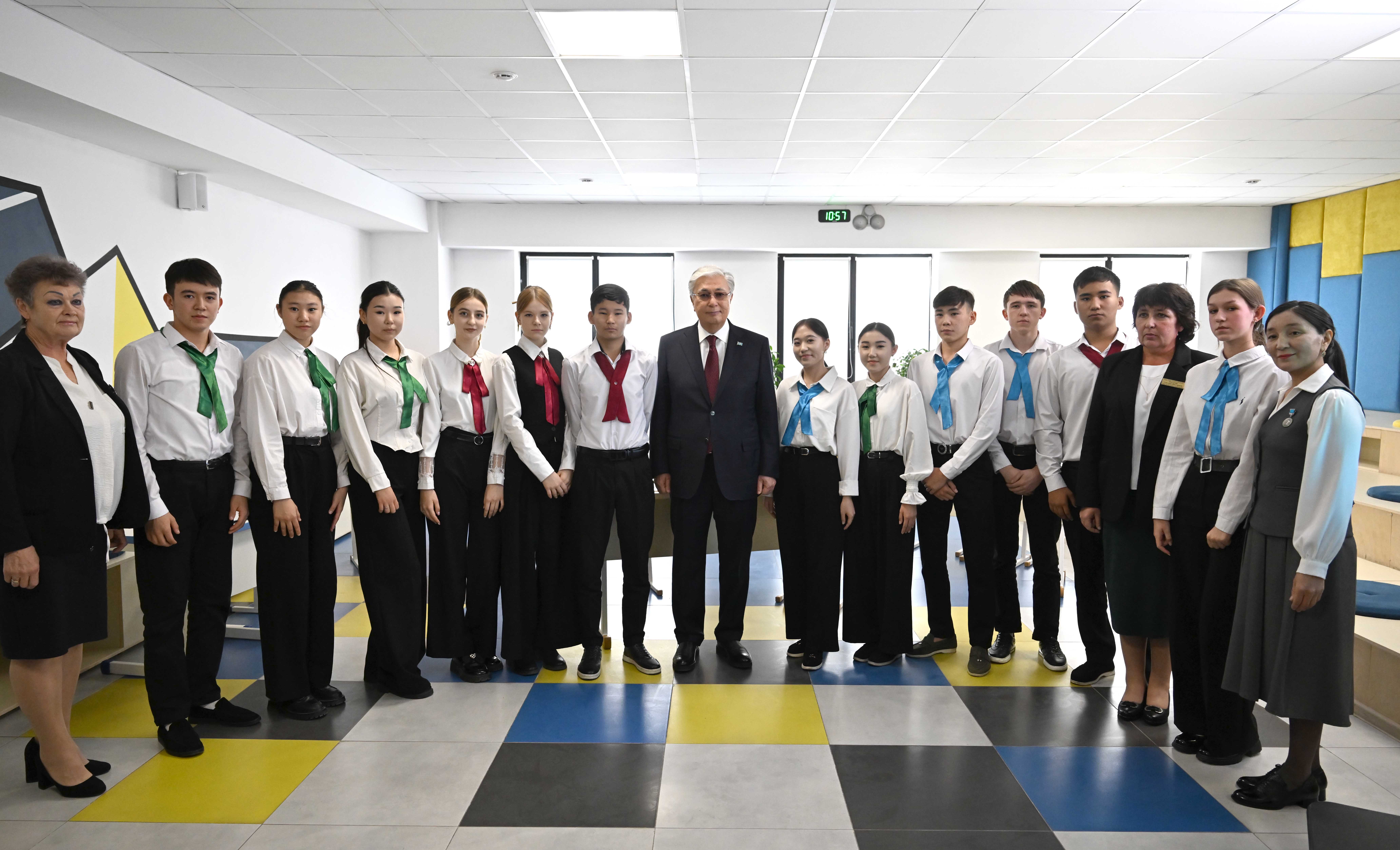 Президент ауыл балаларымен әңгімелесіп, мемлекет тарапынан өскелең ұрпақтың алаңсыз білім алуына, спортпен айналысуына қолайлы жағдай жасалатынын жеткізді.