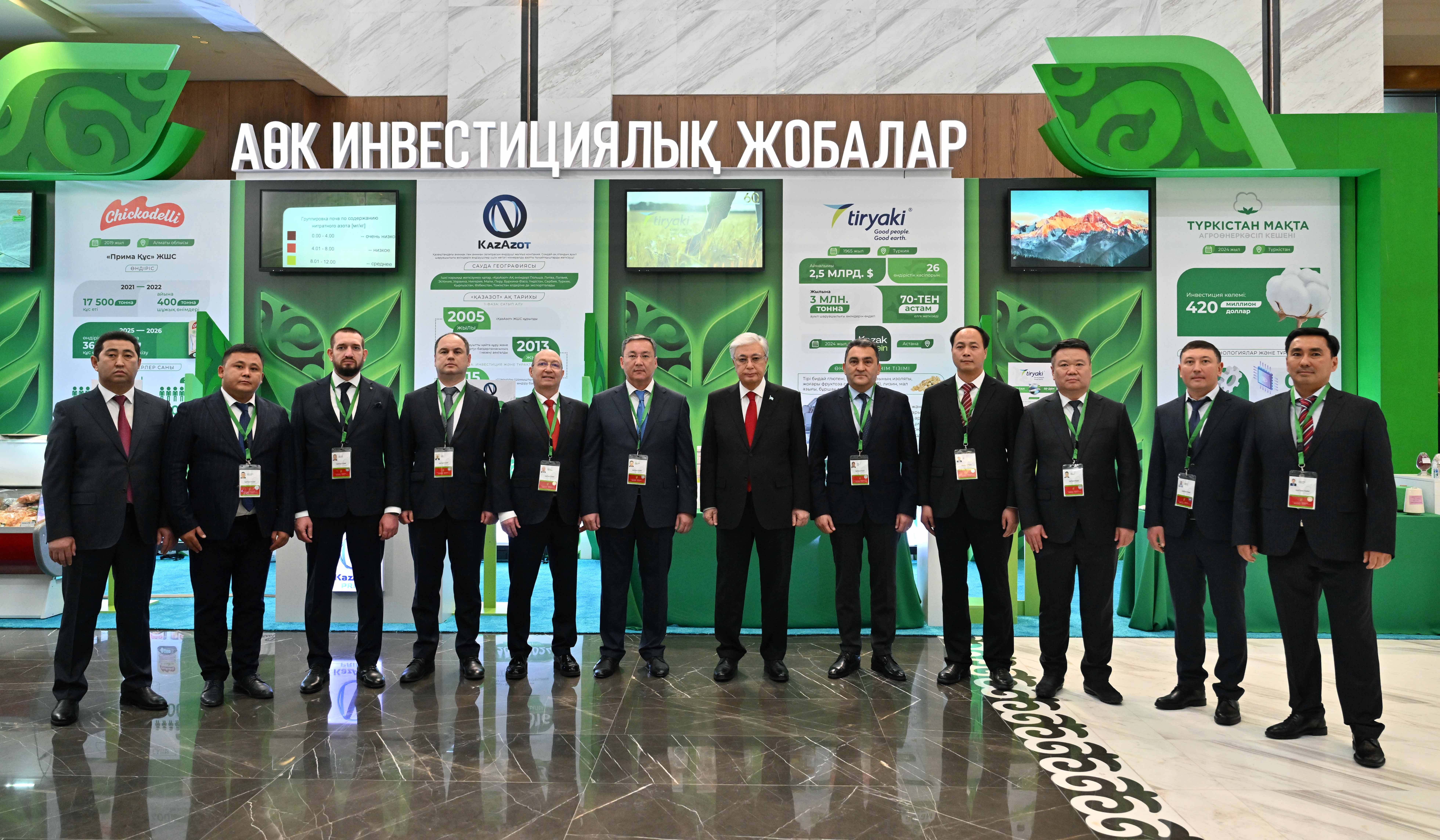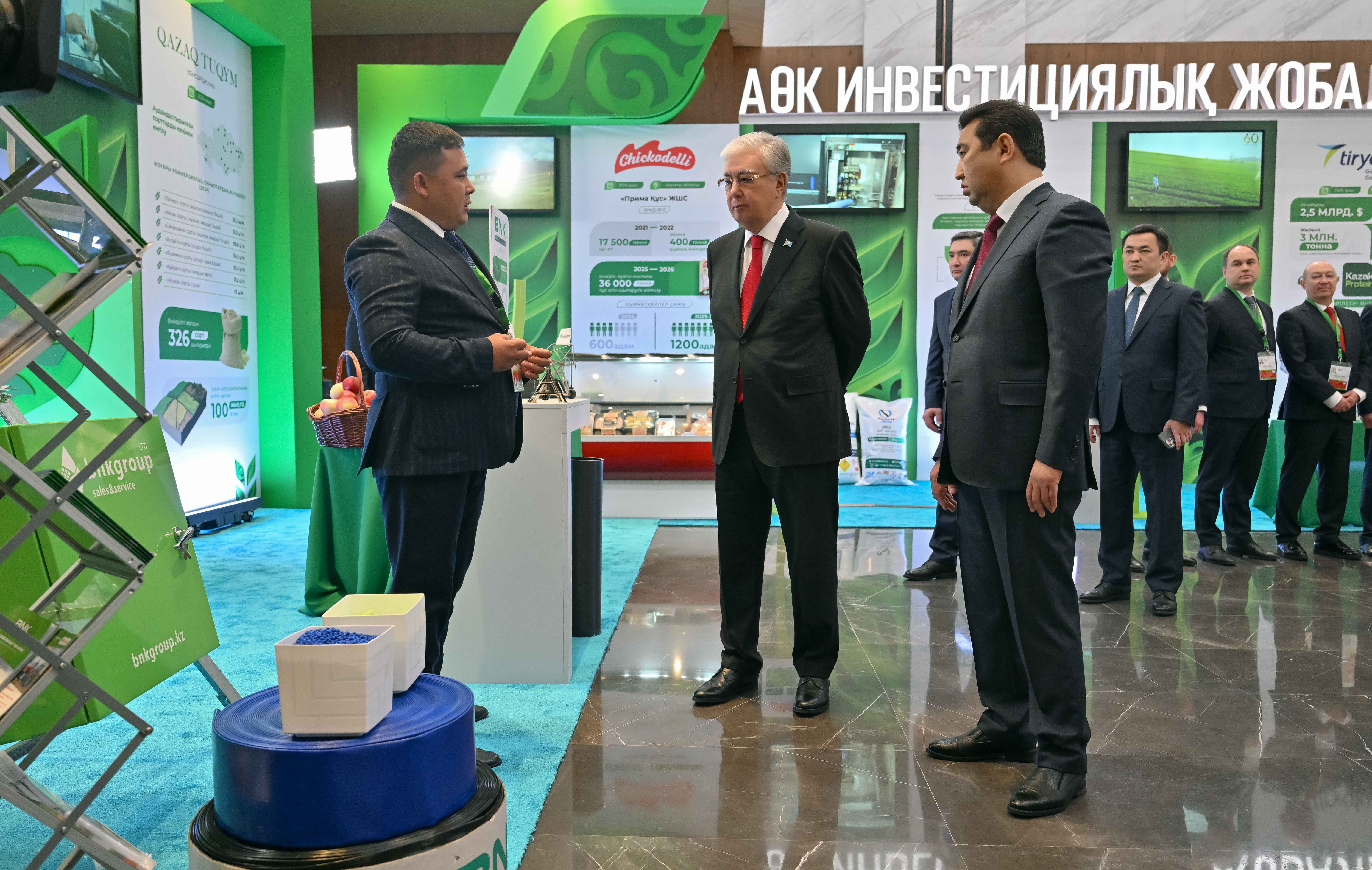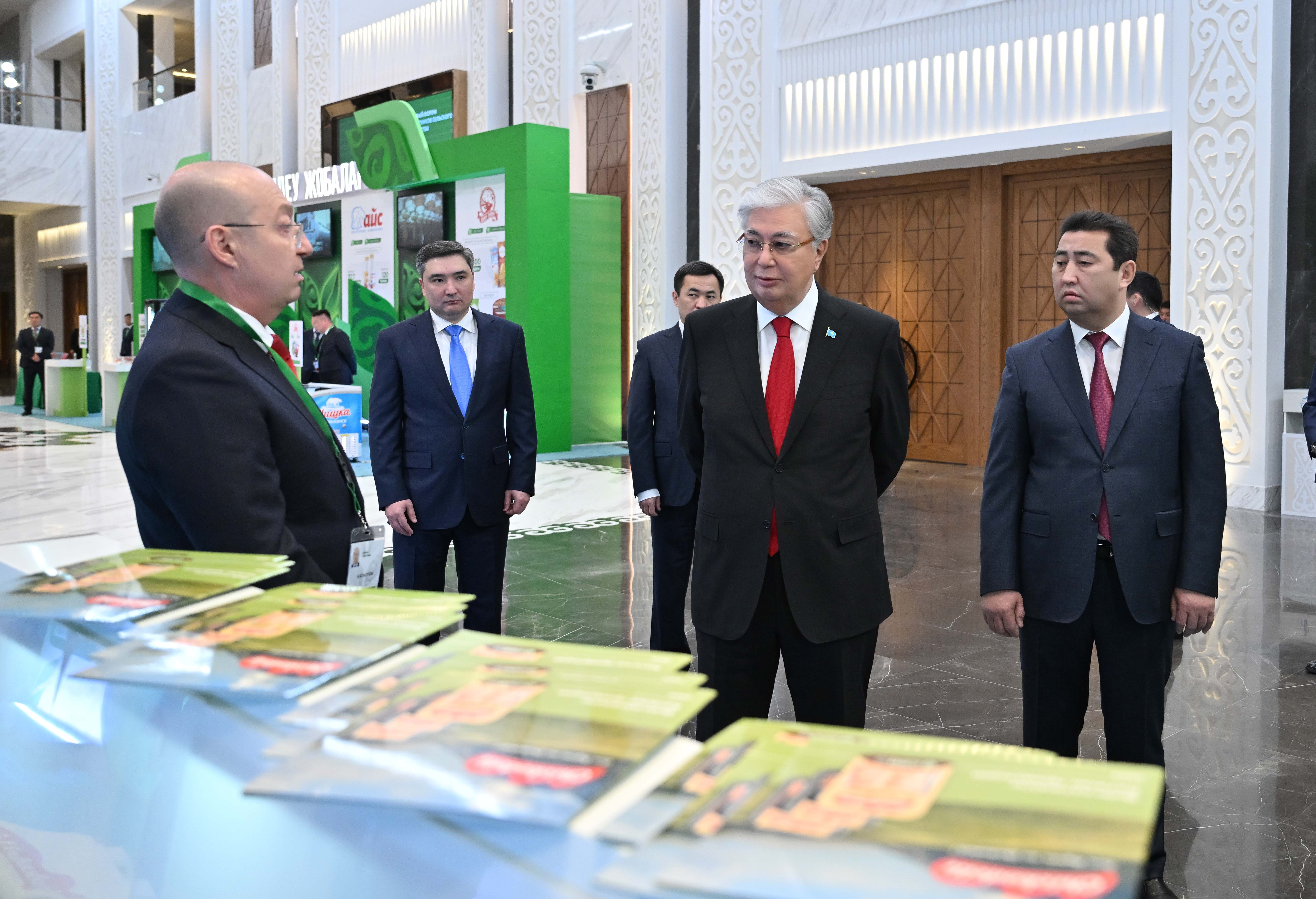 Бұдан бөлек, Президент ауыл шаруашылығы өнімін өндірушілердің көрмесін тамашалады. Көрмеде терең өңделген өнімдер, заманауи агротехнологиялар, инвестициялық, соның ішінде шетелдік инвесторлардың қатысуымен жүзеге асырылып жатқан жобалар ұсынылған. Мемлекет басшысына егін және мал шаруашылықтарындағы, басқа да маңызды бағыттардағы инновациялық шешімдер мен жетістіктер таныстырылды.