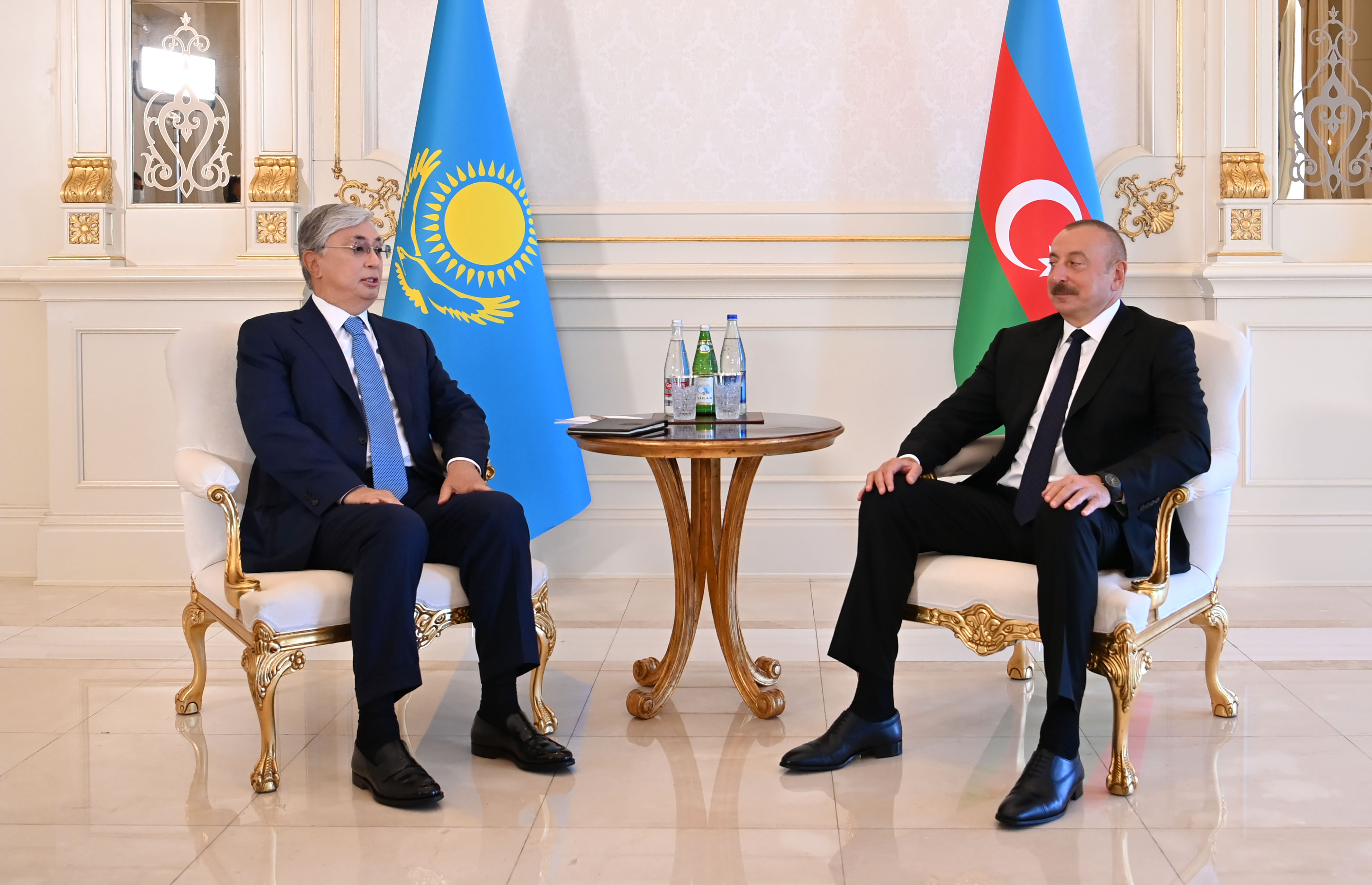 – Ең алдымен бізге көрсеткен қонақжайлығыңыз үшін сізге ризашылығымды білдіремін. Бұл – Қазақстан Президенті ретінде алғаш рет ресми сапармен келуім. Бұл сапардың мен үшін мән-маңызы айрықша. Бүгін бірқатар өте өзекті мәселелер туралы пікір алмасулар болады. Келіссөздер нәтижесінде бірқатар құжатқа қол қойылмақ. Ол екіжақты ынтымақтастықты, қазақ-әзербайжан қарым-қатынасын жаңа деңгейге көтереді деп сенемін, – деді Қасым-Жомарт Тоқаев.
