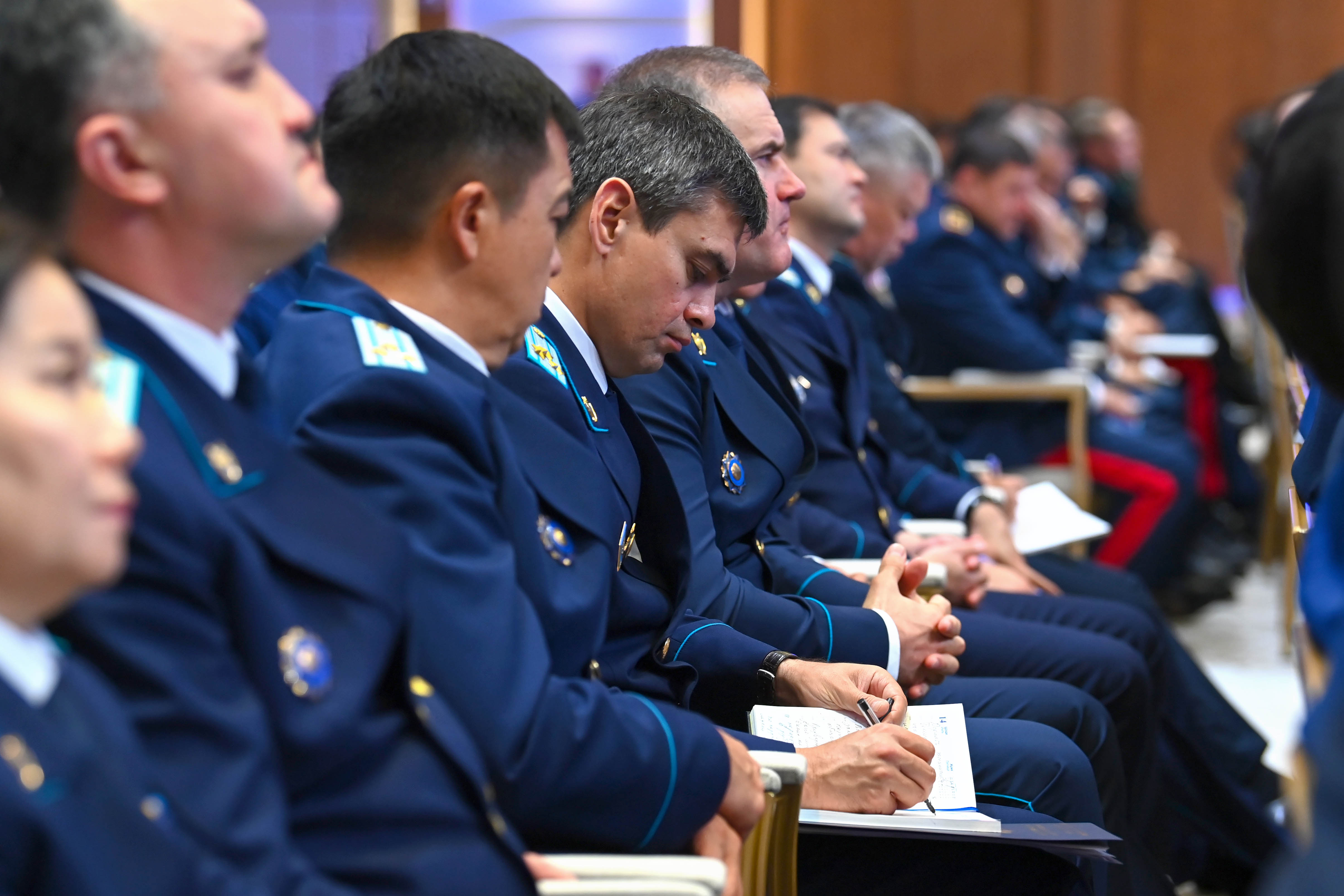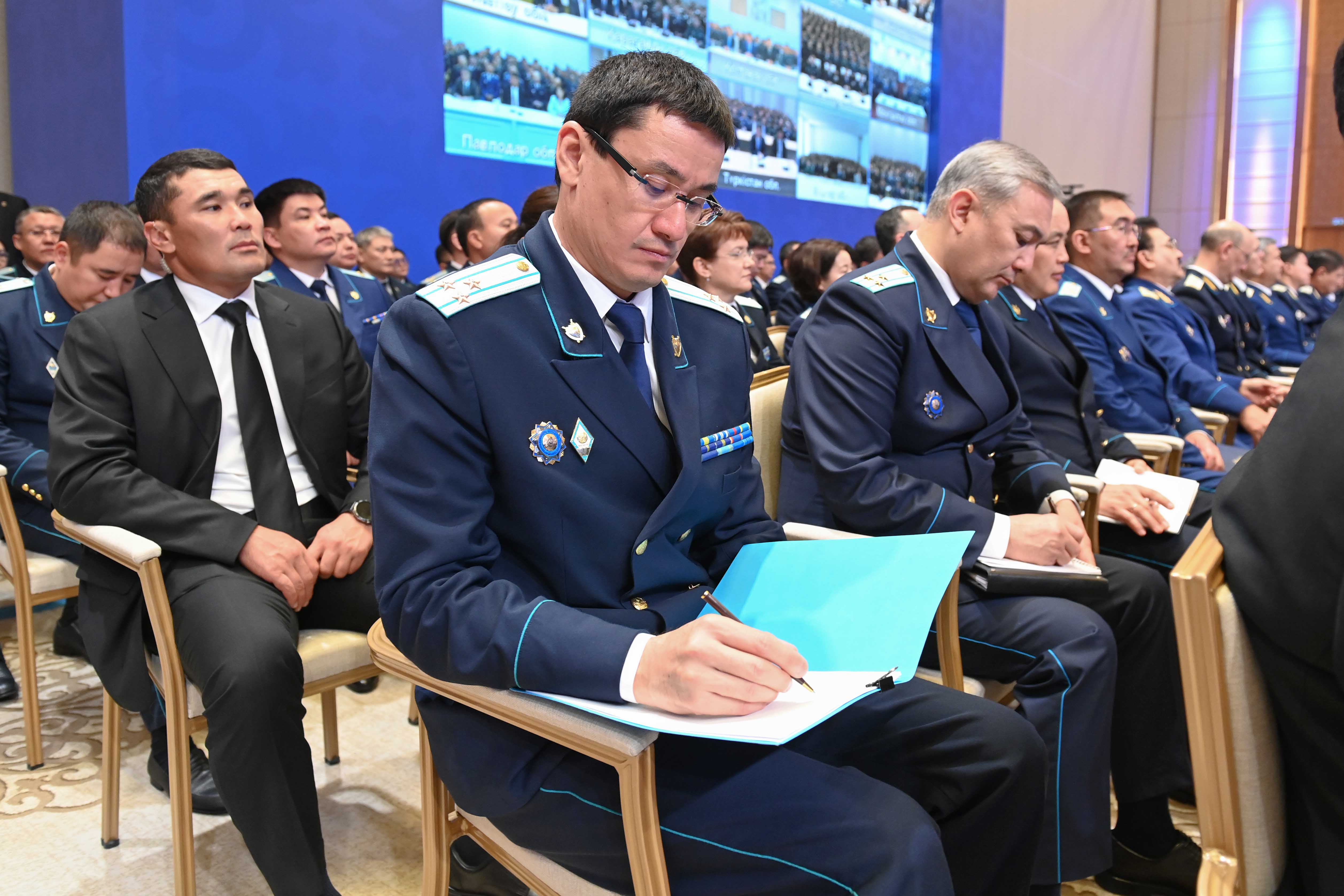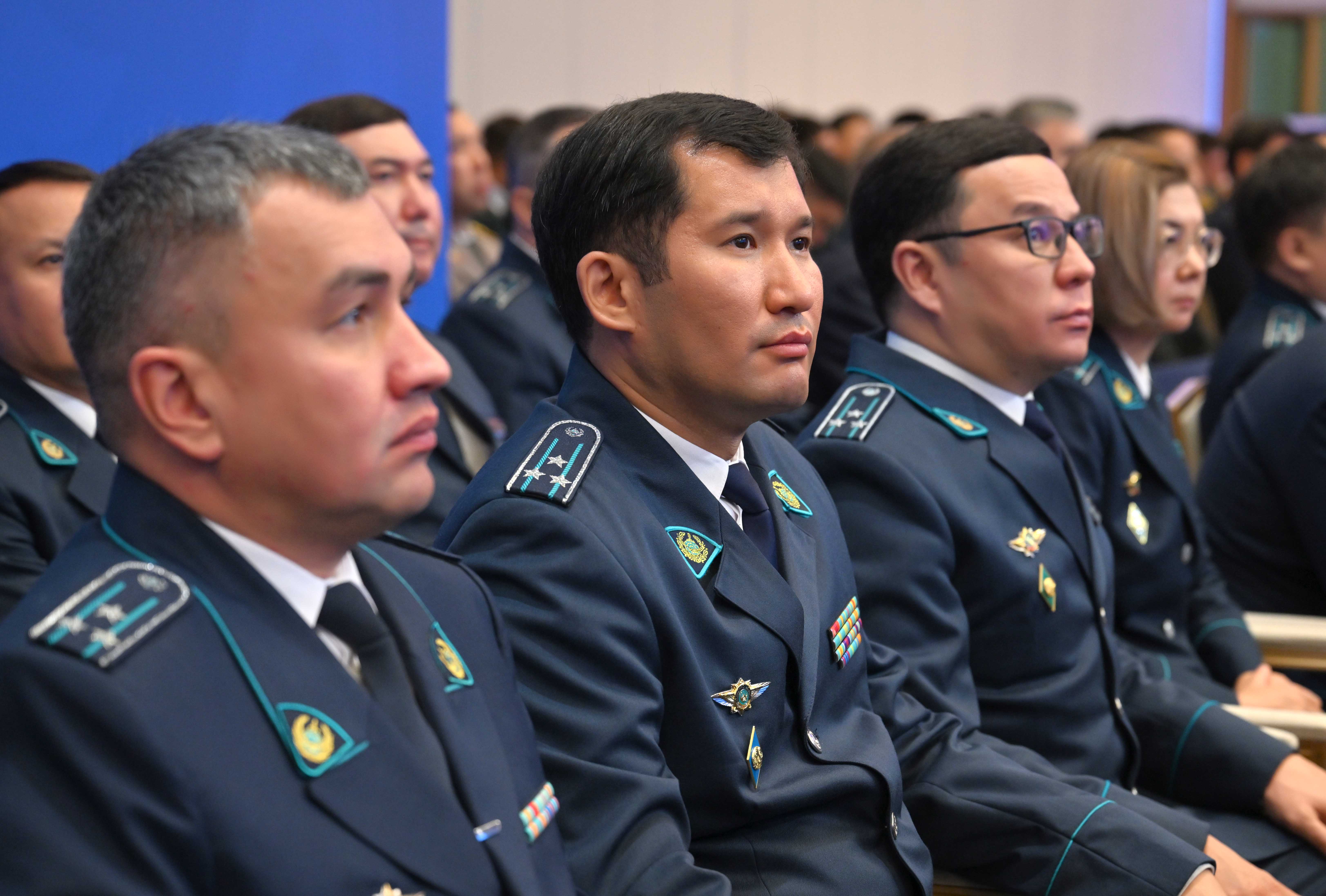 Мемлекетке қызмет ету – ең құрметті әрі аса жауапты міндет. Сіздер заң мен тәртіпті сақтауға және азаматтардың құқығын қорғауға зор үлес қосып жүрсіздер. Қазір дүние жүзі алмағайып, бұлыңғыр, яғни, өте күрделі кезеңді бастан өткеруде. Осындай құбылмалы уақытта қоғамдық қауіпсіздікті сақтау, заңның мүлтіксіз орындалуын қамтамасыз ету – айрықша маңызды міндет. Сол себепті, бүгін біз алғаш рет осындай құраммен жиналып отырмыз. Құқық қорғау жүйесіндегі барлық жауапты құрылымдар жұмыла жұмыс істеуі қажет.