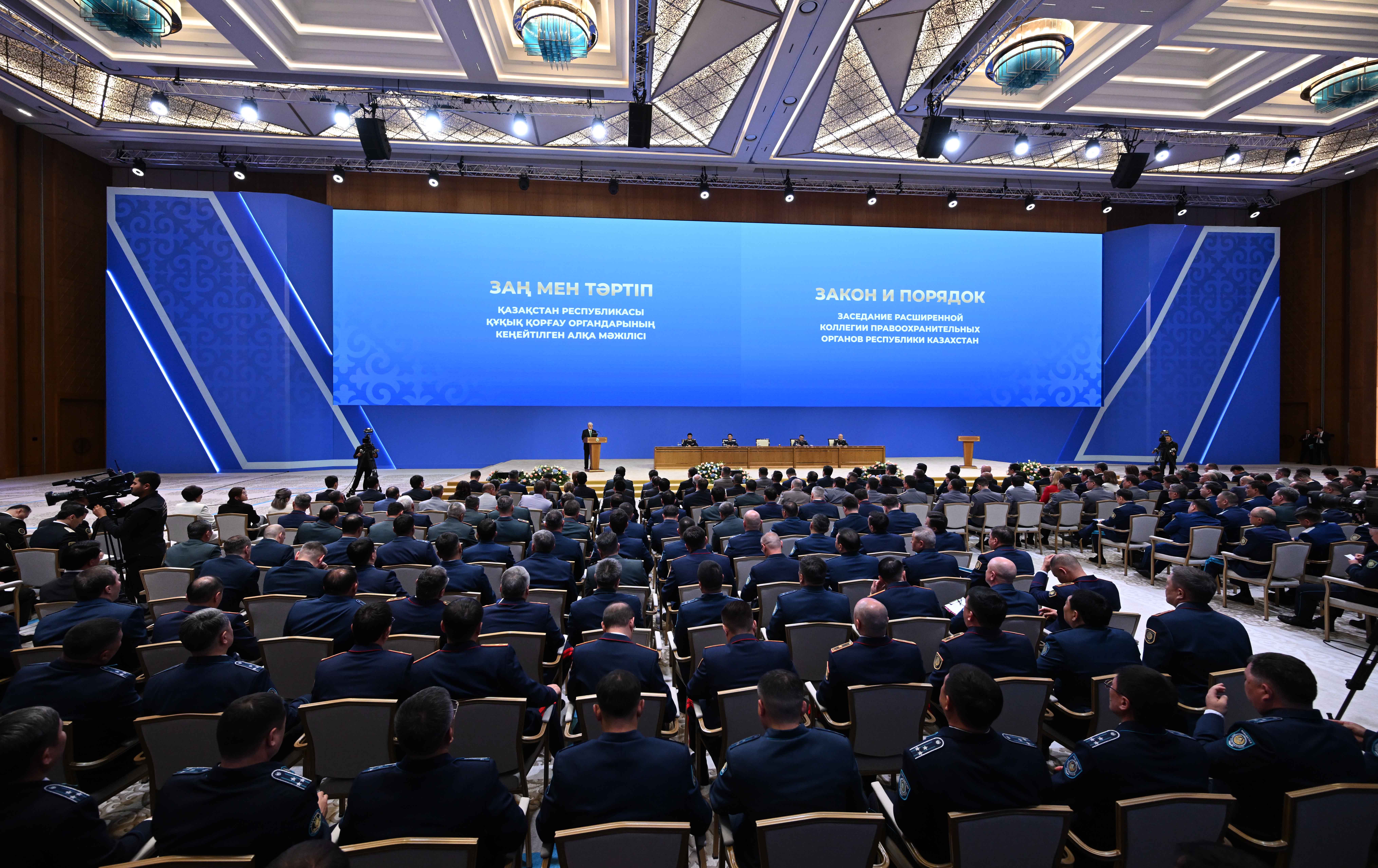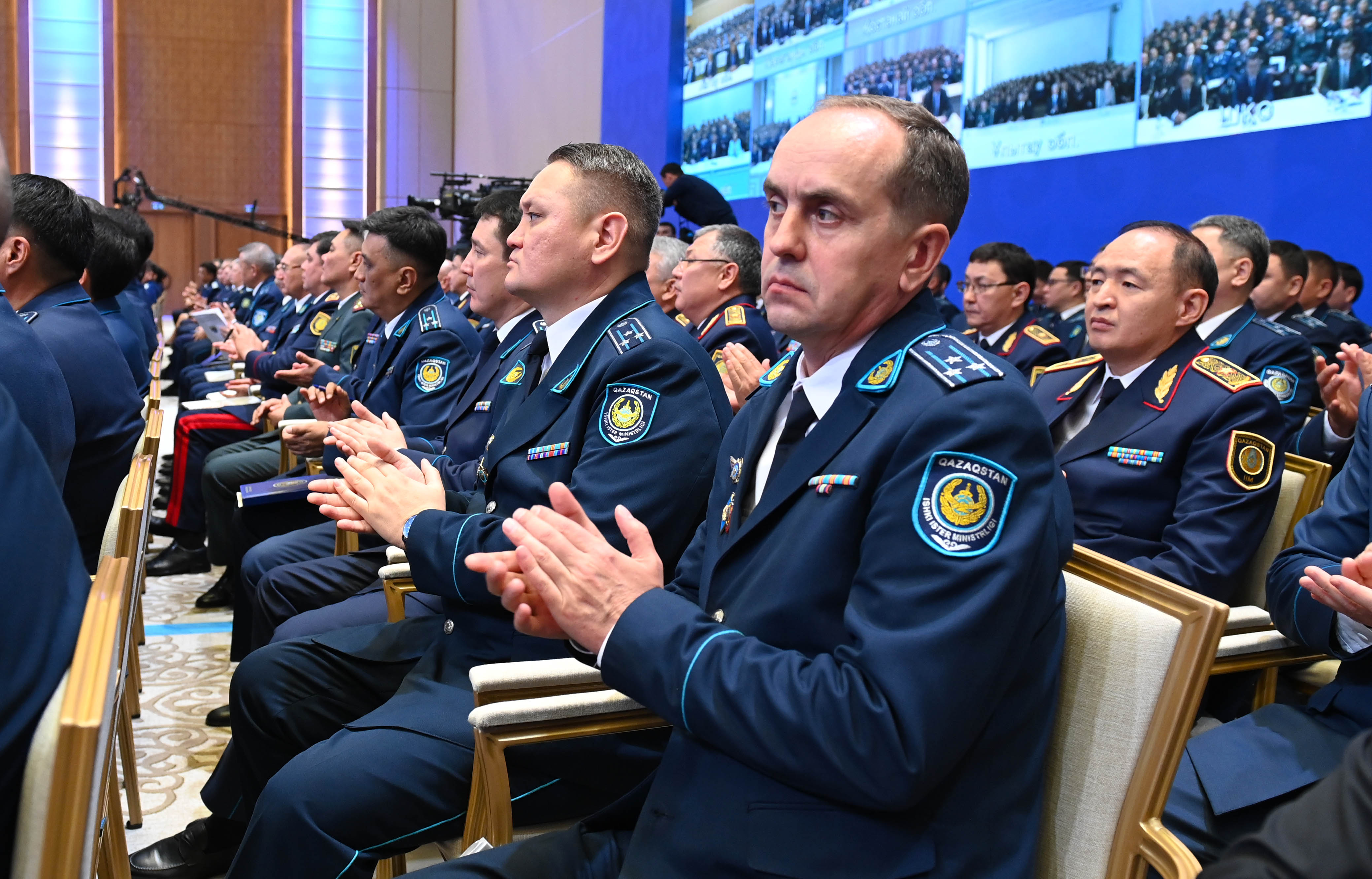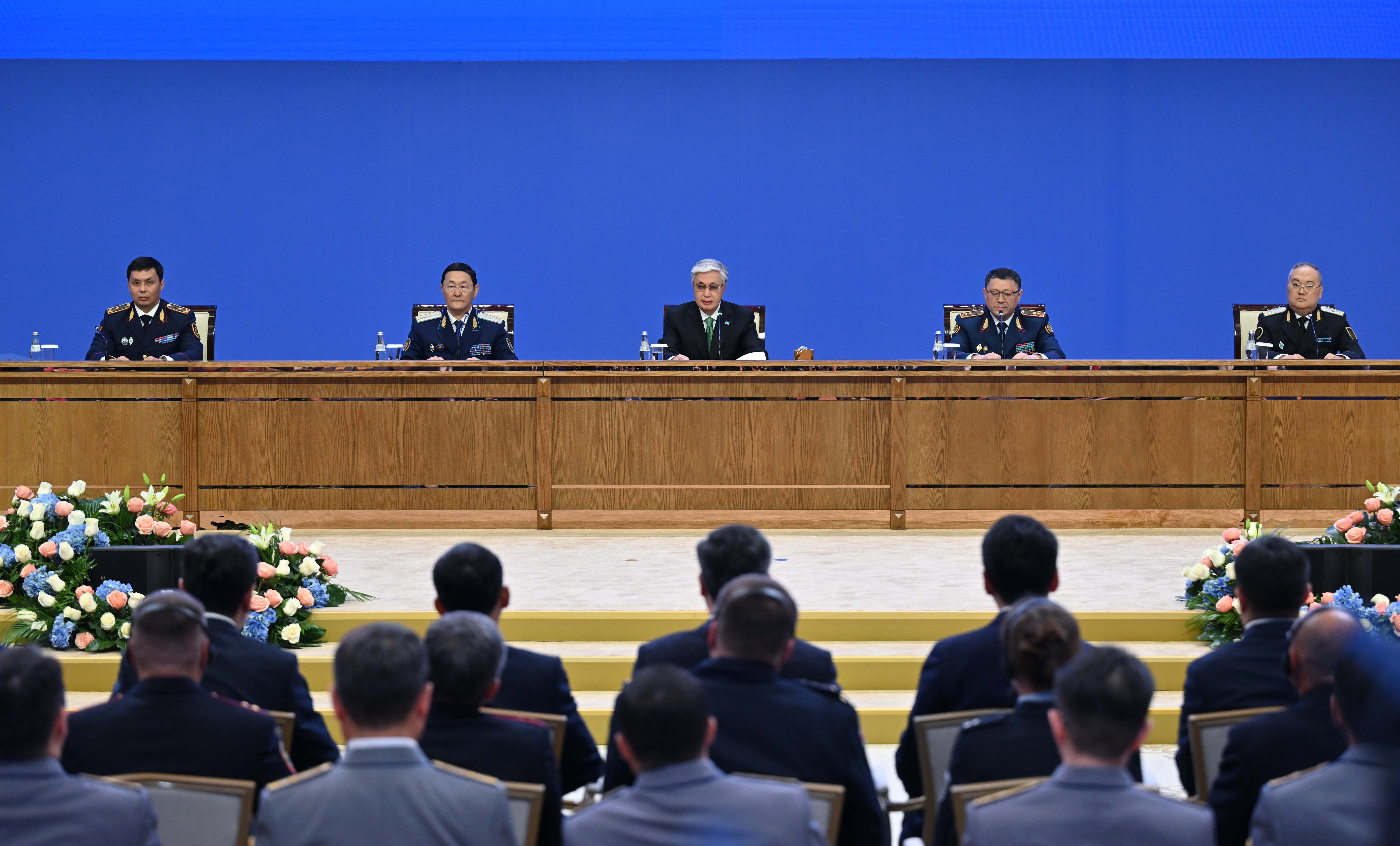 Мемлекетке қызмет ету – ең құрметті әрі аса жауапты міндет. Сіздер заң мен тәртіпті сақтауға және азаматтардың құқығын қорғауға зор үлес қосып жүрсіздер. Қазір дүние жүзі алмағайып, бұлыңғыр, яғни, өте күрделі кезеңді бастан өткеруде. Осындай құбылмалы уақытта қоғамдық қауіпсіздікті сақтау, заңның мүлтіксіз орындалуын қамтамасыз ету – айрықша маңызды міндет. Сол себепті, бүгін біз алғаш рет осындай құраммен жиналып отырмыз. Құқық қорғау жүйесіндегі барлық жауапты құрылымдар жұмыла жұмыс істеуі қажет.