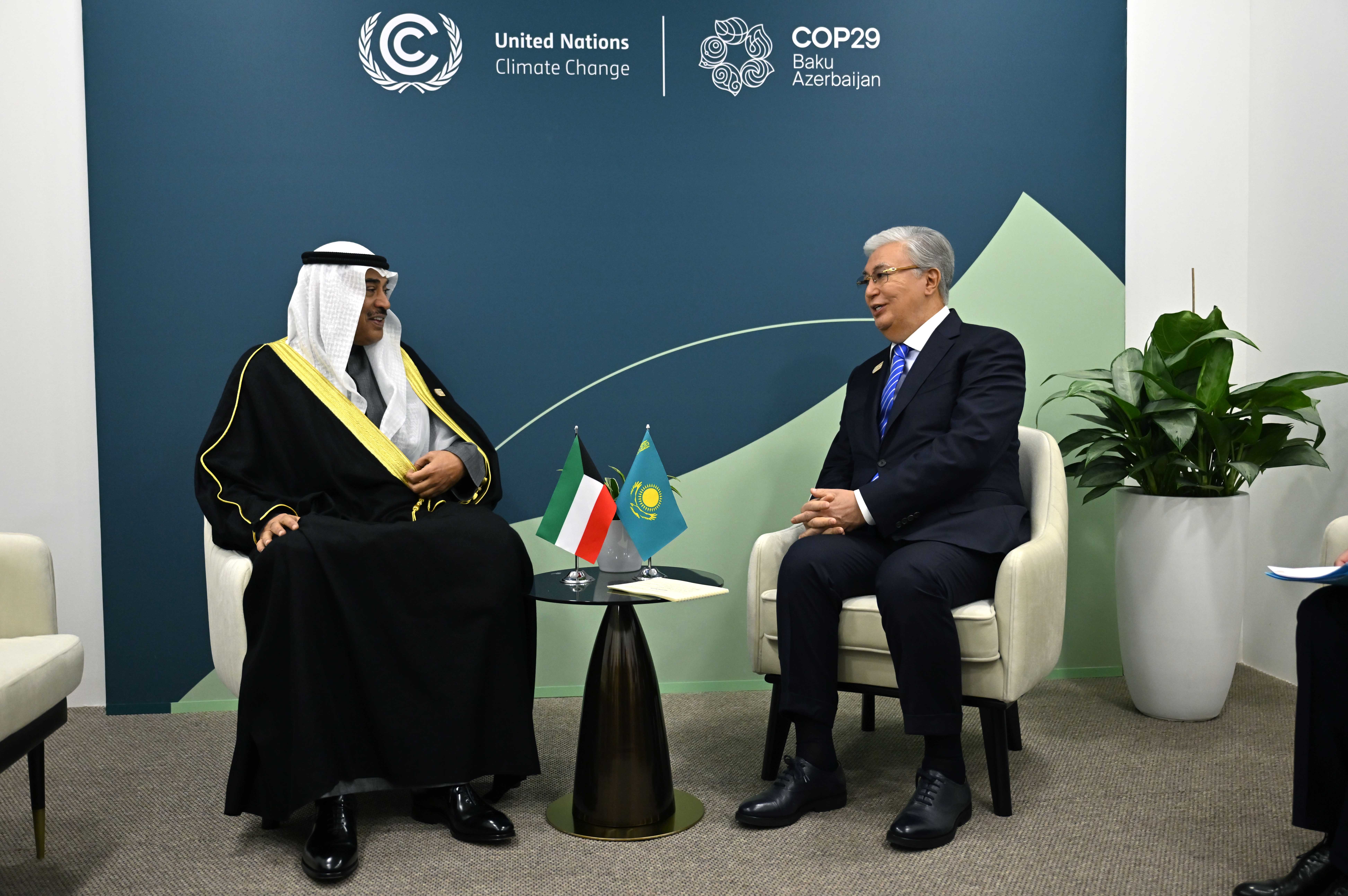 Қасым-Жомарт Тоқаев СOP29 Дүниежүзілік климат саммиті аясында Кувейттің Тақ мұрагері, шейх Сабах Халид әл-Хамад Ас-Сабахпен кездесу өткізді.