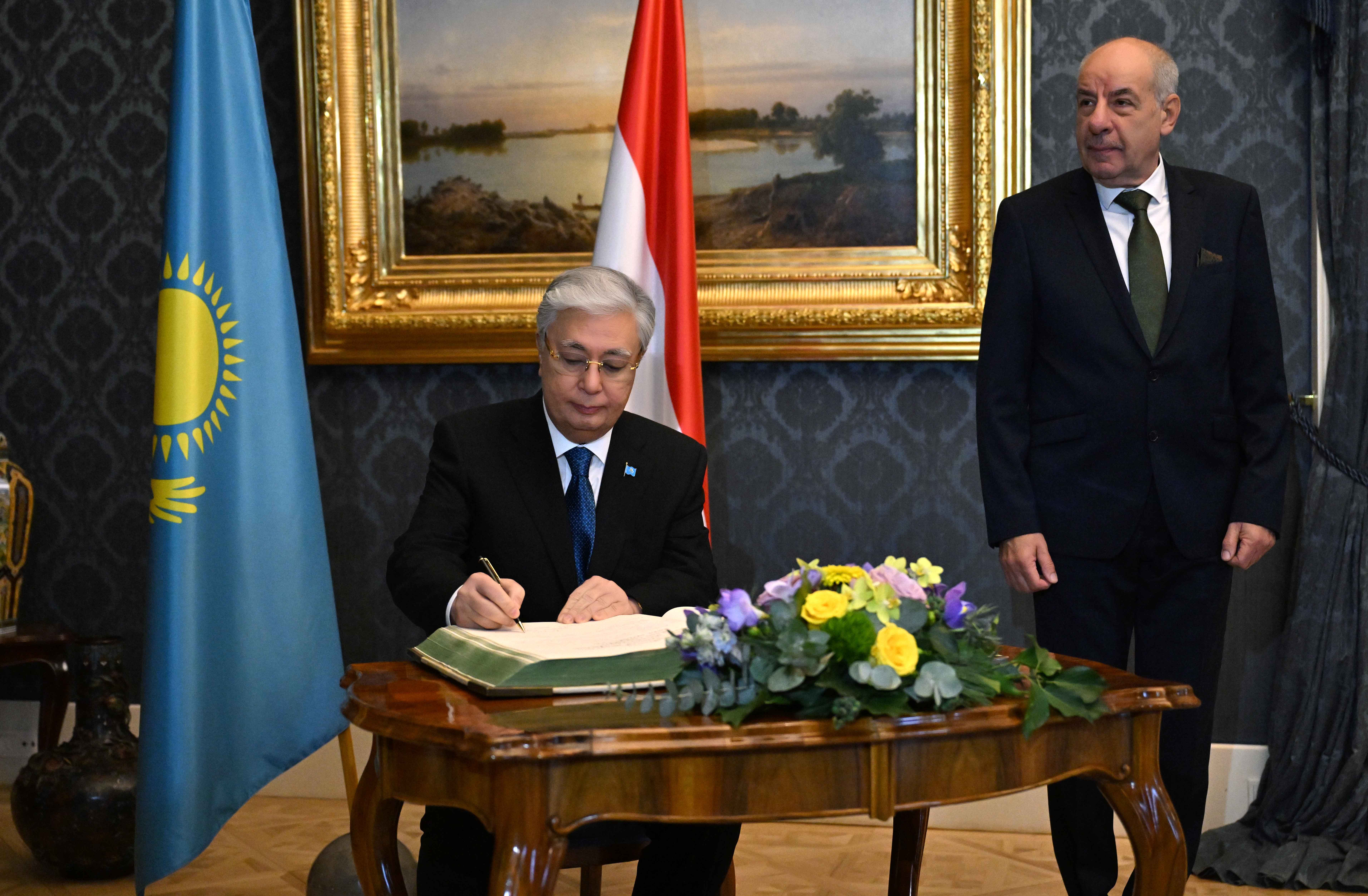 Шандор сарайында Қасым-Жомарт Тоқаевты Венгрия Президенті Тамаш Шуйок қарсы алды.