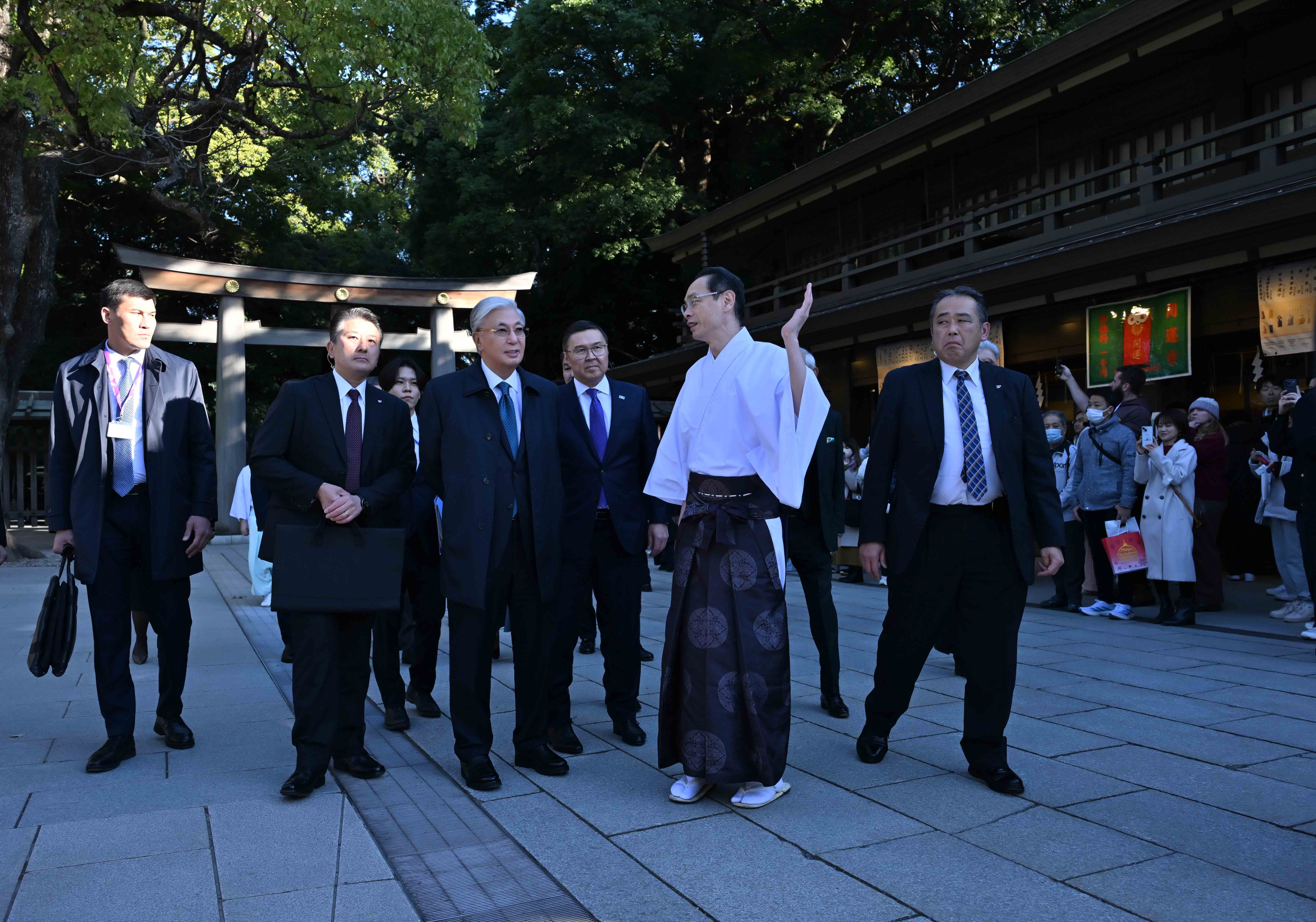 Жапония, Токио қаласы Президент Қасым-Жомарт Тоқаев Жапонияға ресми сапары барысында Токиодағы Мейджи Джингу синто ғибадатханасына барды. 1920 жылы салынған кешен императорлық киелі орын саналады. Оның аумағында 120 мыңға жуық ағаш пен жасыл желегі бар саябақ орналасқан. Ғибадатхана түбегейлі саяси және әлеуметтік-экономикалық реформалар жүргізу арқылы Жапонияны әлемнің дамыған елдерінің біріне айналдырған император Мейджиге арналған. Кешенмен танысқан соң Мемлекет басшысы Құрметті қонақтар кітабына жазба қалдырды. «Мейджи Джингу – берекелі бірлік пен ұлттық сана-сезімнің символы. Жапон халқы үшін осы қасиетті ғибадатхананың тарихи мән-маңызы ерекше. Күншығыс елі өсіп-өркендей берсін!» – деп жазды Қасым-Жомарт Тоқаев.