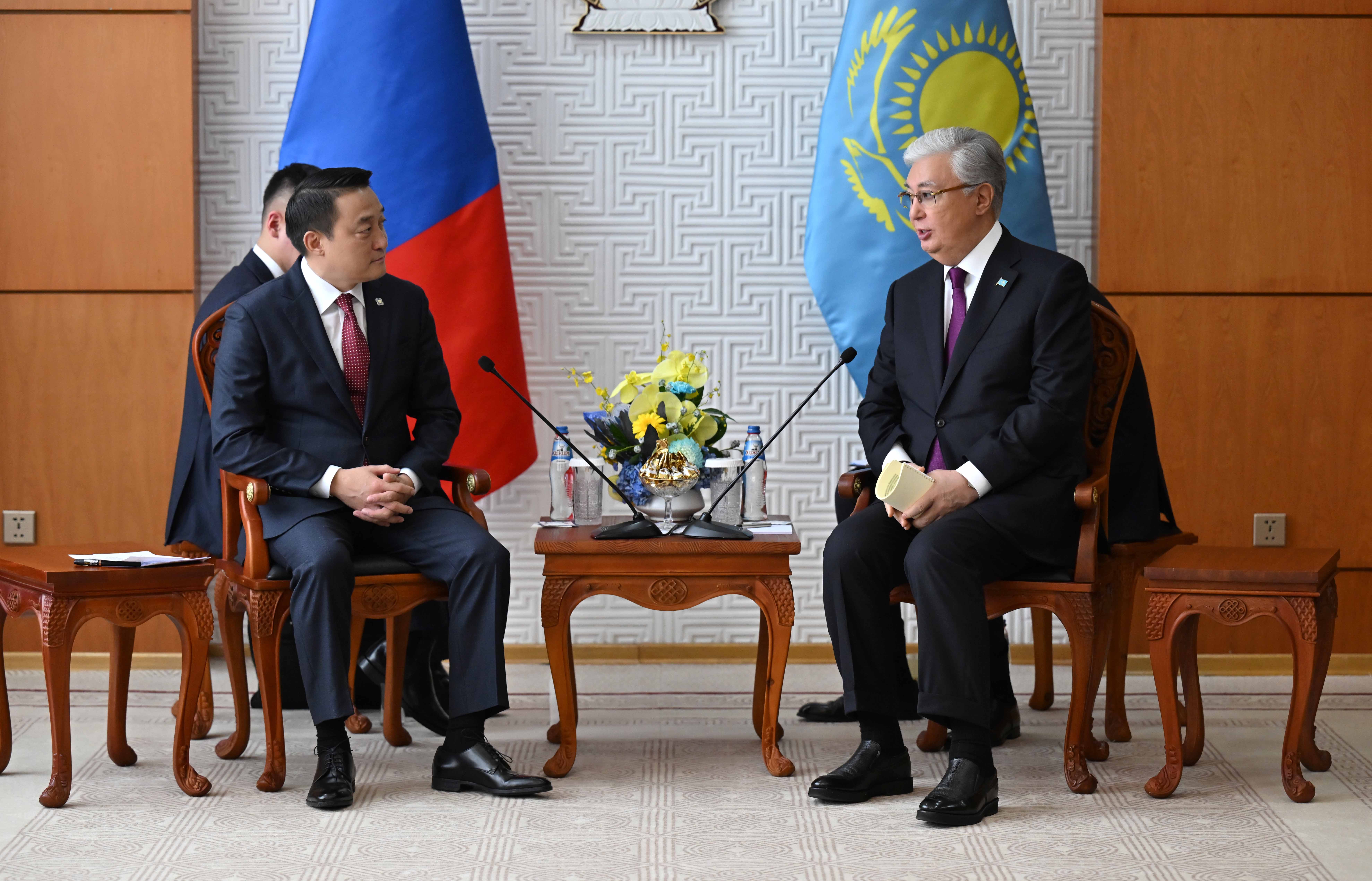 Қазақстан Президенті Ұлан-Батырға мемлекеттік сапары барысында Моңғолияның Ұлы Мемлекеттік Хуралының Төрағасы Дашзэгвийн Амарбаясгаланмен кездесу өткізді.