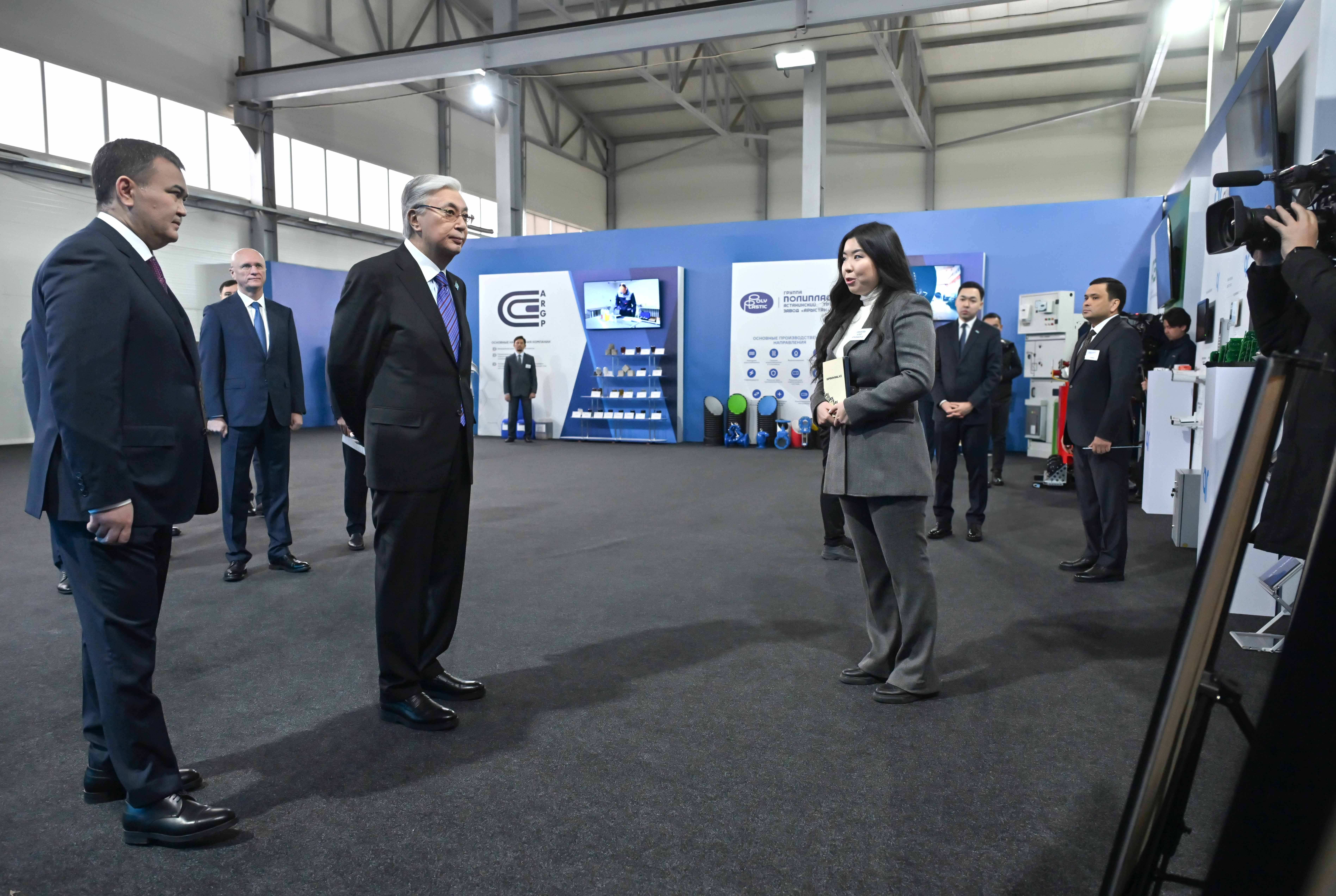 Президент Астананың №1 Индустриалдық паркінде орналасқан бірқатар кәсіпорынның қызметімен танысты. Қасым-Жомарт Тоқаевқа винилді гипсокартон панелін шығаратын «Гипсовинил», өрт дабылдары, бейнекамералар мен домофондар өндіретін QR Systems зауыттарының өнімдері көрсетілді. Сондай-ақ көрмеде «Астана электротехника зауытының», «Арыстан» Астана құбыр зауытының», құрылыс және жол химиясына маманданған ARGP кәсіпорнының қызметі жөнінде мағлұматтар ұсынылған. Бұдан бөлек, Президентке мемлекет-жеке меншік серіктестік қағидаты бойынша пайдалануға берілетін №2 Индустриалдық паркінің даму перспективасы жайында баяндалды. Аталған алаңда жалпы құны 500 миллиард теңгеден асатын және 8 мыңға жуық жаңа жұмыс орнын ашуға мүмкіндік беретін 100-ден астам жобаны іске қосу жоспарланып отыр. Сонымен қатар логистикалық инфрақұрылымды ілгерілету бағытында белсенді жұмыс атқарылуда. Соның ішінде «Астана-Технополис» арнайы экономикалық аймағында логистикалық парк құрылатын болады. Астананың жалпыұлттық пулы аясында 1,9 триллион теңгеге 120 жоба жүзеге асырылады. Осы арқылы 22 мыңға тарта жұмыс орнын ашу көзделген.