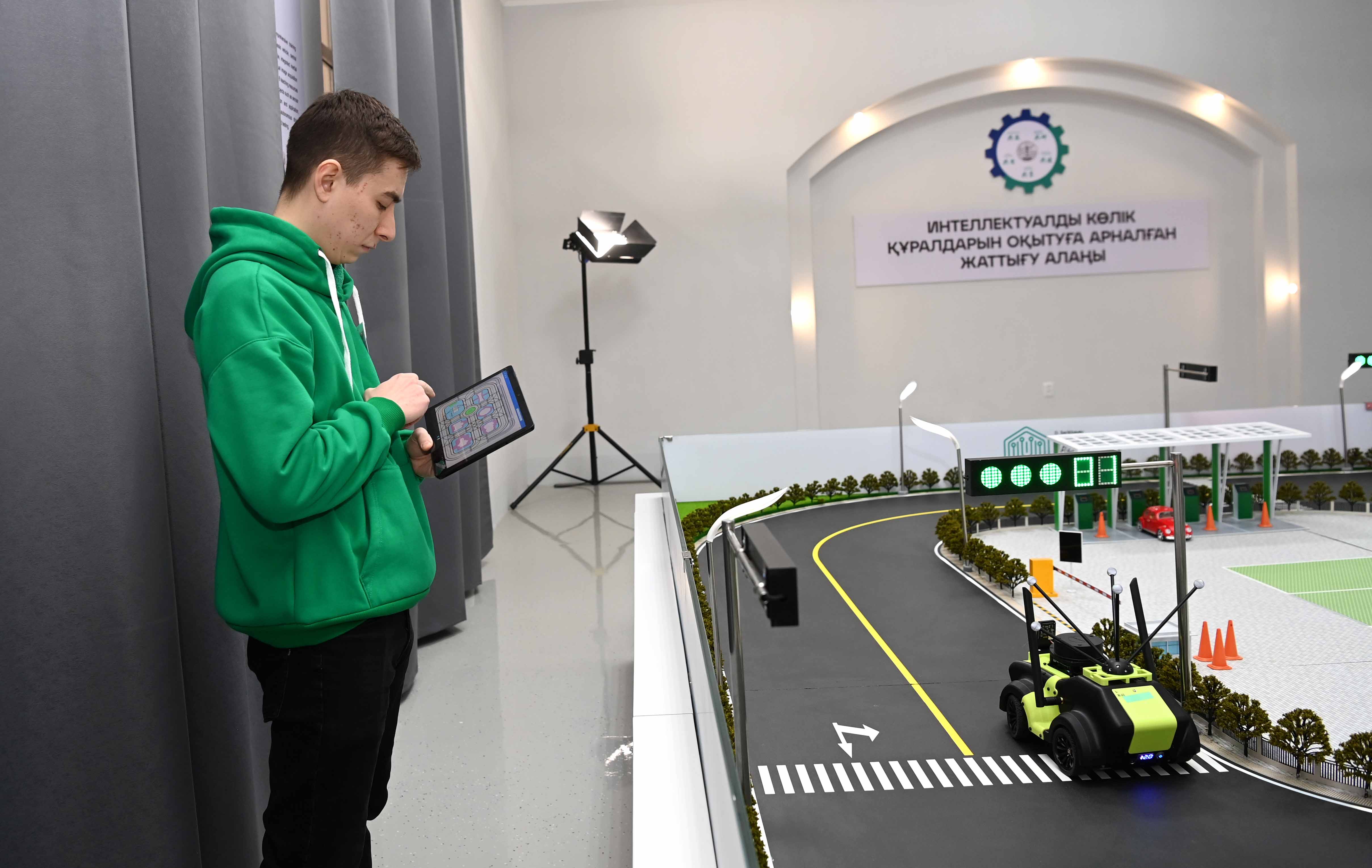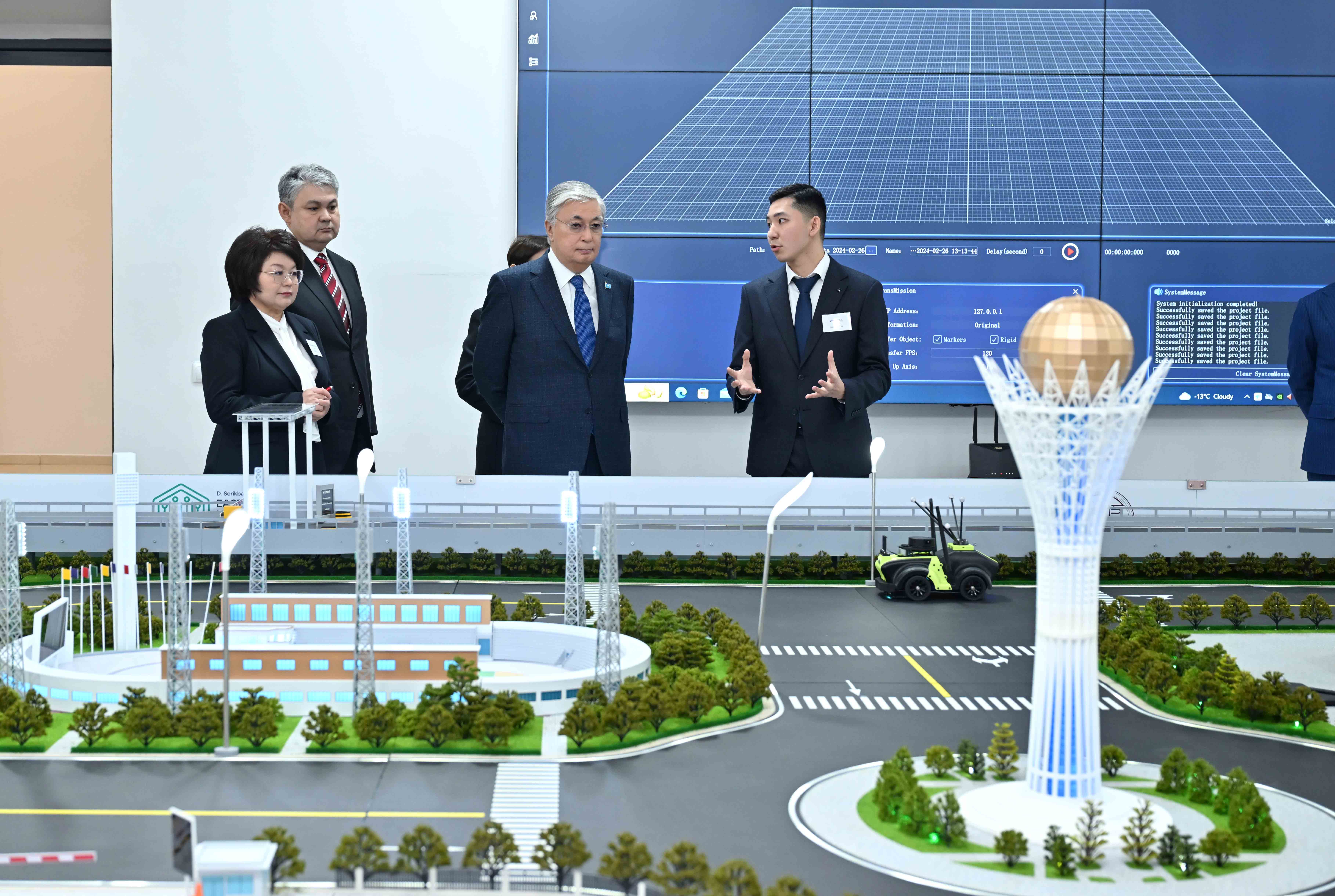 Мемлекет басшысы жол қозғалысын интеллектуалды тұрғыда ұйымдастыруға арналған SMART-үстелмен танысты. Сонымен қатар Президентке гибридті автомобильдерді, электромобильдерді және оларды қуаттау принциптерін үйренуге арналған оқу стендтері көрсетілді.
